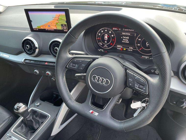 Audi connect navigation and infotainment includes innovative services, Audi connect remote and control connects your vehicle to your smartphone, Audi drive select, Audi smartphone interface, Audi virtual cockpit, Automatic start/stop system with recuperation, Bluetooth interface includes bluetooth audio streaming, Cruise control, E-call, MMI navigation plus with MMI touch, Power operated tailgate, Progressive steering, Rear parking sensors, 2 x SDXC card reader, 6 passive loudspeakers, DAB Digital radio, Auto dimming rear view mirror, Black window trims, Bumper in full body colour paint finish, Electrically adjustable, folding, auto dimming and heated door mirrors with integrated LED side indicators, Front windscreen with grey tinted sunband, LED daytime running lights, LED headlights with LED rear lights, LED third brake light, Privacy glass - dark tinted rear and rear side windows from B-pillar backwards, Rear side wing doors, Rear wiper, Variable front intermittent wipers, Wheel arch trims in manhattan grey, 12V socket in front, 3 seat bench in 2nd row, 3 spoke flat bottomed multi-function leather sport steering wheel, 4-way electric lumbar support for front seats including seat height adjustment for both front seat, 60/40 split folding rear seat bench, Black cloth headlining, Front and rear head restraints, Front centre armrest, Front/rear floor mats, Height/reach adjust steering wheel, Illuminated door sill trims with S logo, ISOFIX child seat mounting in front passenger and rear outer seats, Manual air conditioning, Single front passenger seat, Stainless steel pedals, Black styling pack - Q2, 3x3 point rear seatbelts, 6 airbags - Front, curtain and front side airbags, Electromechanical parking brake, Electronic stabilisation control including ABS, ASR and EDL, Front passenger airbag deactivation, Hill hold assist, Pre-sense front with pedestrian recognition, Seatbelt monitoring, Tyre pressure warning light, Warning triangle and first aid kit, Anti theft alarm, Anti theft wheel bolts, Electronically operated child locks, Remote central door locking, Aluminium interior element, Matt brushed aluminium trim inlays, Tool kit,