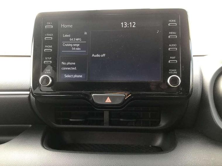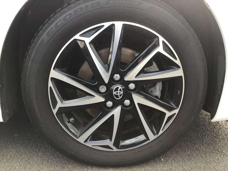 Adaptive cruise control, Adjustable speed limit with speed warning, Bluetooth connectivity, Colour binocular inspired displays with digital speedometer, E-call, Electric power steering, Hybrid energy display, Multi information display switches on steering wheel, Reversing camera, Smartphone integration with Apple CarPlay and Android auto, Tailgate, Voice recognition, Vehicle Stability Control (VSC), 4 speakers, 8" Multimedia display touch screen, USB connection, Acoustic windscreen glass, Auto windscreen wipers, Automatic headlights, Body coloured door mirrors, Electric adjustable heated door mirrors, Follow me home headlights, Front auto power windows with anti jam protection, Full LED rear lights, LED daytime running lights, LED front fog lights, LED front light guide, LED Headlights, LED High mounted stop lamp, LED Indicators, LED rear light guide, Manual headlight levelling, Painted chequered front grille, Rain sensor, Rear auto power windows with anti jam protection, Rear privacy glass, Rear side wing doors, Rear spoiler, Rear wiper, Shark fin antenna, Turning signal integrated indicators in door mirrors, Variable front intermittent wipers, 3 adjustable rear headrests, 3 seat bench in 2nd row, 3 spoke leather steering wheel, 60/40 split folding rear seat, Active headrests, Adjustable boot height, Auto air conditioning, Coat hooks in rear grab handles, Cup holders (2 front & door), Data Communication Module (DCM) connected services, Fabric upholstery, Front armrest, Glovebox, Grey roof lining, Height adjustable driver's seat, Isofix seat fixing, Leather gearshift, Pollen filter, Shopping bag hooks, Single front passenger seat, Tilt/telescopic steering column, 3 point seatbelts on all rear seats, ABS+EBD+Brake assist, Electronic parking brake, Emergency brake light system (EBS), Front passenger airbag on/off switch, Front seatbelt reminder, Hill start assist control (HAC), Rear child proof door locks, Rear seat belt reminder, Supplemental Restraint System (SRS) 8 airbags: Driver & passenger's airbags, dual side curtain airbags, side impact airbags, front centre airbag, Toyota Safety Sense 2, Precollison + Night time Pedestrian & Cyclist Detection, Lane Trace Assist, Auto High Beam, Intelligent ACC & Road Sign Assist, Tyre pressure warning system, 2x Master key, Alarm/immobiliser, Remote powered central double locking doors, Soft touch instrument panel, Space saver spare wheel,