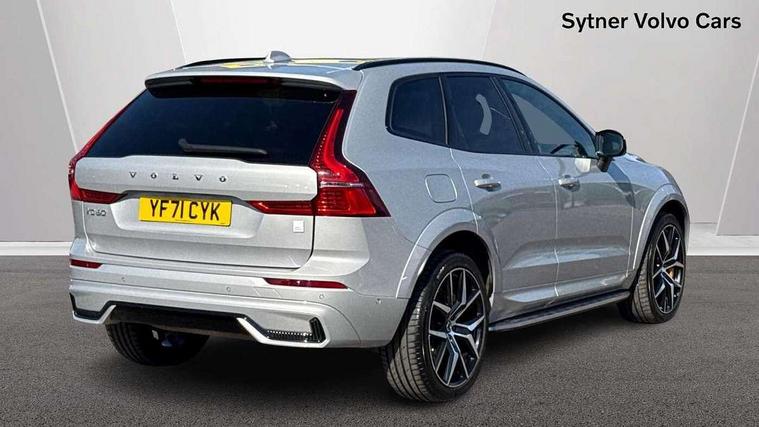 12.3" Active TFT crystal driver's instrument display, 9" centre console touch screen, Adjustable steering wheel force, Bluetooth handsfree system, Drive mode selector, Driver alert control with lane keeping aid, Front and rear park assist, Google Automotive Services, Oncoming Lane Mitigation, Service interval indicator, Speed limiter, Speed sensitive steering, Trip computer, Volvo on call with App, Wireless apple carplay, Wireless/Inductive Mobile Phone Charging, 7m 10amp Charge Cable with 3 Pin Plug and 7m 1-Phase 16amp Type 2 / Mode 3 Charge Cable, 8 speed automatic transmission with start/stop + manual change functions, Electric rear axle drive, Polestar Engineered chassis, Polestar optimised engine and gearbox, Recharging port located in nearside front wing, DAB Digital radio, Fresh air subwoofer, Adaptive brake lights with high level LED brake lights, Auto dimming interior + exterior mirrors, Automatic headlight levelling system, Automatic LED Headlights + Active high beam incorporating daytime running lights, Dark tinted windows for rear side windows and cargo area, Electric adjustable/heated/auto power folding door mirrors, Electric front+rear windows, Front and rear polestar emblems, High gloss black door mirrors, High gloss black mesh front grille with high gloss black surround, High gloss black rear bumper deco, High gloss black window frame surround, Home safe and approach lighting, Integrated roof rails in high gloss black, Power glass tilt and slide panoramic sunroof with sun curtain, Puddle lights, Rain sensor with automatic windscreen wiper activation, Rear wiper, Roof antenna, Roof spoiler, Tinted windscreen, Visible VIN plate, 12V socket in front tunnel console and luggage compartment, 2 zone electronic climate control with Clean zone air quality system and pollen filter, 3 spoke tailored sports steering wheel, A-pillar parking ticket holder, B Pillar ventilation, Bright metal luggage threshold, Centre armrest storage illumination, Centre console cupholders and storage, Charcoal headlining, Contour sports seats with nappa leather/textile upholstery, Floor mats, Front and rear door pocket and front cupholder illumination, Front and rear gold seatbelts, Front footwell and side step illumination, Front reading lights, Front seat cushion extensions, Head restraints for all seats, Heated front seats, Heated steering wheel, Height/reach adjustable steering column, High gloss black steering wheel remote infotainment controls, Illuminated glovebox, Illuminated luggage compartment, Illuminated vanity mirrors + ticket holder, Load cover, Load protection net, Multi directional lumbar support, Multicolour theatre lights, Rear armrest with cupholder, Rear footwell and side step illumination, Rear seat concealed storage, Sport leather gear knob, Sport pedals, Tailgate illumination and ambient door lighting, Underfloor stowage compartment, Versatile split folding rear seat - 60/40, Lighting Pack - XC60 PHEV, 5 three point seatbelts, City safety with steering support with Pedestrian + cyclist + large animal detection + front collision warning with full auto brake, Drivers knee airbag, Dual stage driver/passenger airbags, Electronic parking brake with auto hold, First aid kit, Floating front brake discs, Hill descent control, Hill start assist, IC (Inflatable Curtains) - Full Length, Mechanical child locks on rear doors, Passenger airbag cut-off device, Polestart engineered Brake Callipers, Road sign information display, Run off Road Mitigation, Run off Road Protection, Seatbelt reminder and pretensioners, SIPS (Side Impact Protection System), SIPS airbags, Slippery road and hazard light alert, Stability and Traction Control with Spin control, Engine Drag Control and Corner Traction Control, Tyre pressure monitoring system, Vehicle deceleration control with Anti-lock Brake System, Electronic Brake Distribution and Emergency Brake Assist, Warning triangle, WHIPS whiplash protection system - front, Anti-theft alarm including immobiliser/volume sensor + level sensor, Care key with user defined top speed, Key integrated remote control central locking + fuel flap with deadlocking system and auto open/close power windows, Keyless Drive (includes Keyless Entry and Keyless Start) with Handsfree Tailgate Opening/Closing, Locking wheel nuts, Private locking for tailgate, Metal mesh inlays, Tailored instrument panel with contrast stitching, Tyre sealant kit + 12v compressor,