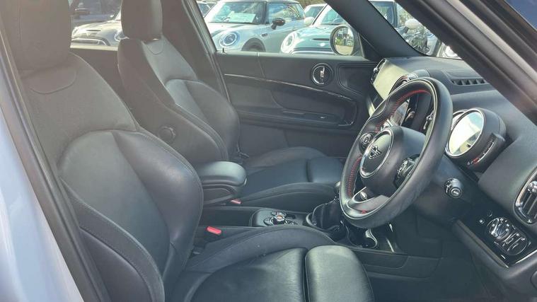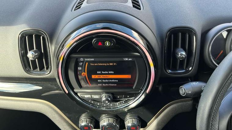 Active Guard incl speed limiting and lane departure functions with auto steering, and front collision warning with brake intervention, Automatic start/stop function with brake energy recuperation, eDrive button, Electro-mechanical speed dependant steering assistance, Instrument cluster, Mini E-call, MINI TeleServices, On board computer, Rear parking distance control, Automatic transmission, Charging flap on front left lower A-panel, Double Vanos system, Fully variable valve control, High precision injection, Performance Control, FM tuner and DAB digital radio, Bonnet scoop, Chrome border honeycomb structure radiator grille with S badge, Chrome fuel filler cap, Day time driving lights, Dynamic brake lights, Electric windows, Heated rear window, Heated windscreen washer jets, John Cooper Works - aerodynamic kit (front and rear apron, spoiler), front and rear sport bumpers and part-painted side sills with door sill finishers, John Cooper Works Logo, John Cooper Works rear spoiler, Metal door sill strips with Cooper S imprint, Model logo, Model logo on Tailgate, Rain sensor with auto headlights, Rear fog lights, Rear window wiper, Side scuttle panel with integrated indicator, Split rear doors, Sun/heat protection glass, Twin exhaust tailpipe, White indicator lenses, 12V Accessory socket in centre console, 360L luggage compartment capacity, 4 lashing eyes in luggage compartment, 40:20:40 split folding rear seats, Anthracite headlining with grab handles and clothes hooks, Charging cable, Chrome interior highlights, Colour line - Carbon black, Cupholders, English handbook, Front headrests, Glove compartment, Height and length steering column adjustment, Isofix rear child seat preparation, John Cooper Works perforated leather steering wheel with contrast stitching in chilli red and John Cooper Works logo, Leather gearshift lever and handbrake gaiters, LED reading lights, vanity mirror lights, front foot well light and spotlight on front seats, Manual air conditioning, Mechanical seat adjustment, driver seat height adjust, forward/back and front seats backrest, Multifunction steering wheel, Passenger seat height adjuster, Rear headrests, Storage compartments in doors, Sunvisors with vanity mirrors, Excitement pack - Countryman, Navigation pack - Countryman, 2 tone horn, 3 point seatbelts on all seats, 6 Airbags - front, side, head and seat belt tensioners, Anti-lock braking system (ABS), DSC - Dynamic Stability Control, Electronic handbrake, Front and rear disc brakes, Hill start assist, Tyre pressure monitoring system, Alarm system with tilt sensor, monitoring doors, bonnet interior and tailgate, Auto drive away locking, Deadlocking function, Electronic vehicle immobiliser, Locking wheel bolts, Start/stop toggle with keyless go, Tool kit,