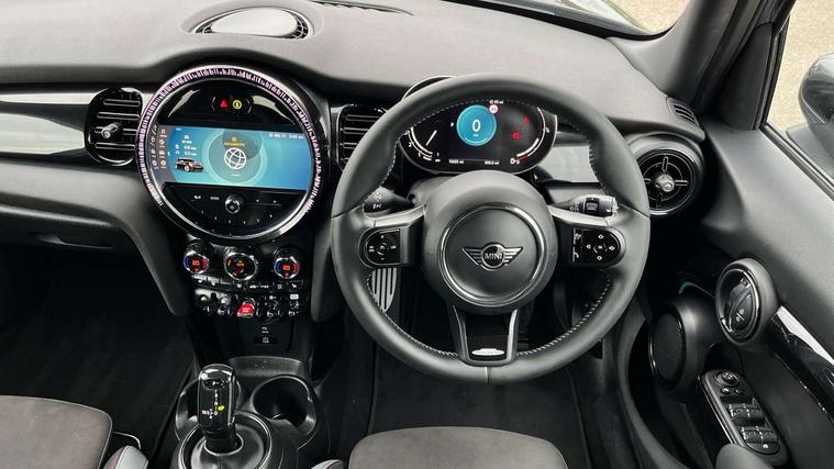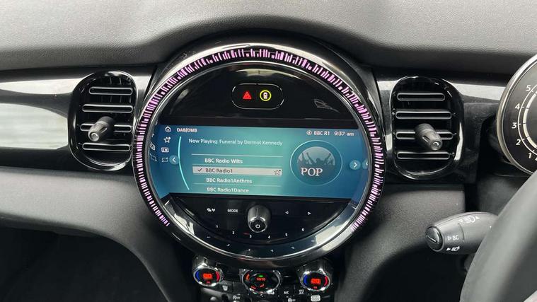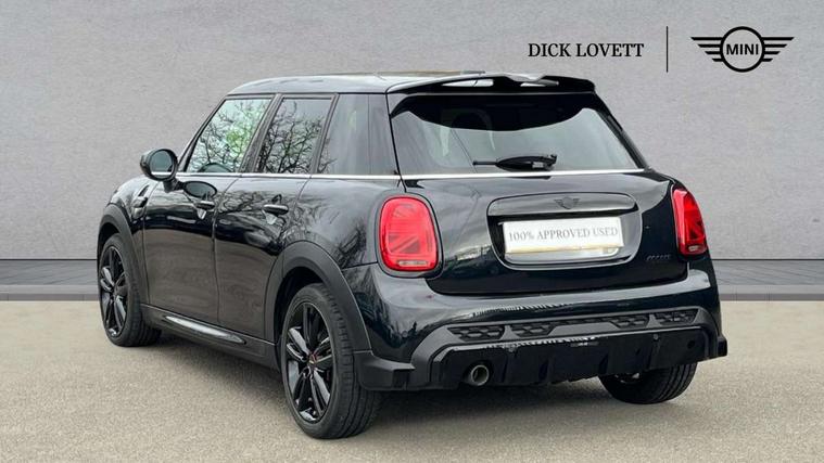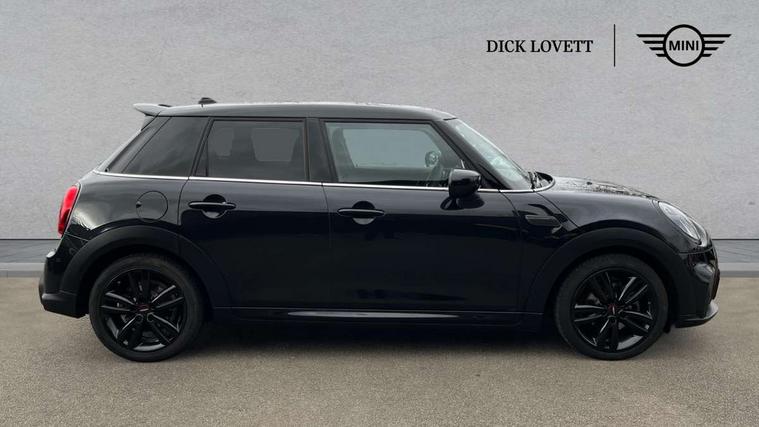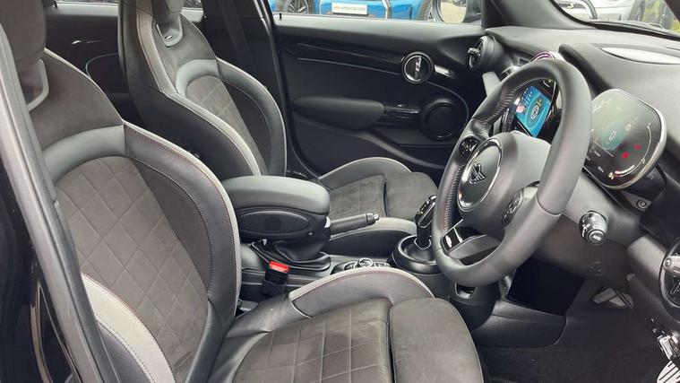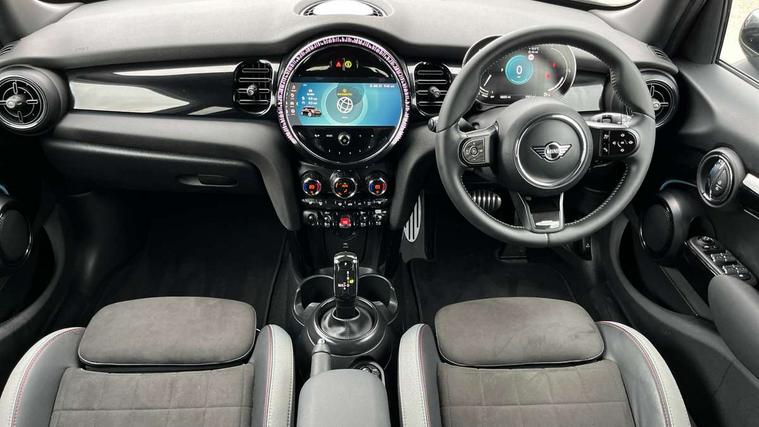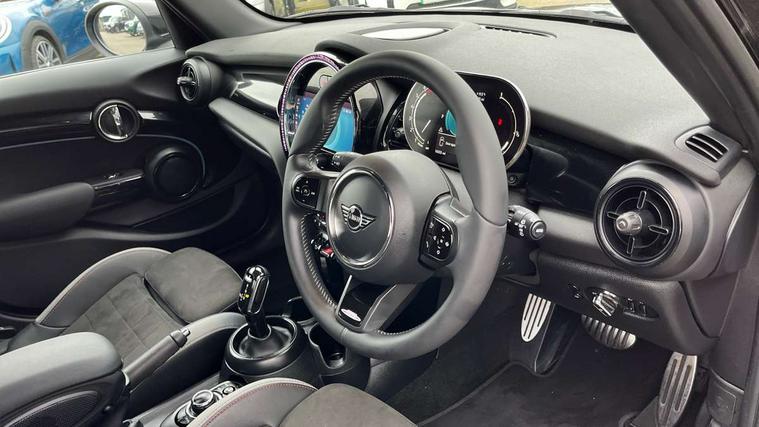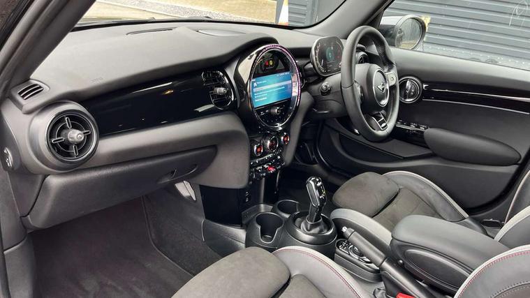 Apple CarPlay, Automatic start/stop function with brake energy recuperation, Compatible mobile phone bluetooth with audio streaming, Electro-mechanical speed dependant steering assistance, Flexible car sharing preparation, MINI Driving Modes - centre toggle switch to control driving setting (sport, mid and green), Mini E-call, MINI TeleServices, On board computer, Rear park distance control, Service interval indicator, Adaptive suspension, Double Vanos system, Fully variable valve control, Gear change indicator display, High precision injection, Performance Control, Steptronic transmission with double clutch, 8.8" touchscreen with LED ring, FM tuner and DAB digital radio, 3rd brake light, Automatic headlight activation switch, Body colour fuel filler cap, Chrome border high gloss black slats radiator grille, Dynamic brake lights, Electric front+rear windows, Exhaust tailpipe on left with chrome finisher, Heated rear window, Heated windscreen washer jets, JCW Aerodynamic kit - Front and rear bumpers with sporty JCW styling and part-painted side sills with MINI John Cooper Works door sill finishers, John Cooper Works rear spoiler, Metal door sill strips with MINI imprint, Model logo Cooper on right of tailgate, Rain sensor window wipers, Rear fog lights, Rear LED lights with union jack design, Rear side wing doors, Rear window wiper, Side scuttle panel with integrated indicator, Sun/heat protection glass, White indicator lenses, 12V Accessory socket in centre console, 3 seat bench in 2nd row, 4 lashing eyes in luggage compartment, 60/40 split folding rear seat, Anthracite headliner including grab handles and clothes hooks, Carbon black colour line - Knee roll and door armrest, Chrome interior highlights, Cupholders, Front and rear isofix with front passenger airbag deactivation, Front and rear velour floor mats, Glove compartment, Height and length steering column adjustment, Interior lighting with 12 different colours across the dashboard, underneath door bezel with illuminated laser-engraved design on central display, JCW Sport seats with integrated headrests, adjustable thigh support and John Cooper Works logo, Leatherette gearshift lever and handbrake gaiters, LED reading lights, vanity mirror lights, front foot well light and spotlight on front seats, Mechanical seat adjustment - forward/back & backrest for front seats and driver seat height adjust, Multifunction steering wheel, Single front passenger seat, Storage compartments in doors, Sunvisors with vanity mirrors, Walknappa leather steering wheel with grey seam and John Cooper Works badge on Piano Black lower steering wheel spoke, Piano black exterior pack - Mini Hatchback Cooper, 3 point seatbelts on all five seats, 6 Airbags - front, side, head and seat belt tensioners, Anti-lock braking system (ABS), Child locks on rear doors, DSC - Dynamic Stability Control, Front and rear disc brakes, Hill start assist, Single tone fanfare horn, Tyre pressure monitoring system, Alarm system with tilt sensor, monitoring doors, bonnet interior and tailgate, Electronic vehicle immobiliser, Start/stop toggle with keyless go, Piano black interior trim, Tool kit,