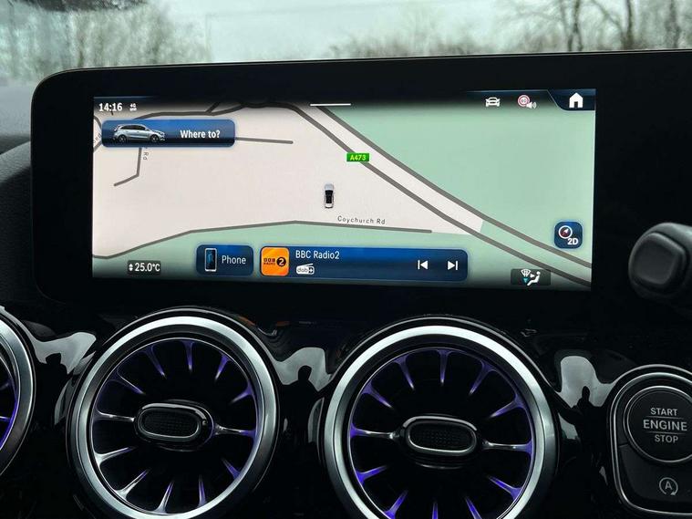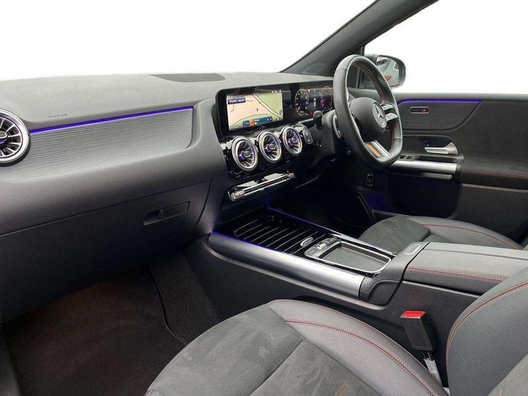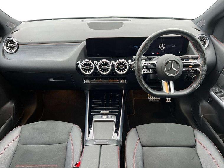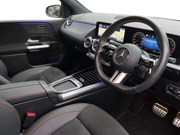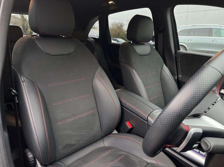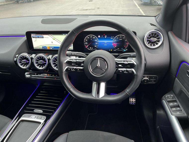 10.25 inch touchscreen central media display, 10.25" Digital instrument cluster display screen, Attention assist - Monitors steering behaviour and long journey fatigue, Blind spot assist, Brake pad wear indicator warning light, Cruise control + speed limiter, Direct steer system, Dual bluetooth interfaces, DYNAMIC SELECT with a choice of driving modes (ECO, Comfort, Sport and Individual), ECO start/stop function, Engine start/stop button, Fingerprint scanner, Fluid level warning indicator for fuel, oil, coolant and washer fluid, GPS aerial, Hard disk navigation, Hey Mercedes Voice activation, Lamp failure indicator, Lane keeping assistant (LKA), Live traffic information, Mercedes me connect including emergency call system, accident recovery, breakdown and maintenance management, Mercedes me remote services, Outside temperature gauge, Owners manual and service booklet in English, Pre-installation for private car sharing, Preinstallation for Mercedes Benz link, Remote boot closing, Service indicator (ASSYST), Smartphone integration with Apple CarPlay and Android auto, Speed limit assist, Speed sensitive power steering, Tailgate, Trip computer in multifunction display with current consumption indicator, Wireless charging, Lowered comfort suspension, DAB digital radio tuner, MBUX multimedia system, Mercedes Benz sound system (100 W) with 6 speakers, 4 Electric Front and Rear windows, Adaptive brake lights, Adaptive high beam assist, AMG body styling - AMG front apron with front splitter and AMG rear apron and visible exhaust tailpipe trim elements, Body coloured bumpers, Body coloured side skirts, Car wash function, Chrome window line, Diamond radiator grille with pins in fine star pattern, Electric adjustable and heated door mirrors with integrated LED side indicators, Exhaust system with 2 Visible tailpipe trim elements and rear apron with trim in chrome, Headlamp assist automatic headlamp activation, Heat insulating dark tinted rear and rear side windows, Heated glass rear windscreen + timer control, High level LED third brake light, Interior mirror with black reading lamps and frameless, LED high performance headlamps with integrated LED daytime running lights, LED tail lamp, Privacy glass, Rain sensing windscreen wipers with two sensitivity settings, Rear fog lamp, Rear side wing doors, Rear windscreen wiper, 3 seat rear bench, 3 twin spoke multifunction sports steering wheel in nappa leather with flattened bottom and perforated grip area, 4 way lumbar support, 40:20:40 split folding rear seat backrests, Air conditioning - air vents with silver chrome surround, Air conditioning - One zone THERMATIC automatic climate control with automatically controlled air distribution, Artico man-made leather/ MICROCUT microfiber upholstery with contrast topstitching, Automatic child seat recognition sensor, Black roof lining, Brushed stainless steel sports pedals with rubber studs, Floor mats with AMG lettering, Fluorescent jacket, Folding rear armrest, Freight packaging without tie-down hooks, Front centre armrest with stowage, Front door sills with Mercedes Benz lettering, Front sports seats with adjustable head restraints, Galvanished gear shift paddles on steering wheel, Heated front seats, Illuminated glove compartment stowage, Interior lighting - 64 colour Ambient lighting, Luggage net on driver/front passenger seat backrest, Manually adjustable front seats, Manually height and reach adjustable steering column, Rear headrests, Seat occupancy sensor for front passenger seat, Single front passenger seat, Stowage compartment in centre console with retractable cover, Sunvisors with illuminated vanity mirrors, Twin front cupholders, Two outer rear seat isofix and top tether child seat fixing points, 360 degree guard vehicle protection pack - B Class, Interior lighting with light and sight pack - B Class, Keyless Go Comfort pack - B Class, Mirror package with self dimming mirror - B Class, Parking pack - B Class, Seat comfort pack - B Class, USB plus pack - B Class, Winter Pack - B Class, 3 rear three point seatbelts, Active bonnet pedestrian safety measure which detects an impact and raises bonnet, Active brake assist includes forward collision warning system with autonomous braking, Adaptive brake assist with hold function and hill start assist, Airbags - kneebag for driver, Anti-lock braking system (ABS), Black seat belts, Brake assist, Childproof locks manually operated for rear doors and electrically operated for rear power windows, Crash responsive emergency lighting, Curve dynamic assist, Driver and front passenger head and sidebags, Driver and front passenger windowbags, Dual stage driver/passenger airbags, Electric parking brake, Electronic stability programme with acceleration skid control, Front and rear seatbelt reminder, Front passenger airbag deactivation, Sports braking system, Tyre pressure monitoring system, Warning triangle and first aid kit, Alarm system with immobiliser and interior protection -Thatcham category 1, Remote central locking and crash sensor with emergency opening function, Black open wood pore trim, 18" AMG 5 twin spoke light alloy wheels, aerodynamically optimised, painted in black with high sheen finish, Summer tyres, Tirefit tyre sealant kit,