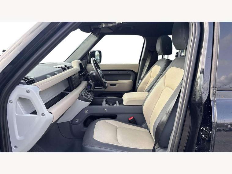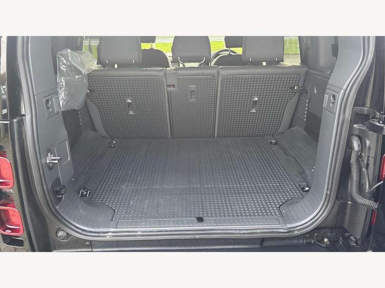 360 degree parking aid, 3D Surround Camera with 360 View, 180 Rear View, Front Traffic Detection, Forward Vehicle Guidance, Tow Hitch Assist and clear sight Ground View, Adaptive cruise control, Android Auto, Apple CarPlay, Assisted tailgate with soft close, Blind spot assist, Bluetooth system, Brake pad wear indicator, Clear exit monitor, Connected navigation pro, Driver condition monitor, Electric power assisted steering (EPAS), Interactive driver display, Lane keep assist, Push button start, Rear traffic monitor, Traffic sign recognition with adaptive speed limiter, Trip computer, Wade Sensing, 8 speed automatic transmission, All wheel drive system, Twin speed transfer box, DAB Radio (Digital Audio Broadcasting), Pivi pro connected, Automatic headlight levelling, Automatic headlights, Black exposed rear recovery eyes, Centre high mounted stop light, Electric heated/power fold door mirrors with approach lights and auto dimming driver side, Electric windows with one touch open/close and anti-trap, Follow me home lighting, Heated rear window with timer, Heated windscreen, LED tail lights, Privacy glass, Puddle lights, Rain sensing windscreen wipers, Rear fog lights, Rear side wing doors, Rear wiper, Side hinged tailgate, Trailer stability assist, X-Dynamic badge, 12V power socket in loadspace, 3 seat bench in 2nd row, Alpine lights, Durable rubber cabin flooring, Durable rubber loadspace flooring, Footwell lights, Front passenger isofix child seat attachment, Loadspace cover, Loadspace Hook, Multifunction steering wheel, Overhead stowage for sunglasses, Premium cabin lighting, Rear headrests, Rear ISOFIX, Rear reading lights, Single front passenger seat, Standard seat configuration, Storage glovebox, Sunvisors with illuminated vanity mirrors, Online pack with data plan - Defender, 5 x 3 point seatbelts, ABS, Brake hold function, Cornering brake control (CBC), Customer configurable autolock, DSC - Dynamic Stability Control, EBD - Electronic brakeforce distribution, Electric parking brake (EPB), Emergency brake assist, Emergency braking, ESP + traction control, Front airbags with passenger seat occupant detector, HDC - Hill descent control, Hill launch assist, Low traction launch, Power operated child locks, Remote for (e-Call, Optimised assistance call, InControl app, Climate, beep and flash and door), RSC - Roll stability control, Seat belt reminder, TPMS (Tyre pressure monitoring system), Alarm, Immobiliser, Intrusion sensor, Keyless entry, Locking wheel nuts,