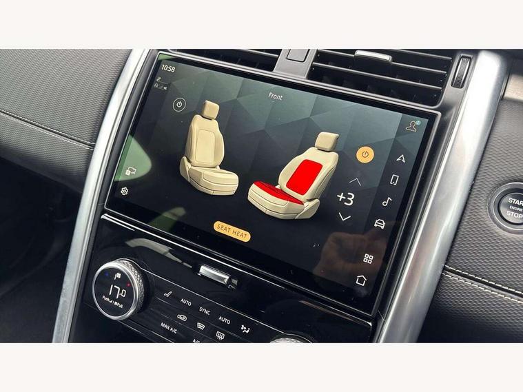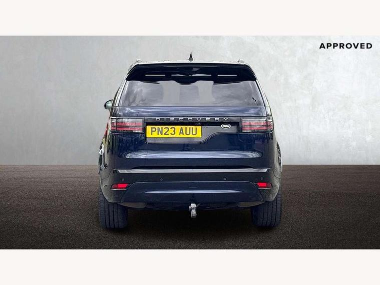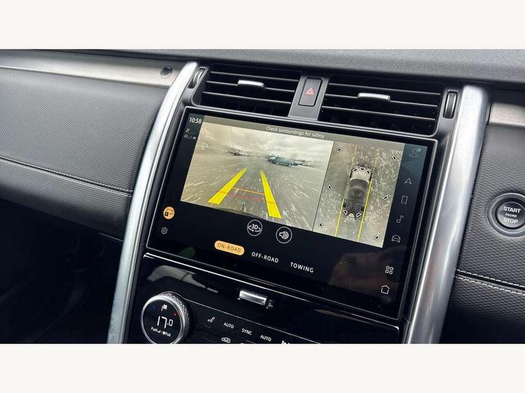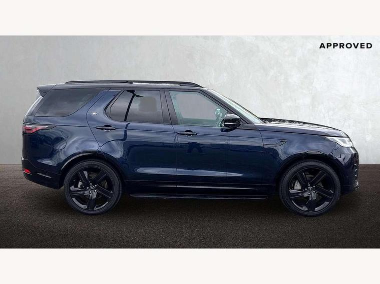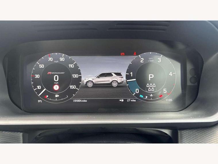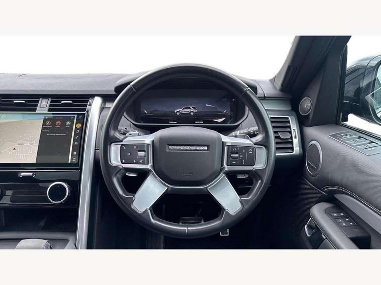 11.4" touchscreen, 3D surround camera, Adaptive cruise control, Android Auto, Apple car play, Blind spot assist, Driver condition monitor, Electric power assisted steering (EPAS), Emergency services call system, Front and rear parking aid, Lane keep assist, Power inner tailgate, Push button start, Rear collision monitor, Rear traffic monitor, Remote, Remote boot release, Service interval indicator, Speed proportional steering, Sportshift selector, Stop/start system, Traffic sign recognition with adaptive speed limiter, Trip computer, Wade Sensing, Adaptive dynamics, Dynamic stability control, Electronic air suspension, Front axle open differential, Digital Audio Broadcast radio-DAB, Dynamic volume control, Pivi pro connected, USB/aux input socket, Acoustic laminated windscreen, Animated directional indicators, Auto dimming interior rear view mirror, Automatic headlight levelling, Automatic headlights, Body colour bumpers, Body colour door handles, Centre high mounted stop light, Electric heated/power fold memory door mirrors with approach lights and auto dimming driver side, Electric windows with one touch open/close and anti-trap, Heated rear window, Heated windscreen, LED darkend tail lights, Metal treadplates with R-Dynamic branding, Narvik black Discovery script, Privacy glass, Puddle lights, Rain sensing windscreen wipers, Rear fog lights, Rear side wing doors, Rear wash/wipe, Trailer stability assist, Variable intermittent wiper, 12V power sockets, 12V USB charging socket in loadspace, 2 seat bench in 3rd row, 3 seat bench in 2nd row, Central hinged twin lidded storage, Ebony morzine headlining, First and second row door bins, Footwell lights, Front and rear 12V with front USB, Front passenger seat isofix location point, In-facia storage, Isofix child seat preparation for front passenger seat, Loadspace cover, Loadspace Hook, Loadspace light, Lockable glovebox, Lower centre console storage, Luggage tie downs in loadspace, Multi function steering wheel, Overhead lighting console, Premium carpet mats, Rear ISOFIX, Shopping bag hook, Single front passenger seat, Storage glovebox, Sunvisors with illuminated vanity mirrors, Third row storage, Twin front cupholders with cover, USB with 12V socket in centre console, Online pack with data plan - Discovery, R-Dynamic black exterior pack - Discovery, 3x3 point rear seatbelts, Anti-lock braking system (ABS), Brake pre-fill technology, Cornering brake control, Curtain airbags, Customer configurable autolock, Driver and passenger airbags, EBD - Electronic brakeforce distribution, Electronic traction control, Emergency brake assist, Emergency braking, ESP, Front side airbags, Gradient acceleration control, Hill descent control, Hill launch assist, Power operated child locks, Rear airbags, Roll stability control, Seat belt reminder, Torque vectoring brake, Tyre pressure monitoring system, Immobiliser, Intrusion sensor, Keyless entry, Locking wheel nuts, Remote central locking, All terrain tyres,
