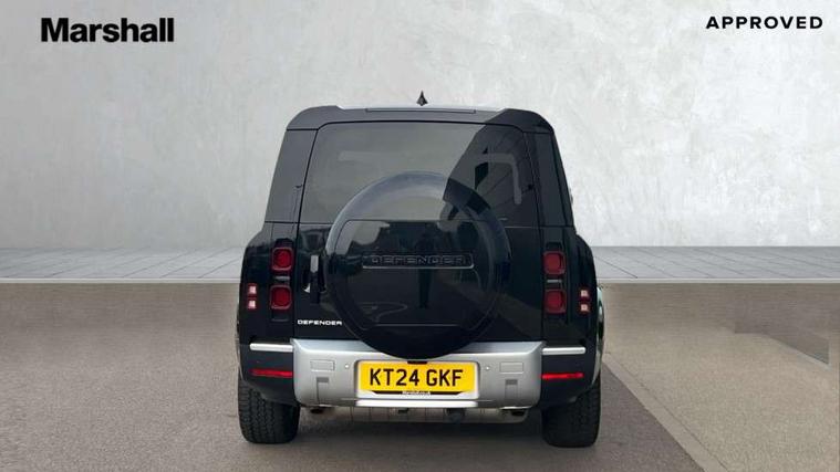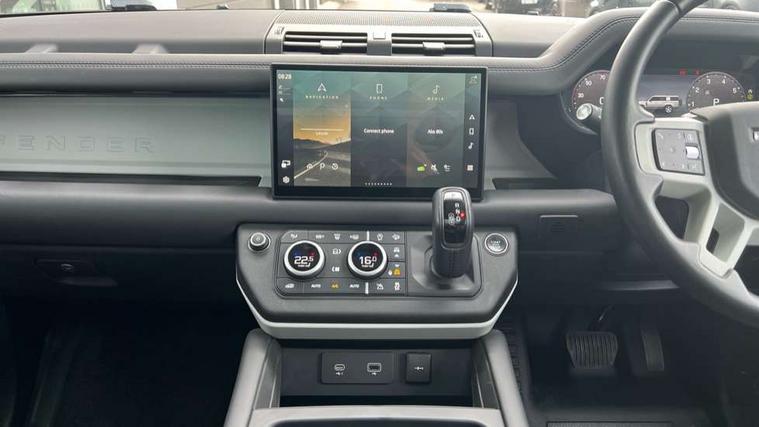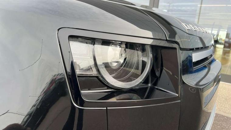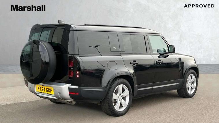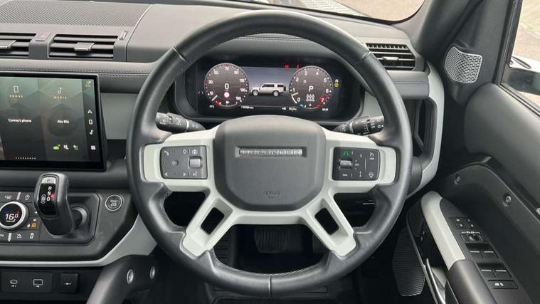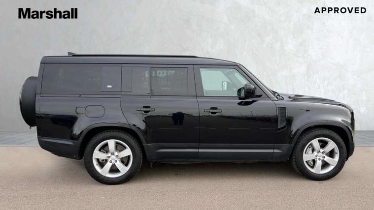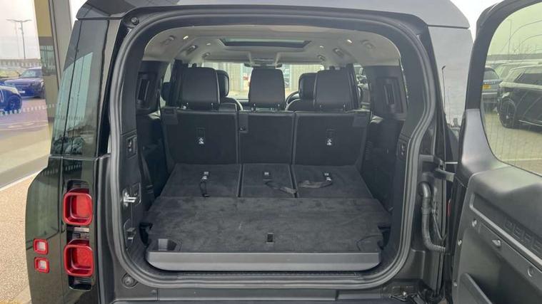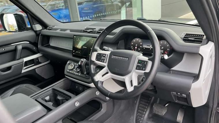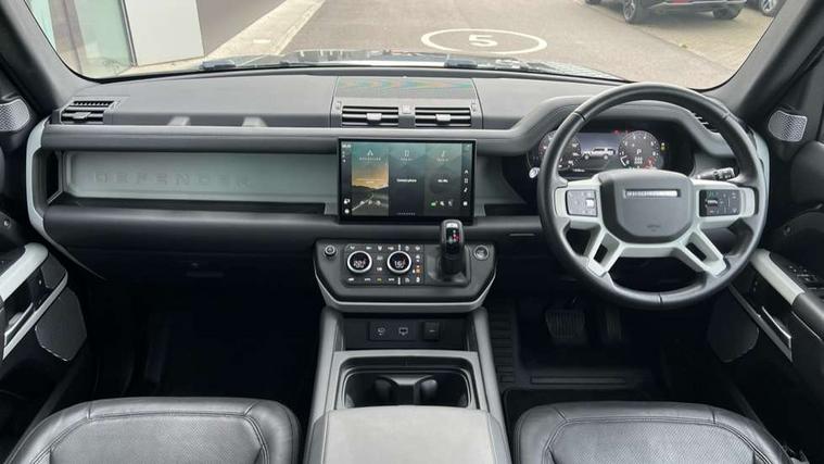 11.4" touchscreen, 360 degree parking aid, 3D Surround Camera with 360 View, 180 Rear View, Front Traffic Detection, Forward Vehicle Guidance, Tow Hitch Assist and clear sight Ground View, Adaptive cruise control, Android Auto, Apple CarPlay, Assisted tailgate with soft close, Blind spot assist, Bluetooth system, Brake pad wear indicator, Clear exit monitor, Connected navigation pro, Driver condition monitor, Electric power assisted steering (EPAS), Interactive driver display, Lane keep assist, Push button start, Rear collision monitor, Rear traffic monitor, Traffic sign recognition with adaptive speed limiter, Trip computer, Wade Sensing, 8 speed automatic transmission, Adaptive dynamics, All wheel drive system, Electronic air suspension, Twin speed transfer box, DAB Radio (Digital Audio Broadcasting), Pivi pro connected, Auto dimming interior rear view mirror, Automatic headlight levelling, Automatic headlights, Black roof rails, Centre high mounted stop light, Electric heated/power fold door mirrors with approach lights and auto dimming driver side, Electric windows with one touch open/close and anti-trap, Follow me home lighting, Front fog lights, Heated rear window with timer, Heated windscreen, LED tail lights, Puddle lights, Rain sensing windscreen wipers, Rear fog lights, Rear side wing doors, Rear wiper, Side hinged tailgate, Sliding panoramic roof, Standard treadplates, Trailer stability assist, 12V power socket in loadspace, 14 way heated and cooled electric adjustable memory front seats with 4 way manual headrests, 3 seat bench in 2nd row, 3 seat bench in third row, Air quality sensor, Alpine lights, Cabin Air Purification plus, Configurable cabin lighting, Durable rubber cabin flooring, Durable rubber loadspace flooring, Electric cabin pre conditioning, Electric reach + rake adjustable steering column, Extended leather upgrade, Footwell lights, Front passenger isofix child seat attachment, Heated steering wheel, Loadspace cover, Loadspace Hook, Multifunction steering wheel, Overhead stowage for sunglasses, Premium cabin lighting, Rear headrests, Rear ISOFIX, Rear reading lights, Single front passenger seat, Storage glovebox, Sunvisors with illuminated vanity mirrors, Twin front cupholders with cover, Online pack with data plan - Defender, 5 x 3 point seatbelts, ABS, Brake hold function, Cornering brake control (CBC), Customer configurable autolock, DSC - Dynamic Stability Control, EBD - Electronic brakeforce distribution, Electric parking brake (EPB), Emergency brake assist, Emergency braking, ESP + traction control, Front airbags with passenger seat occupant detector, HDC - Hill descent control, Hill launch assist, Low traction launch, Power operated child locks, Remote for (e-Call, Optimised assistance call, InControl app, Climate, beep and flash and door), RSC - Roll stability control, Seat belt reminder, TPMS (Tyre pressure monitoring system), Alarm, Immobiliser, Intrusion sensor, Keyless entry, Locking wheel nuts, Body coloured spare wheel cover,