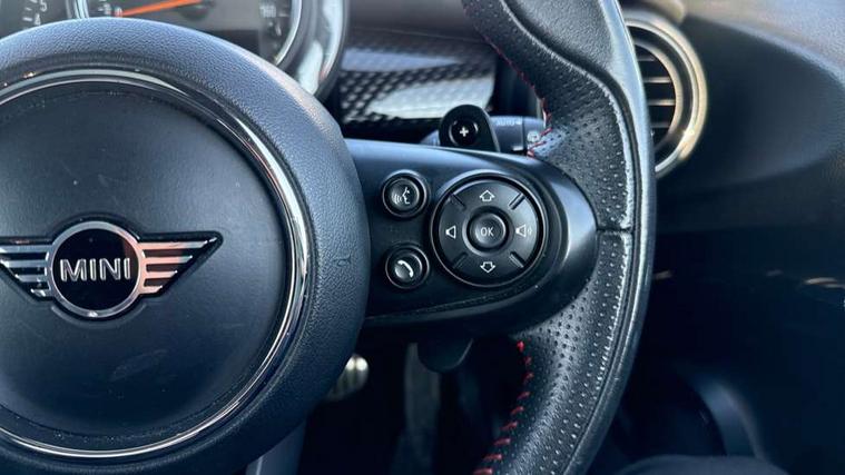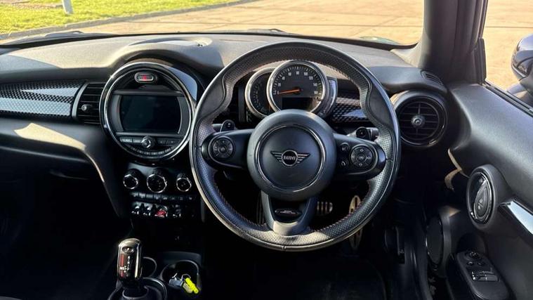 Automatic start/stop function with brake energy recuperation, Compatible mobile phone bluetooth with audio streaming, Electro-mechanical speed dependant steering assistance, Instrument cluster, Mini E-call, MINI TeleServices, On board computer, Service interval indicator, Double Vanos system, Fully variable valve control, High precision injection, Performance Control, Steptronic sport transmission with double clutch and steering wheel paddles, 6.5" touchscreen with LED ring, FM tuner and DAB digital radio, Automatic headlight activation switch, Bonnet scoop, Chrome border honeycomb structure radiator grille with S badge, Chrome plated fuel cap, Dynamic brake lights, Electric front+rear windows, Heated rear window, Heated windscreen washer jets, John Cooper Works - aerodynamic kit (front and rear apron, spoiler), front and rear sport bumpers and part-painted side sills with door sill finishers, John Cooper Works rear spoiler, LED headlight with closed ring and daytime driving lights, Metal door sill strips with Cooper S imprint, Model logo Cooper S on right of tailgate, Rain sensor window wipers, Rear fog lights, Rear LED lights with union jack design, Rear window wiper, Side scuttle panel with integrated indicator, Sun/heat protection glass, Two central exhaust tailpipes with chrome finisher, White indicator lenses, 12V Accessory socket in centre console, 4 lashing eyes in luggage compartment, 60/40 split folding rear seat, Anthracite headlining, Chrome interior highlights, Cupholders, Front and rear head restraints, Front and rear isofix with front passenger airbag deactivation, Glove compartment, Height and length steering column adjustment, Interior lighting with 12 basic colours selectable via toggle switch in roof, John Cooper Works leather steering wheel with contrasting stitching in Chilli Red with John Cooper Works logo, John Cooper Works Logo in seat, Leather gearshift lever and handbrake gaiters, LED reading lights, vanity mirror lights, front foot well light and spotlight on front seats, Manual air conditioning, Mechanical seat adjustment, driver seat height adjust, forward/back and front seats backrest, Mini logo projection on floor from drivers exterior mirror, Multifunction steering wheel, Storage compartments in doors, Storage pocket on back of front seats, Sunvisors with vanity mirrors, 3 point seatbelts on all four seats, 6 Airbags - front, side, head and seat belt tensioners, Anti-lock braking system (ABS), DSC - Dynamic Stability Control, Front and rear disc brakes, Hill start assist, Two tone horn, Tyre pressure monitoring system, Alarm system with tilt sensor, monitoring doors, bonnet interior and tailgate, Electronic vehicle immobiliser, Start/stop toggle with keyless go, Tool kit,