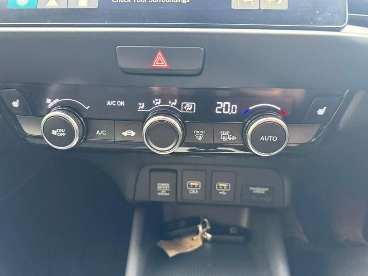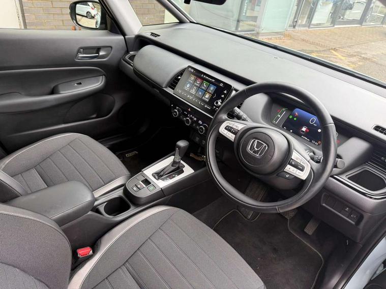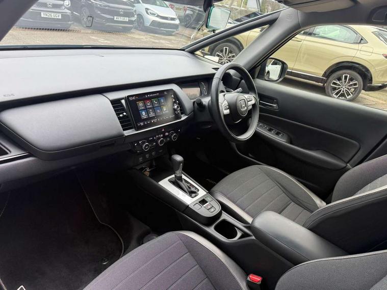 Adaptive cruise control, Adjustable speed limiter, Agile handling assist, Bluetooth hands free telephone connection, eCall emergency call system, Econ mode, Electric power steering wheel with variable gear ratio steering, Emergency stop signalling system, Forward collision warning, Front and rear parking sensors, Honda CONNECT with GARMIN Navigation + 9" touchscreen, AM/FM/DAB/Apple Carplay and android auto, Idle stop, Intelligent speed limiter, Lane departure warning system, Lane keep assist system, Low speed following, Multi-information display, Rear view camera, Road departure mitigation, Tailgate, Traffic jam assist, Traffic sign recognition, Wireless apple carplay, Vehicle stability assist, 'Shark fin' mobile antenna, 180w Power audio system with 4 speakers, 2 USB-C connectors rear, 2x USB Front socket (1 data & 1 charge), Remote audio controls on steering wheel, Aspheric door mirrors, Auto wipers, Automatic headlights with on/off timer, Coming/leaving home function, Black door mirrors, Black headlight extension, Body colour door handles, Body coloured front grille, eHEV emblem, Electric adjustable door mirrors, Electrically folding door mirrors, Exclusive styling includes front and rear bumper, front fog garnish, silver fender, side sill garnish, Front and rear electric windows, Heated door mirrors, High beam assist, LED 3rd brake light, LED daytime running lights, LED front fog lights, LED Headlights, LED rear lights, Manual headlight levelling, Privacy glass, Rear side wing doors, Rear wiper, Roof rails, Single exhaust tailpipe, 3 seat bench in 2nd row, 60/40 split rear bench seat, Cargo net hooks, Climate control air conditioning, Driver and front passenger seat armrests, Driver and passenger front seat pockets, Driver's seat height adjustment, Fabric/Water repellent upholstery, Front accessory power socket, Front head restraints, Front map lights, Front/rear courtesy lights, Heated front seats, Heated steering wheel, Isofix points, Leather gearshift knob, Leather steering wheel, Magic seat flexibility system, Plating interior door handles, Rear head restraints, Single front passenger seat, Sunvisors with vanity mirrors, Tilt/telescopic adjustable steering wheel, Tonneau cover, Trunk light, Vanity mirror illumination, 3x3 point rear seatbelts, Anti-lock braking system (ABS), Brake assist function, Brake hold function, Child locks on rear doors, Collision mitigation braking system, Deflation warning system, Driver knee airbag, Driver SRS airbag (single stage inflation), Driver/Front Passenger airbags, Electronic parking brake with auto hold, Front and rear seat belt with emergency locking retractor, Front and rear side curtain airbag, Front centre airbag, Front side airbags, Hill start assist, Passenger SRS airbag cut-off device, Rear side airbags, Whiplash lessening front headrests, Honda super locks, Immobiliser, Mirrors and windows key fob operation, Remote central locking with 2 remote folding keys, Security alarm, Smart entry + Smart start, Soft pad leather interior panels, 16" 3D chrome H centre cap alloy wheels, Tyre repair kit,