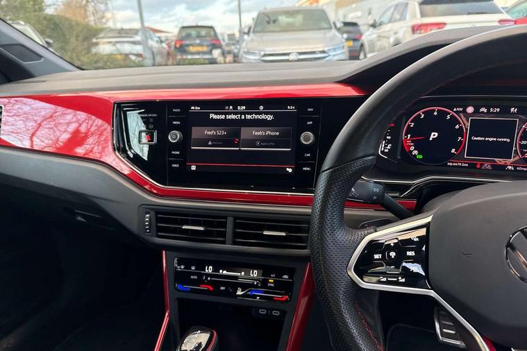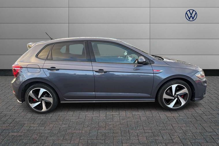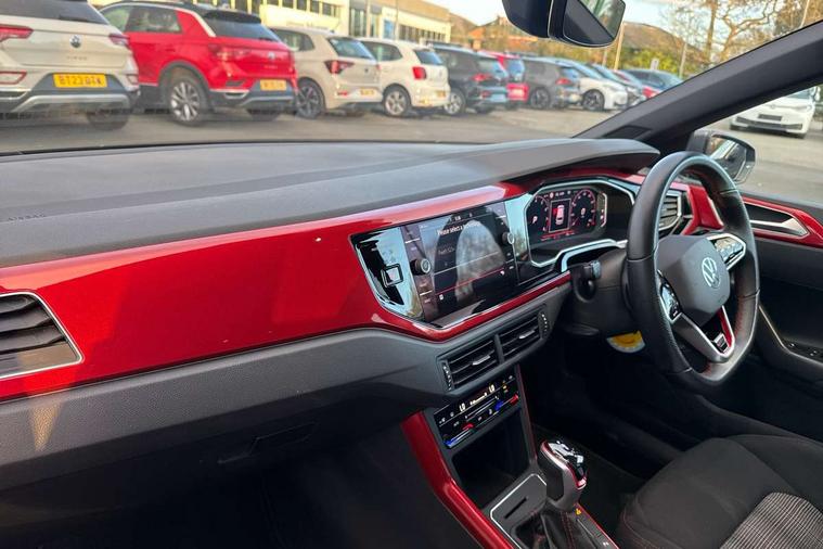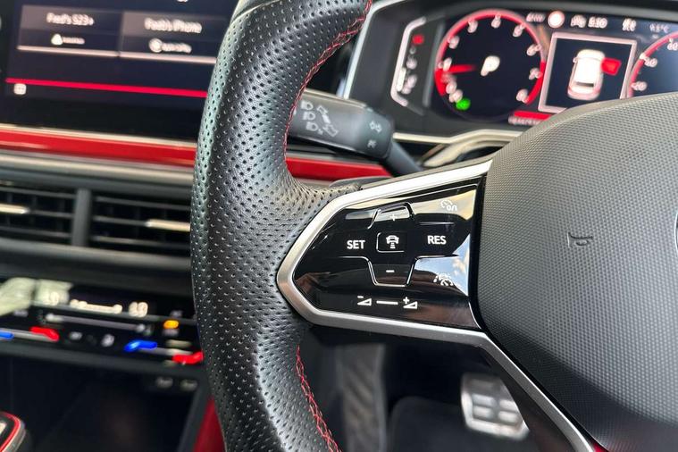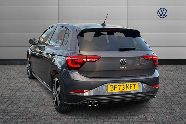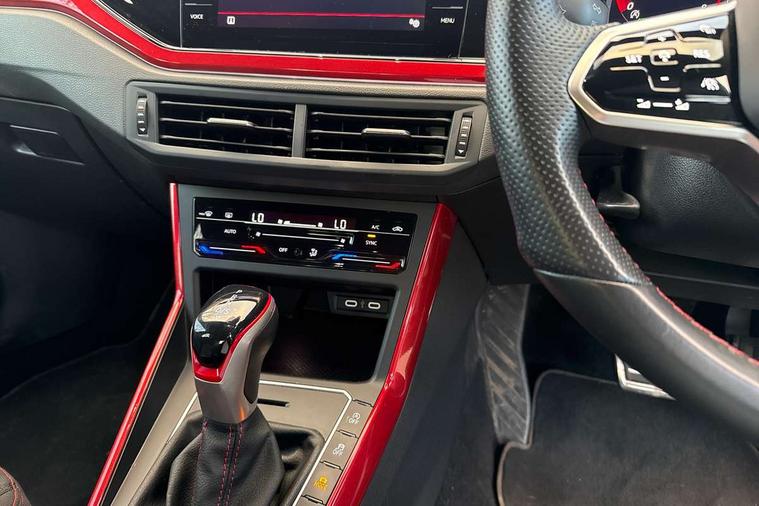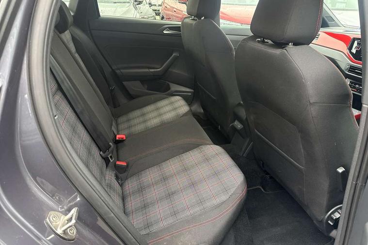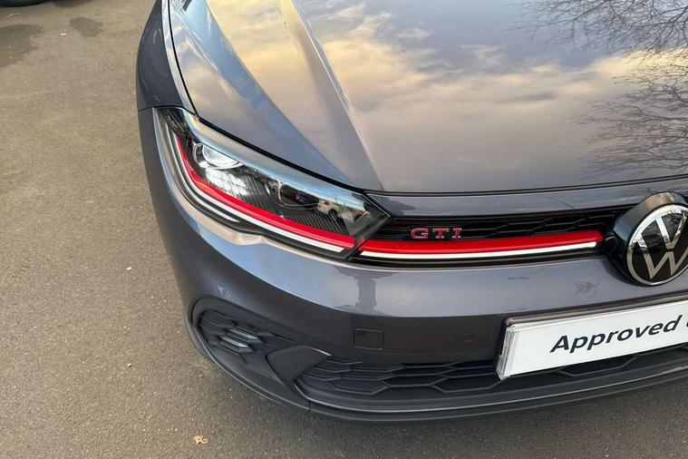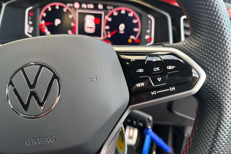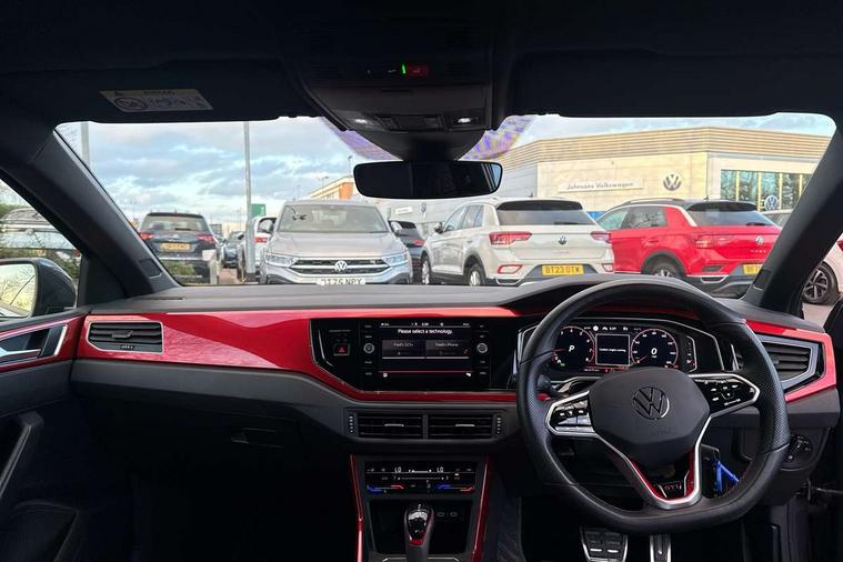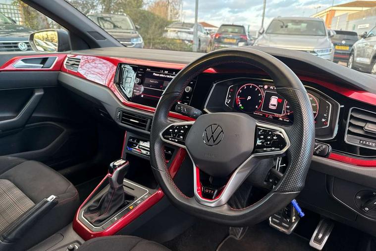 Adaptive cruise control with follow-to-stop and speed limiter, Bluetooth mobile phone interface, Digital Cockpit Pro with 10.25" Display, Driver alert system, Dynamic road sign display, Eco mode, Emergency call service, Power assisted speed sensitive steering, Preparation for We connect and We connect plus, Speedo and rev counter, electronic odometer, trip, service interval display and fuel gauge, Travel Assist - Lane keeping system and traffic jam assist, Travel assist including emergency assist, Trip computer, Warning signal and warning light for front and rear seatbelts not fastened, Washer fluid level indicator, Wireless app connect, Adaptive chassis control, Front wheel drive, Heavy duty rear axle, Rear shock absorpion sports version, Sports select suspension lowered by 15mm, Start-stop system with battery regeneration (recuperation - energy recovery during braking), DAB Digital radio, Diversity antenna for FM reception, Front and rear 6 speakers, Body colour bumpers, Body colour door handles, Electric front windows, Front scuff plates in aluminium with GTI logo, Heat insulating darkened glass in side and rear windows, Heat insulating glass windscreen, Power folding adjustable/heated exterior mirrors and front passenger exterior mirror lowering function, Rain sensor, Rear electric windows, Rear fog light, Rear side wing doors, Rear windscreen washer and wiper with interval delay, Sport bumpers with air intakes with honeycomb structure, Third brake light, Twin chrome exhaust tailpipes, 12V power socket in centre console, 2 USB-C ports in the front, 2 USB-C charging sockets on the center console in the rear, 3 rear head restraints, 60/40 split folding rear seat and rear seat bench not split, Air care climatronic air conditoning system with active combination filter and 2-zone temperature control, Black roof lining, Chrome plated radiator grille inserts, air vent surrounds and light switch surrounds, Door and side trim panel, Driver and front passenger seat height adjustment, Driver/passenger sunvisors with illuminated vanity mirrors, Front + rear carpet mats in recycled material, Front centre armrest, Front footwell illumination, Front seat backrest storage pockets, GTI sports gearshift knob in aluminium leather, Handbrake lever handle in leather, Headliner in recycled material, Isofix child seat preparation easy-fit (for two outer rear seats, and front passenger seat) compatible with I-size, LED interior light with switch off delay and dimmer, 2 reading lights front and rear, Luggage compartment cover, Luggage compartment floor, Luggage compartment lighting, Single front passenger seat, Stainless steel pedals, Standard pedal cluster, Three spoke leather wrapped multifunction sports steering wheel with shifting paddles, IQ LED matrix headlights pack - Polo, Light and sight pack - Polo GTI, 3 point height adj front seatbelts + pretensioners, 3x3 point rear seatbelts, ABS, Driver and front passenger airbag with front passenger airbag deactivation, Drivers and front passengers safety optimised head restraints, ESC (Electronic stability control) + EDL (Electronic Differntial lock) and ASR (Traction control), Extended and predictive pedestrian/ cyclist protection, Front and rear disc brakes with red brake calipers, Front curtain and side airbags with center airbag, Hill hold control, Manual child lock in rear doors, Two tone horn, Tyre pressure loss indicator, Alarm with interior protection, Anti-theft alarm system with interior monitoring, backup horn, and towing protection, Anti-theft wheel bolts, Electronic engine immobiliser, Chrome applications on rotary light, mirror adjustment, window regulator switches, outlet with frame in black, Low rolling resistance tyres,