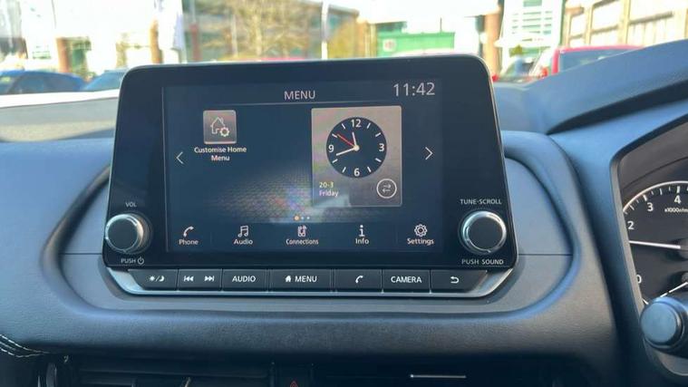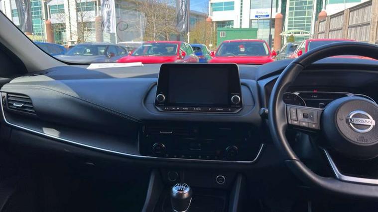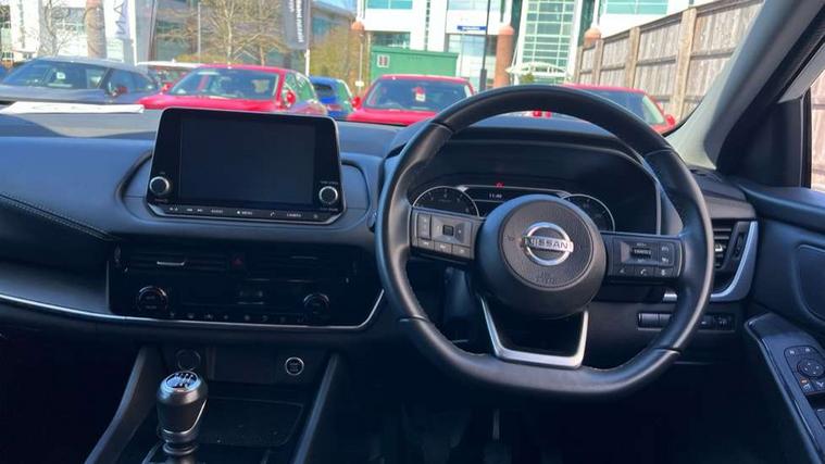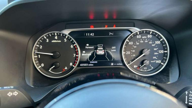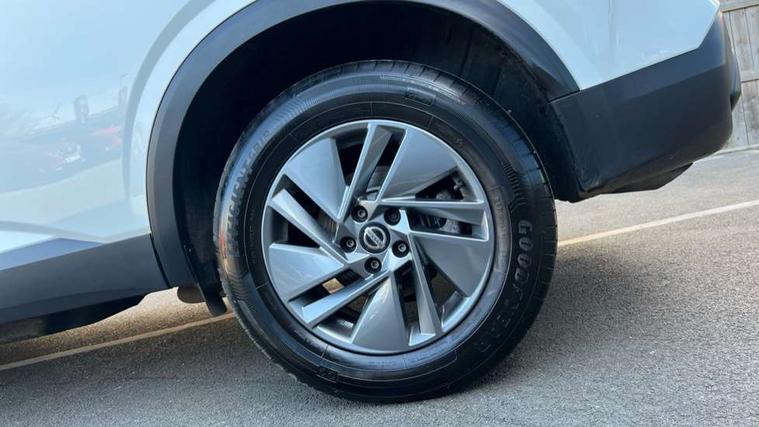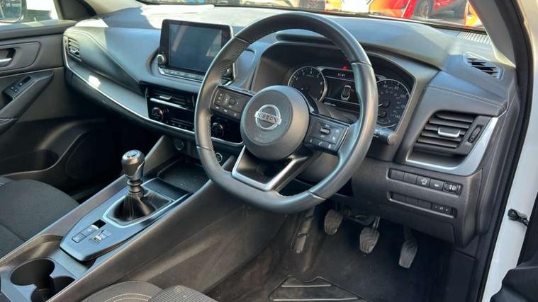 7" High definition full colour TFT screen combimeter, Android auto/Apple CarPlay (Wired), Blind spot warning, Drive modes (sport, normal, eco), Electric speed sensitive power steering, Emergency and breakdown call, Idle stop/start system, Intelligent Cruise control (ICC), Intelligent driver alert system, Intelligent forward collision warning, Intelligent lane intervention, Lane departure prevention, Lane departure warning system, Maximum speed limiter, Nissan connect 8" touchscreen infotainment system, Push button starter, Rear cross traffic alert, Rear parking sensors, Rear view camera, Traffic sign recognition with legal speed adjustment, Trip computer, 6 speakers, AM/FM audio system with DAB, Bluetooth audio streaming, Front USB connections (Type-A and Type-C), Auto dimming rear view mirror, Auto rear wiper when reversing, Automatic hazard signal with emergency stop signal, Body colour mirror caps, Body coloured door handles, Bodyside mouldings, Chrome side window finisher, Door handle with button, Dusk sensor, Electric auto folding door mirrors, Electrically adjustable and heated door mirrors with LED turn indicator, Follow me home headlights, High beam assist, Intelligent auto headlights, LED daytime running lights, LED Headlights, LED rear lights, One touch front and rear electric windows with remote opening and closing, Partially body coloured bumpers, Rain sensor, Rear reversing light (bulb lighting), Rear roof spoiler, Rear side wing doors, Shark fin antenna, Splash free rain sensing wipers, Three blink turn signal, 12v power socket in dashboard and luggage, 2 way electrical driver lumbar adjustment, 2x Rear coat hooks, 3 bench rear seats in 2nd row, 3 rear headrests, 4 folding assist grip, 6-way manually adjustable driver's seat, 60/40 split folding rear seat bench, Centre console storage tray, Chrome interior door handles, Cloth monoform upholstery, Driver and front passenger sunvisors with illuminated vanity mirrors, Driver seat back pocket, Dual zone automatic climate control with pollen filter, Front and rear door storage, Front cupholders x 2, Front door with bottle holders, Glovebox with light, Hard trunk cover, Height adjustable front headrests, Leather shift knob, Leather steering wheel, Luggage space lighting, Manually adjustable passenger (slide recline + lifter), Multifunction steering wheel, Passenger seat back pocket, PVC front centre console and armrest, Rear armrest with 2 cupholders, Rear door bottle holders, Single front passenger seat, Steering wheel switches, Sunglasses holder, Tilt/telescopic adjustable steering wheel, Two rear isofix child seat anchorage points with top tether, 3x3 point rear seatbelt pretensioners + load limiters, ABS, ESP, EBD and brake assist, Active brake limited slip, Auto hold function, Child locks on rear doors, Curtain and front side, far side airbags, Driver and passenger airbags, Driver, passenger and 2nd row rear seat belt reminder, Electronic parking brake, Front seatbelt pretensioners + load limiters, Height adjustable front seatbelts, Hill start assist, Intelligent blind spot intervention, Intelligent front emergency braking with pedestrian, cyclist recognition and junction assist, Intelligent rear automatic braking, Tyre pressure monitoring system, Vehicle dynamic control, Capless fuel filler, Engine immobiliser, Nissan i-key, Remote central door locking with deadlocking, Thatcham Cat.1 alarm, Interior instrumental panel A finisher, 17" Alloy wheels, Tyre puncture repair kit,