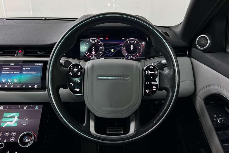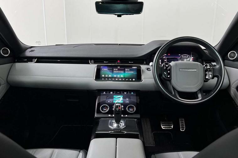 360 degree parking aid, Adaptive cruise control, Android Auto, Apple car play, Blind spot assist, Bluetooth connectivity, Brake pad wear indicator warning light, Clear exit monitor, Driver condition monitor, Duo touch pro, Electronic power assisted steering (EPAS), Head up Display, InControl remote, Interactive Driver display instrument cluster, Land Rover InControl apps, Lane keep assist, Navigation pro system, Park assist - Parallel, perpendicular and parking exit, Powered tailgate/boot lid, Pro services and wifi hotspot, Push button starter, Rear traffic monitor, Rear view camera, Smart settings, Traffic sign recognition with adaptive speed limiter, Voice control system, All terrain progress control, Efficient Driveline, Passive suspension, Terrain Response 2 Auto, Digital Audio Broadcast radio-DAB, Meridian sound system with 380W subwoofer and 10 speakers, Steering wheel mounted controls, Automatic headlight levelling, ClearSight interior rear view mirror, Electric windows with one touch open/close and anti trap, Evoque and R-Dynamic badge, Fixed panoramic sunroof with powered sunblind, Flush deployable exterior door handles, Front fog lights, Headlight power wash, Heated rear window with timer, Heated washer jets, Heated windscreen, Illuminated metal treadplates in loadspace and row 1 with First Edition script and non illuminated metal in row 2, Matrix LED headlights with signature DRL, intelligent high beam assist, signature Hi-Line tail lights and animated directional indicators, Metallic paint, Narvik black contrast roof with exterior mirror caps, No badge - Removes powertrain badge and specification pack badge, Power fold, auto-dimming, heated door mirrors with memory and approach lights, Privacy glass, Rain sensing windscreen wipers, Rear fog lights, Rear wing door, Shadow atlas bonnet and tailgate script, Tailgate spoiler, Third brake light, 14 way electric heated front seats with memory, fore/aft, recline/height/tilt, 4way lumbar + manual headrest adj with rear centre armrest, 40:20:40 split folding rear seats, Black gearshift paddles, Bright metal pedals, Configurable Ambient interior lighting, Duo-tone grained leather upholstery, Ebony morzine headlining, Electrically adjustable steering column with memory, Extended leather upgrade, First Edition carpet mats, Heated steering wheel, Isofix system on outer rear seats, Overhead lighting console, Overhead stowage for sunglasses, Passive front head restraints, Perforated soft grain leather steering wheel with Atlas bezel, Rear air vents, Rear centre headrest, Sunvisors with illuminated vanity mirrors, Twin front cupholders with cover, Twin sliding front centre armrest, Two zone climate control, Power socket pack 1 - Evoque, R-Dynamic exterior pack - Evoque, 3 rear 3 point seatbelts, Anti-lock braking system (ABS), Customer configurable autolock, DSC - Dynamic Stability Control, Electronic brake force distribution, Electronic parking brake, Electronic traction control, Front and rear seatbelt reminder, High speed emergency braking, Hill descent control, Hill launch assist, Low traction launch, Power operated child locks, Roll stability control, Six airbags - Driver and passenger airbags/driver knee airbag/front side airbag and curtain airbags, Torque vectoring brake, Tyre pressure monitoring system, Alarm, Immobiliser, Intrusion sensor, Keyless entry, Locking wheel nuts, Gradated linear dark aluminium trim finisher with First Edition script, All season tyres, Tyre repair system,