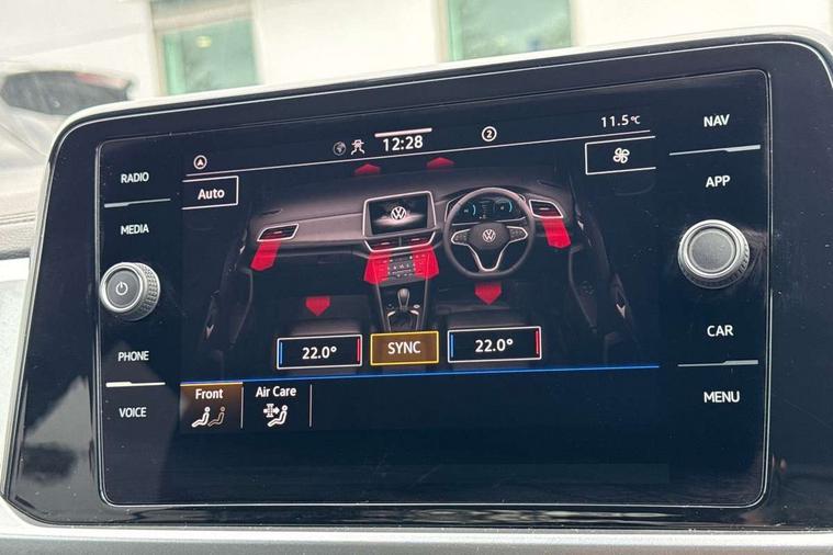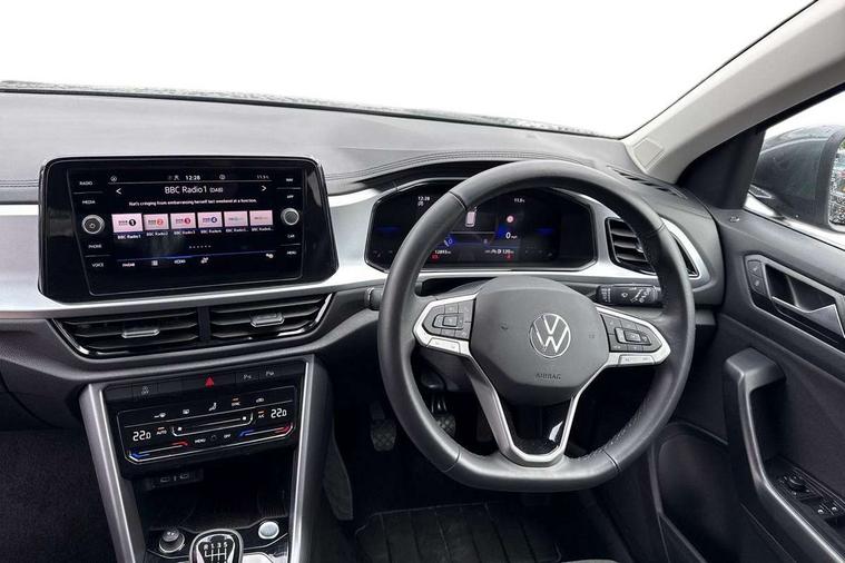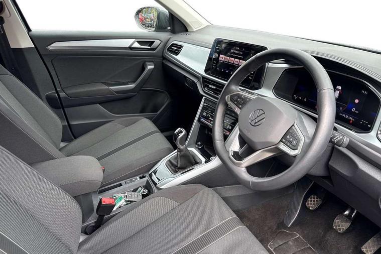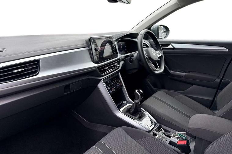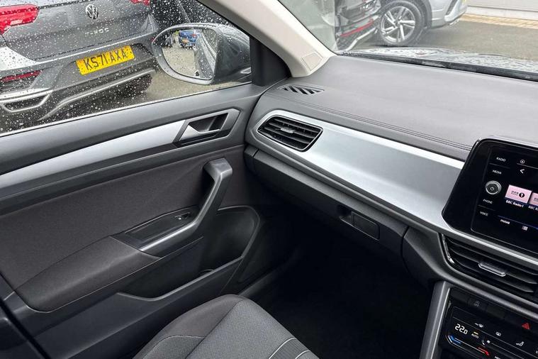 Advanced driver attention and drowsiness monitor, Dynamic road sign display, Emergency call service, Lane keeping system Lane Assist, Mobile phone interface, Modified key software - reduce switch off time for key status change to Long no motion, Online services, Park assist including front and rear parking sensors, Power assisted speed sensitive steering, Rear view camera, Service interval indicator, Tailgate/trunk lid release from outside, Think blue trainer driver tips and journey analysis, Warning sound and light for front seatbelts unfastened, Wireless app connect, Battery regeneration during braking, Front shock absorption, Rear shock absorption chassis with increased ride height, Start/stop function with battery regeneration, DAB Digital radio, Diversity antenna for FM reception, Front and rear 6 speakers, Music playback - MP3, WMA and AAC files, Premium USB cable in choice of either Apple or Android smartphone compatibility, SD card slot, Simultaneous pairing of 2 compatible mobile devices, Title and cover art display, We Connect and We Connect Plus functionality, Auto dimming interior rear view mirror, Automatic hazard lights activation under emergency braking, Automatic headlight control with LED separate daytime running lights with coming/leaving home function, Black roof rails, Body coloured bumpers and radiator grille with chrome trim and front fog lamps with chrome bezel, Body coloured exterior mirror housings and door handles, Electrically adjustable and heated door mirrors, Extended roof spoiler, Exterior mirrors aspherical on driver side, convex on front passenger side, External USB type C socket and charging sockets, Front windscreen wiper with intermittent wipe and 4 position delay, Heated rear window, LED 3rd brake light, LED rear combination lamps, LED rear number plate lights, Power windows with comfort operation and circuit breaker, Privacy glass for rear side windows and rear window, Rain sensor, Rear exhaust tailpipe, Rear fog light on one side and reversing lights on both sides, Rear side wing doors, Rear wash/wipe with intermittent wipe setting, Remote electrically foldable door mirrors, puddle lights and reverse activated passenger's door mirror, 12V power socket in centre console, 3 rear head restraints, 3 seat bench in 2nd row, 4 load lashing points in luggage compartment, Air care climatronic air conditoning system with active combination filter and 2-zone temperature control, Black stitching for floor mats, Ceramique roof liner, Cloth upholstery, Door and side trim panel in cloth, Drawer under drivers seat, Driver/front passenger seat height adjustment, Front centre armrest, Front comfort sports seats, Front cupholders x 2, Front reading light, Front seat back storage pockets, Glove compartment door with light, Instrument lighting, white adjustable panel illumination, Interior ambient lighting and surround lighting, Interior light delay, Isofix child seat preparation, Leather gearshift handle, Load-through provision with cup holder when folded down ('Unsplit rear seat bench, split folding backrest, with centre armrest), Luggage compartment lighting, Lumbar support for driver's and front passengers seat, Non-folding front passenger seat backrest, Single front passenger seat, Storage compartment in left and right luggage area, Storage compartment in rear doors, Storage compartments in driver and front passenger doors, Sunvisors with illuminated vanity mirrors, Variable boot floor, height adjustable and removable, Driver assistance pack without proactive passenger protection - T-Roc Life/Match, 3 point height adj front seatbelts + pretensioners, 3 point seatbelts in outer rear with ECE label, ABS, Child locks on rear doors, City emergency braking and pedestrian monitoring, Driver and front passenger airbag with front passenger airbag deactivation, Driver and front passenger safety-optimised head restraints, Drivers seatbelt reminder, Electronic parking brake, Electronic Stability Control (ESC) inc EDL (Electronic Differential Lock) and ASR (Traction Control), Front and rear passengers curtain airbag system including front side airbags, Front disc brakes, Hill start assist, Predictive pedestrian protection, Rear disc brakes, Two tone horn, Tyre pressure loss indicator, Volkswagen roadside assistance, Alarm with interior protection, Keyless locking and starting system keyless access with safelock, Pewter matt decorative inserts for intrument panel, centre console and door panels at the front, Trims for alloy wheels,