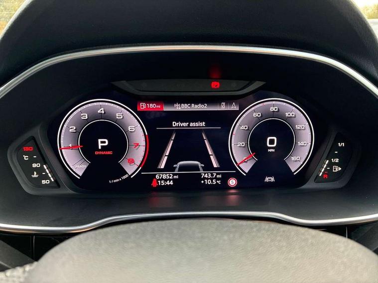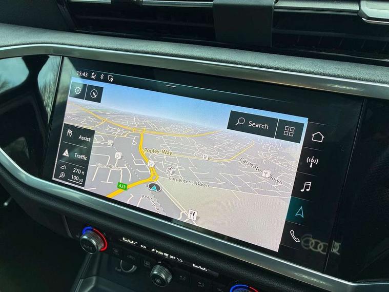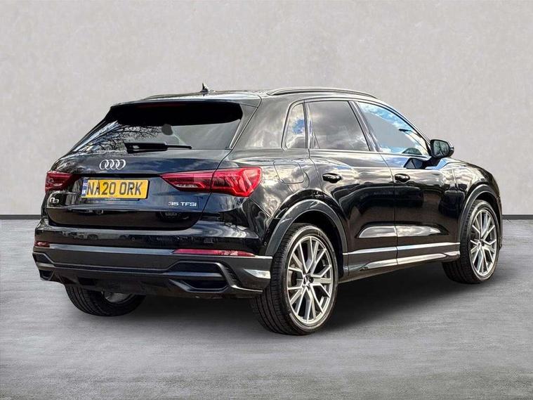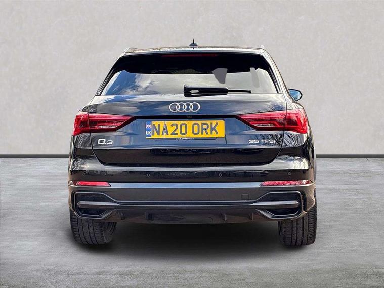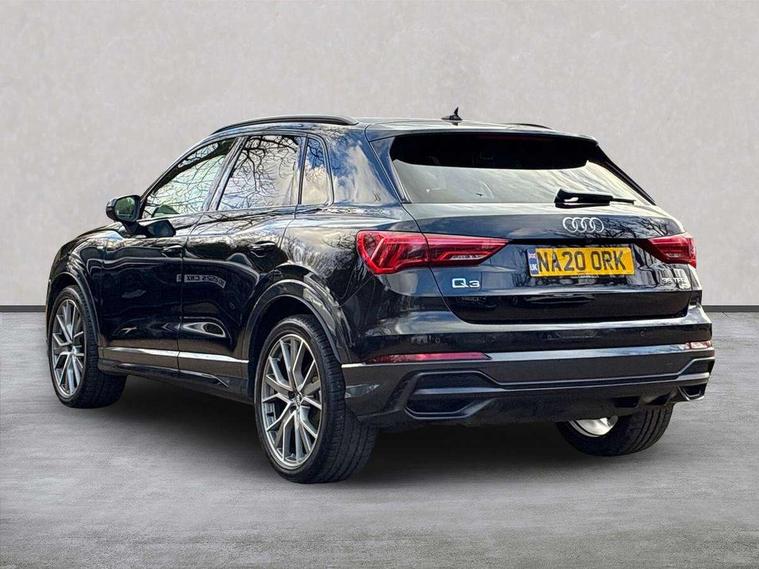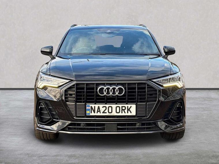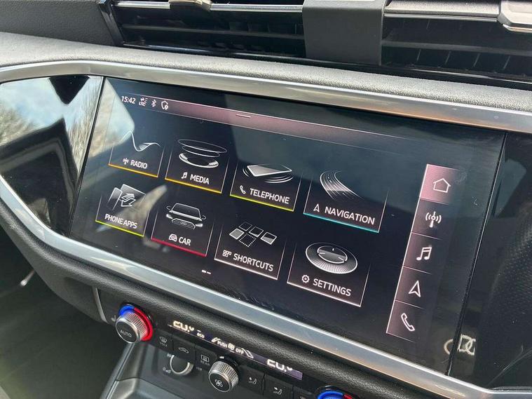 360 degree parking camera, Audi connect safety and service (e-call), Audi drive select, Audi lane departure warning, Audi phone box with wireless charging, Audi side assist, Audi smartphone interface includes wireless Apple carplay/Android Auto, Audi virtual cockpit plus, Bluetooth interface, Camera based traffic sign recognition, MMI Navigation Plus with high resolution 10.1 inch touchscreen colour display, Power operated tailgate, Progressive steering, Rear cross traffic alert, Service interval indicator, Start stop system with recuperation, Voice control system with natural language interaction, 48V Mild hybrid technology, Adaptive suspension with damping control, 1 x USB type C and 1 USB type A charging points, Bang + Olufsen 3D sound system, DAB digital radio module, Acoustic windscreen, Audi Beam uses LEDs to project the Audi Sport logo, Auto dimming door mirrors, Auto dimming frameless rear view mirror, Black roof rails, Electrically folding, adjustable and heated door mirrors with integrated LED side indicators and kerb view function for passenger side, Front and rear electric windows, Front fog lights, Front spoiler blade in matt platinum grey, Headlight washers, High gloss black finish B and C pillars, Matrix LED headlights with LED rear lights and dynamic front and rear indicator, Panoramic opening glass sunroof, Privacy glass dark tinted rear and rear-side windows (from B-pillar backwards), Rain and light sensors, Rear diffuser strip in matt titanium black, S line bumpers in contrasting Manhattan grey, 12V socket in rear centre console, 3 spoke flat bottomed high multi-function leather sport steering wheel with gearshift paddles, 4 way electric lumbar support for driver and front passenger, 40:20:40 folding with manual adjustment for 60:40 forwards/backwards position and backrest angle, Adjustable rear seat bench/backrest with centre armrest and cupholder, Black cloth headlining, Dual zone electronic climate control, Electrically adjustable front seats, Front and rear black floor mats with contrast stitching in rock grey, Front and rear headrests, Front and rear roof module including reading lights, Front centre armrest, Glove compartment lighting, Heated front seats, Height and reach adjustable steering wheel, Illuminated door sill trims with S logo, ISOFIX child seat mounting for front passenger with airbag deactivation and outer rear seat including top tether attachment point for outer rear seats, Luggage compartment light, Perforated leather gearknob, Stainless steel luggage compartment sill finisher, Stainless steel pedals, Tool kit, Black styling pack - Q3, Driver Assistance Pack - Q3, Multi coloured extended ambient interior lighting pack - Q3, Non smoking pack - Q3, 3x3 point rear seatbelts, 6 airbags - Driver, front passenger, curtain and side windows, Electrically operated child locks on rear doors, Electromechanical parking brake, Electronic stabilisation control including ABS, ASR and EDL, Hill descent control, Hill hold assist, Pre sense basic, Seatbelt monitoring, Tyre pressure warning, Warning triangle and first aid kit, Advanced key, Anti theft alarm, Anti theft wheel bolts, Audi pre-sense front with pedestrain and cyclist recognition, Remote central locking, Leatherette door armrest, MMI touch colour display in glass look, black with surround in aluminium look, Tyre repair kit,