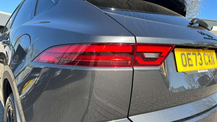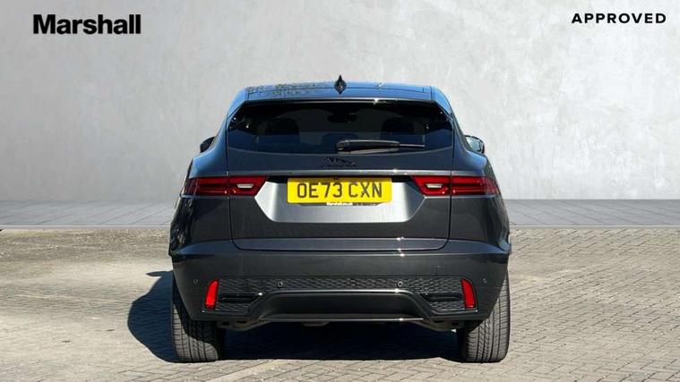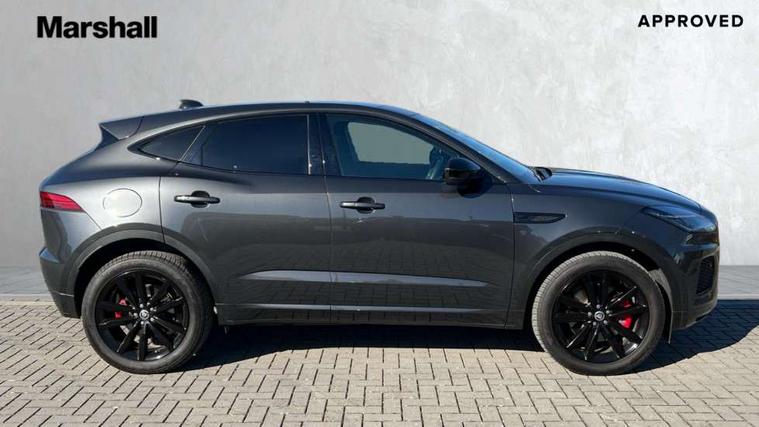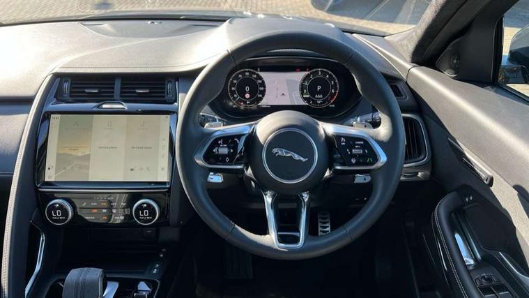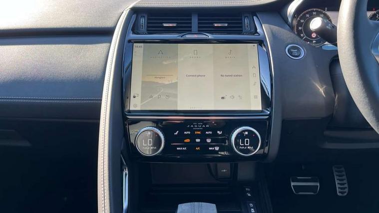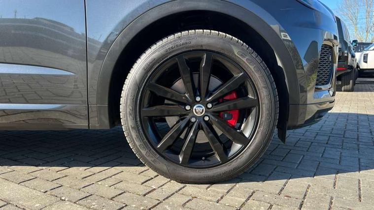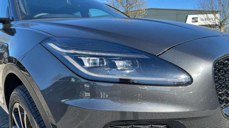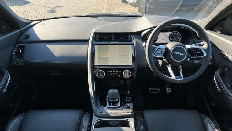 11.4" touchscreen with central ICP, Adaptive cruise control, Android Auto, Apple car play, Blind spot assist, Driver condition monitor, Eco driving style assistant, Electric power assisted steering, Emergency services call system, Front and rear parking aid, InControl remote, Interactive driver display, Jaguar drive control with adaptive surface response, Jaguar Toggle sport shift selector, Lane keep assist, Outside temperature gauge, Pivi pro connected infotainment system with smart settings and navigation pro, Push button start, Rear collision monitor, Rear traffic monitor, Speed proportional steering, Traffic sign recognition with adaptive speed limiter, Trip computer, Voice control system, Wireless device charging, 7 kW onboard charger, Configurable dynamics, Electric rear axle drive, Gasoline particulate filter, Home charging cable Mode 2, Large fuel tank, Passive suspension, Public charging cable Mode 3, Bluetooth connectivity including audio streaming, DAB digital audio broadcast, Dynamic volume control, 3 flash lane change indicators, Approach Illumination, Automatic headlights, Body colour door handles, Body colour front and rear lower bumper main moulding and lower side cladding, Body colour upper spoiler, Body coloured side sills, Centre high-mounted stop light, Dark satin grille tips, Electric front/rear windows with one touch/auto up/down, Electric heated/power fold memory door mirrors with approach lights and auto dimming driver side, Fixed panoramic glass sunroof, Heated washer jets, Heated windscreen, Jaguar script and leaper, Leaper for duo leather and embossed leaper for windsor leather, LED tail lights, LED third brake light, Metal load space scuff plates, Narvik black antenna pod and side pillar finisher, R Dynamic badge, R Dynamic body colour bumpers, Rain sensor windscreen wipers, Rear fog lights, Rear side wing doors, Rear wash wiper, Satin black grained front outer grille, low grill mesh and low bumper valence, side fender vent mesh and finisher, rear tow eye cover and grille mesh, Twin exhaust tailpipe, Variable front intermittent wipers, 16 way heated and cooled, electric adj driver memory front seats with 2 way manual headrests and heated rear seats with centre armrest, 3 rear head restraints, 3 seat bench in 2nd row, 40:20:40 rear seat fold, Bright metal pedals, Carpet mats, Centre console with armrest, Ebony suede cloth headlining, Enhanced ambient lighting, Hooks loadspace, ISOFIX on outer rear seats, Leather steering wheel, Loadspace cover, Loadspace light, Loadspace storage net, Luggage tie-downs in loadspace, Manual height/reach adjust steering wheel, Multifunction steering wheel, Overhead lighting console, Passive front head restraints, Power sockets, Premium cabin lighting, Rear air vents, Rear bench seats, Satin chrome gearshift paddles, Single front passenger seat, Sunvisors with illuminated vanity mirrors, Twin front cupholders, Two zone climate control, Windsor leather upholstery + sport seats, Online pack with data plan - E-Pace, 3x3 point rear seatbelts, ABS, All surface progress control (ASPC), Child locks on rear doors, Customer configurable autolock, DSC - Dynamic Stability Control, Electronic brake force distribution, Electronic parking brake, Emergency brake assist, Emergency braking, Front airbags with passenger seat occupant detector, Front and rear curtain airbags, Front and rear seatbelt reminder, Front passenger airbag deactivation, Front seatbelt pretensioners, Front side airbags, Height adjustable front seatbelts, Hill start assist, Low friction launch, Power child locks, Torque vectoring brake, Tyre pressure monitoring system, Intrusion sensor and alarm, Keyless entry, Locking wheel nuts, Remote central locking,
