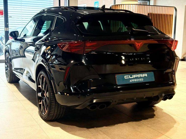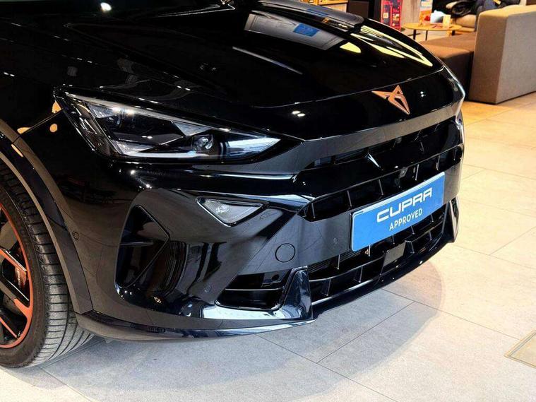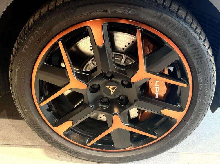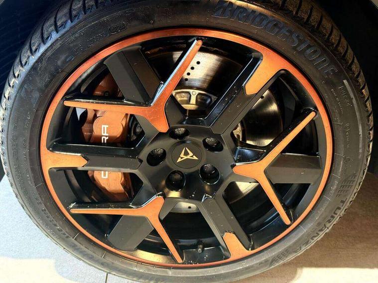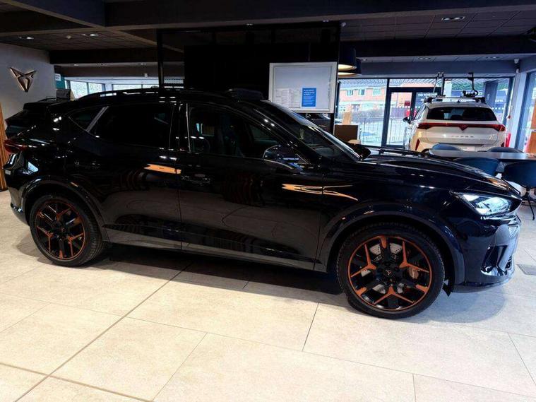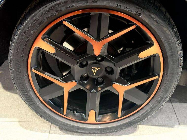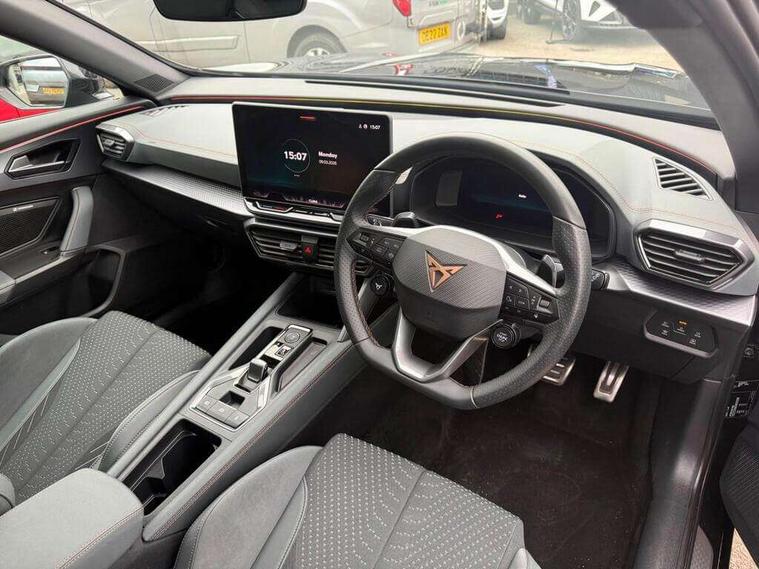 10.25" digital cockpit and configurable dashboard, Adaptive cruise control with follow-to-stop and speed limiter, Advanced driver alert system, Advanced lane assist with semi-automatic vehicle control in a medical emergency and traffic jam assist, Dynamic chassis control with driving profile selection (Comfort, Sport, CUPRA, Individual), Dynamic road sign display, Emergency steering support with turn assist, Forward collision warning with automatic braking, Full link phone integration, Intelligent park assist, RPM, trip computer, outside temp gauge, instrument light brightness, low fuel warning light, lights on reminder, gearshift indicator, Service interval indicator, Side and exit assist, Speed sensitive power steering, Start/stop system with regenerative braking, Top view camera, Virtual pedal and electric tailgate, Voice control system, Wired Android Auto, Wireless apple carplay, Wireless phone charger, Adaptive chassis control with continuous operation, CUPRA sport suspension, Electronic locking differential and dynamic traction support, 2 front and 2 rear USB type C sockets, Immersive by Sennheiser TM - 10 speakers, 1 central speaker, 1 subwoofer, Media system with navigation, 12.9" touchscreen display, voice control, DAB, steering wheel mounted controls, Auto dimming rear view mirror, Black roof spoiler, Body colour door handles, Body coloured bumpers, Dark grey wing mirror, Daytime running light with automatic headlight control and coming home feature, Door panel ambient lighting, Dynamic headlight range control, Electric front/rear windows, Electrically adjustable heated and folding door mirrors with memory function, Gloss black roof rails and window surrounds, High beam assist, LED 3rd brake light, LED front fog lamps with cornering function, LED Taillights with dynamic indicator, Matrix LED headlights with multifunction camera, Rain sensing wipers, Rear diffuser with twin exhaust pipe on each side, Rear fog lights, Rear side wing doors, Rear wash/wipe, Side skirts, Tinted rear windows, Welcome lights (within exterior mirror housing), 12V socket, 2 front and 2 rear reading lights, 3 seat bench in 2nd row, 60/40 split rear bench seat with armrest and mechanical seat release, Black headlining, Black interior roof lining, Cupra sports pedals, Dust/pollen filter, Electrically adjustable front seats with lumbar support and memory function, Front and rear head restraints, Front centre armrest, Heated front seats, Heated supersports multifunction leather steering wheel with satellite buttons and gear shift paddles, Height/reach adjust steering wheel, Illuminated aluminium doorsteps, Illuminated interior front door sills, Illuminated sunvisor with mirror, Isofix, Leather dashboard, door insert and side trim panel, LED smart wraparound lighting, PVC/Textile upholstery + cup bucket seats, Satellite steering wheel, Single front passenger seat, Three zone climate control with control panel in rear, Variable luggage/load compartment floor, 3 point seatbelts on all rear seats, ABS, Akebono brakes, Brake control system - ESC and brake booster, Child proof door locks, Driver and front passenger airbags with front passenger airbag de-activation, Driver and front passenger knee airbag, Electronic parking brake, Hill hold control, Performance brakes with front brembo calipers, Pre-crash front and rear seat belt tensioner, window closure and hazard lights, Public e-call, Seat belt reminder for front and rear seats, Side airbag for front and rear with curtain airbags, Tyre pressure monitoring system, Anti theft alarm system, KESSY Advanced - Keyless start, keyless entry with SAFELOCK, Locking wheel bolts, Copper and aluminium interior detailing, 19" Hailstorm forged machined R black and copper alloy wheels, Breakdown and tool kit,