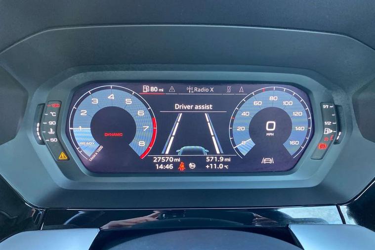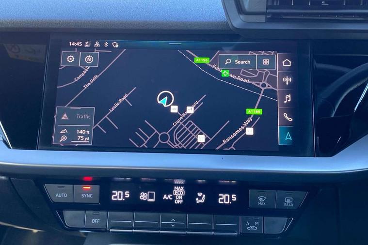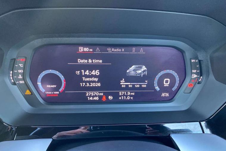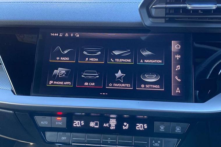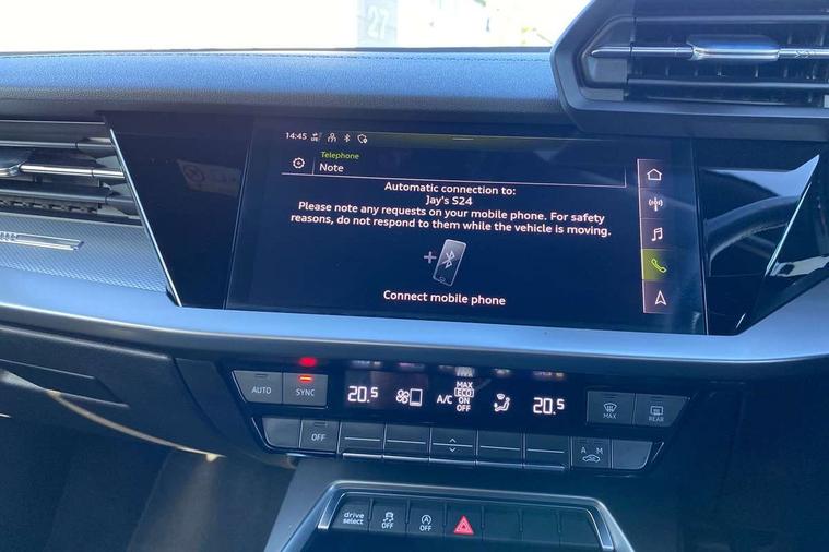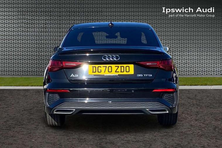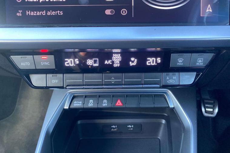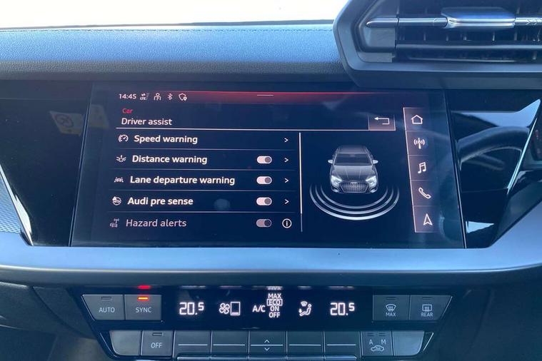 Audi connect emergency call and service, Audi drive select (Auto, Comfort, Dynamic, Efficiency and Individual), Audi smartphone interface, Audi Virtual Cockpit - 10.25" digital and colour instrument cluster, Automatic start/stop system with recuperation, Bluetooth interface, Collision avoidance assistant, Cruise control + speed limiter, Electromechanical power speed sensitive steering, Lane departure warning system, MMI Navigation Plus with high resolution 10.1" colour touch screen display, Rear parking sensors, Service indicator, Voice control system with natural language interaction, 1xUSB-A and 1xUSB-C connection, 6 passive loudspeakers, CD player, DAB Digital radio, Acoustic glass windscreen, Aluminium window trim, Auto dimming frameless rear view mirror, Body colour exterior mirrors, Electrically adjustable/heated/folding/auto dimming door mirrors with integrated LED indications + kerb view function for passenger side, Front electric windows, Illuminated door sills with aluminium inserts at the front with S logo, LED daytime running lights, Light and rain sensors, Model and engine designation badges at rear, Privacy glass - dark tinted rear window, rear door and side windows, Rear electric windows, S line bumpers, S roof spoiler, 12V socket and storage compartment in front centre console, 40/20/40 split folding rear seat bench with cupholder, Black cloth headlining, Dual zone electronic climate control, Front and rear centre armrest in leather, Front and rear headrests, Front/rear floor mats, Height and reach adjustable steering wheel, Interior lighting - glove compartment light and right hand side, Luggage compartment floor covering, Manual boot compartment lid, Manually adjustable front seats, Seat side bolsters, Stainless steel pedals and front footrest, Twin leather upholstery with front sports seats S embossed logo, Aluminium interior elements pack - A3, S line styling pack - A3 Saloon, 3x3 point rear seat belts, Driver and front passenger airbag with passenger airbag deactivation, Electronic Stabilisation Control (ESC) including ABS, ASR and EDL, First aid kit with warning triangle and 2 safety vests, Hill hold assist, Pre-sense front with pedestrian and cyclist detection, Seatbelt monitoring, Tyre pressure loss indicator, Anti theft alarm, Anti-theft wheel bolts, Electronically operated child lock, Immobiliser, Remote control central locking, Aluminium air vent surrounds, Aluminium trim elements, Dark spectrum aluminium inlays, accent surfaces in the dashboard and centre console in platinum grey silk effect paint finish,