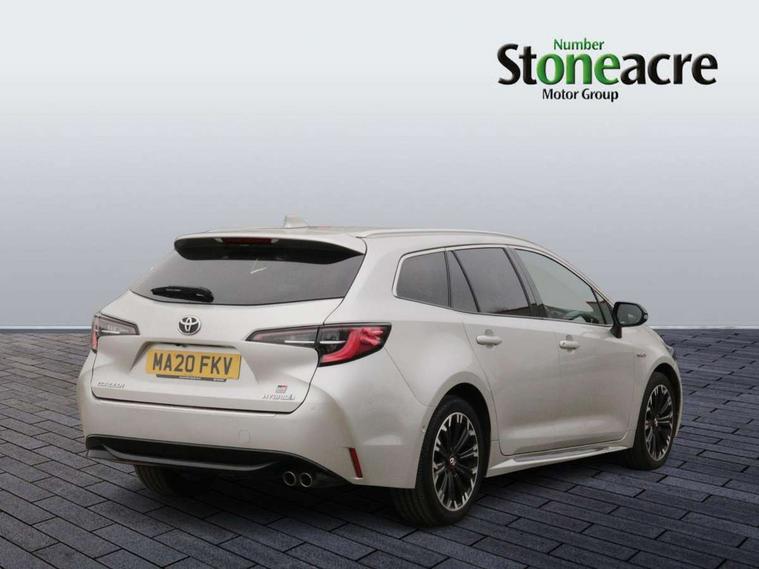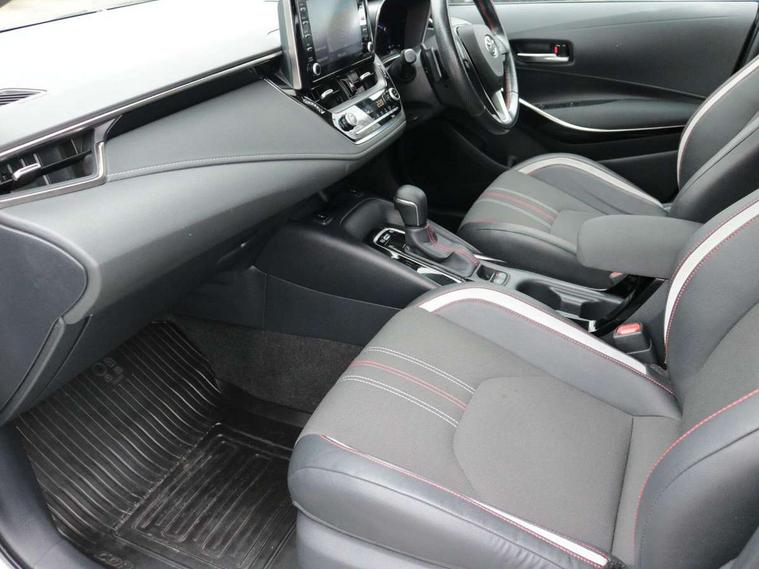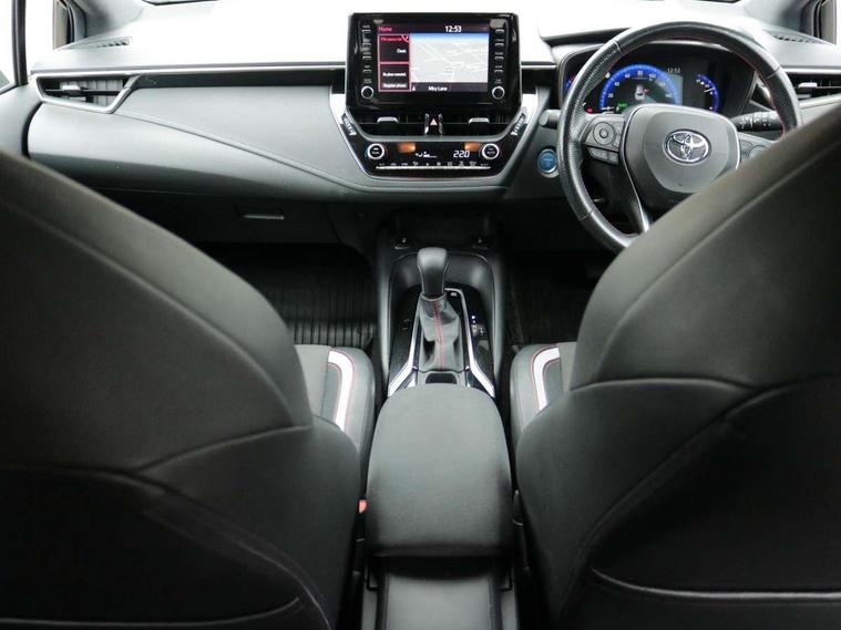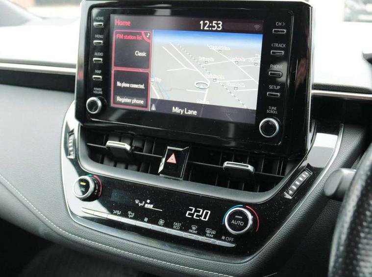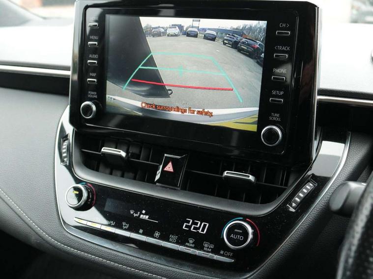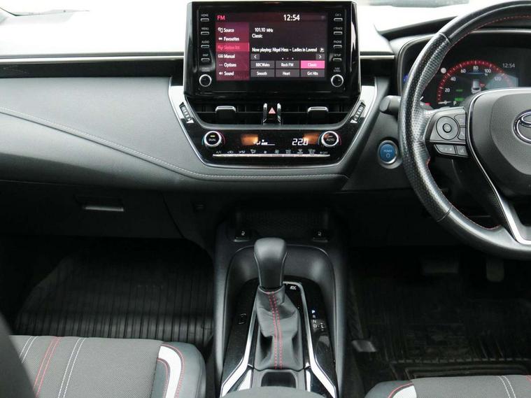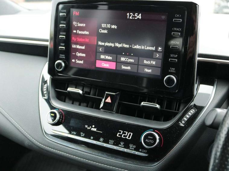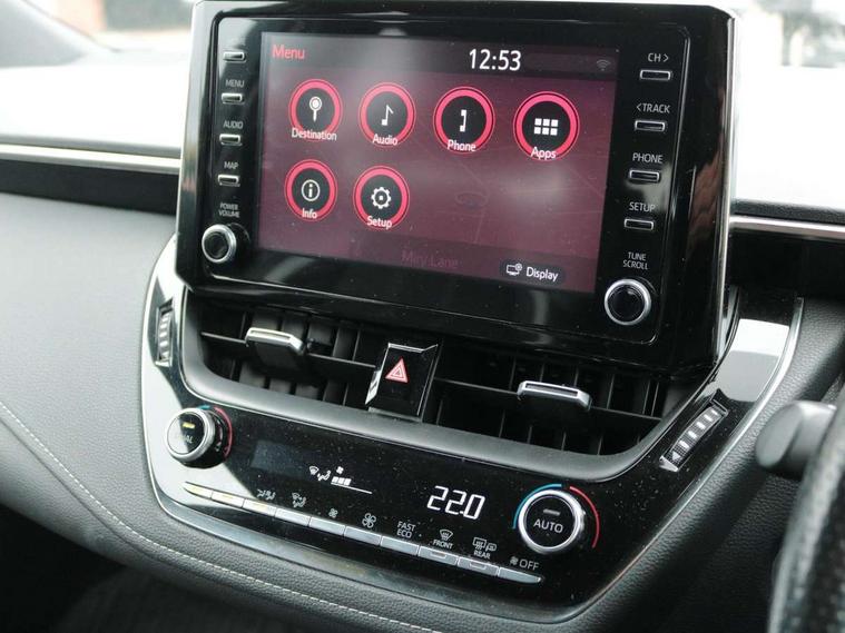 3D Colour multi information display, Bluetooth telephone connectivity, E-call, Electrically assisted power steering, Head up Display, Intelligent park assist, Push button start, Reversing camera, Smartphone integration with Apple CarPlay and Android auto, Speed limiter, Voice activation, Vehicle Stability Control (VSC), 2 ring combimeters with 7" colour TFT screen, 6 speakers, 8" multimedia and back monitor, AM/FM radio, DAB Digital radio, Toyota touch 2 with go navigation system, USB and Aux in connectors + 12V front outlet, Anti-jam protection on power windows, Auto dimming inside rear view mirror, Auto up and down function on all power windows, Automatic folding mirrors, Automatic headlights, Automatic wipers, Body coloured bumpers, LED daytime running lights, LED front fog lights, LED Headlights, LED rear combi lights with LED lightguide, Power adjustable heated door mirrors, Power front windows, Power rear windows, Privacy glass, Rain sensing wipers, Rear window wiper, Reverse tilting door mirrors, Shark fin antenna, 12v power outlet - luggage side, 3 rear headrests, 3 spoke leather steering wheel + gear knob, Alcantara/partial leather upholstery, Clean air filter, Dual zone automatic air conditioning with ECO mode switch, Front head restraints, Heated seats, ISOFIX seat fixing (2 fixings on rear outer seats), Pollen filter, Power lumbar support, Sports seats, Steering wheel switches, Tilt/telescopic steering column, Whiplash Injury Lessening (WIL) feature (active headrest) for seats, Parking pack - Corolla, Toyota safety sense 2 pack - Corolla, 3x3 point rear seatbelts, Adjustable front driver seat belt extender, Anti lock braking system + Electronic brake force distribution, Brake assist function, Electronic parking brake, Front passenger airbag on/off switch, Front seatbelt reminder, HAC - Hill start assist control, Rear seat belt reminder, Seatbelt pretensioners and force limiters, Supplemental restraint system (SRS) 7 airbags - dual driver, dual side curtain, side impact and driver knee airbags, Traction control, Tyre pressure warning system, Alarm/immobiliser, Remote central locking + deadlocks, Tyre repair kit,