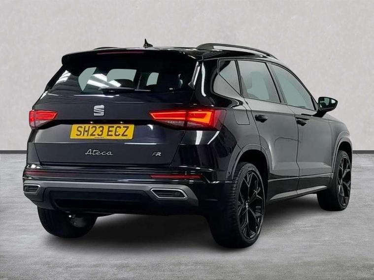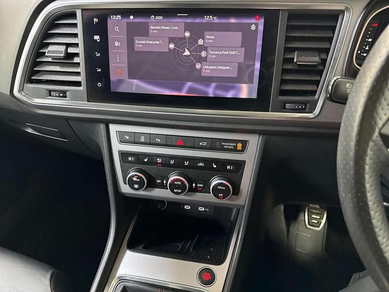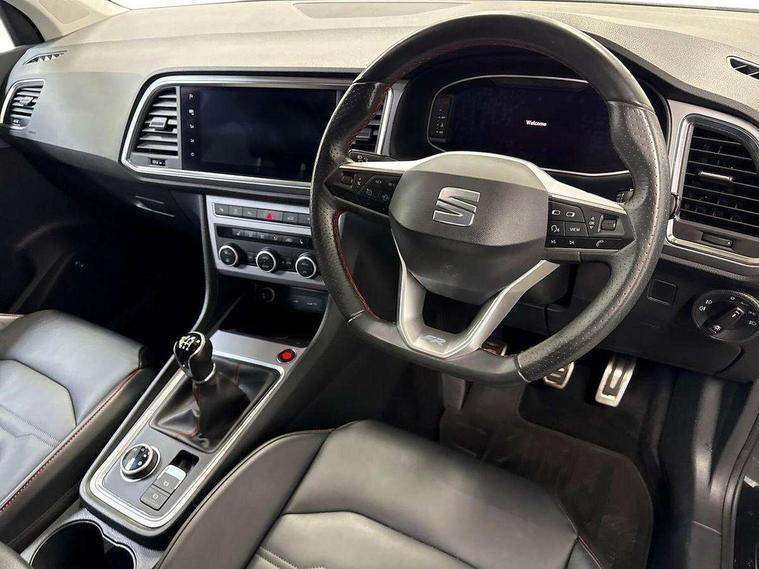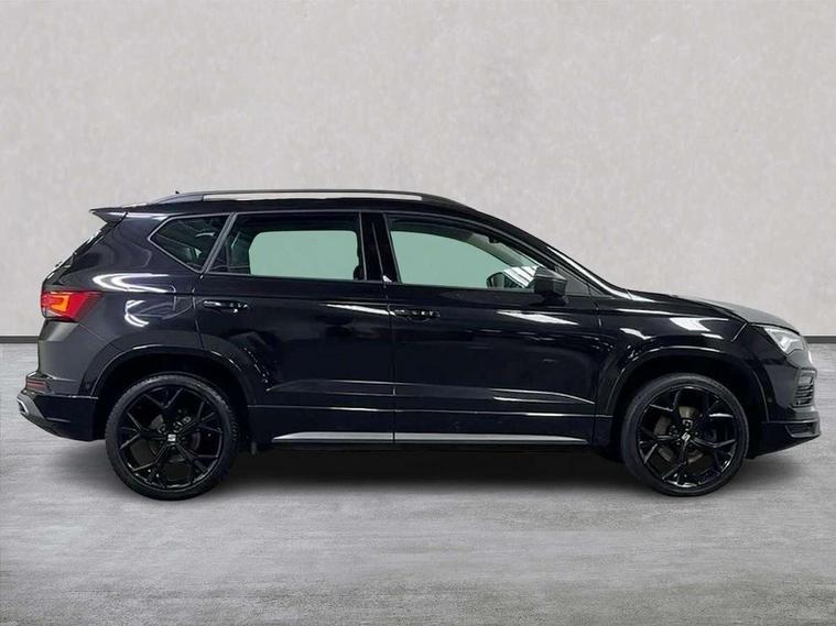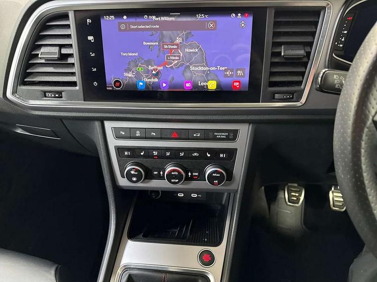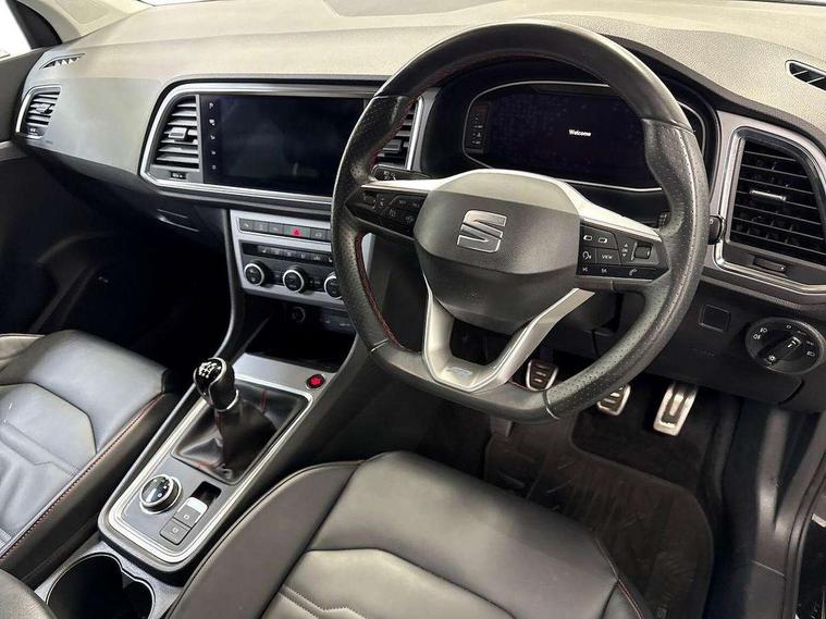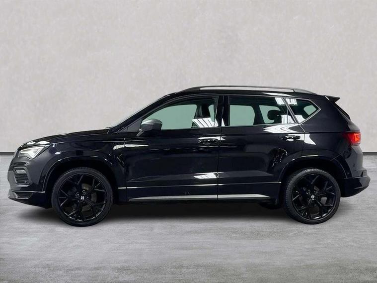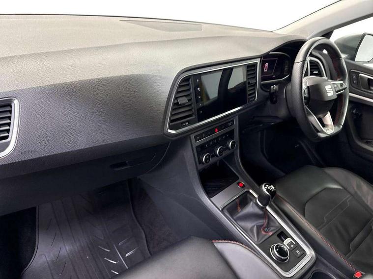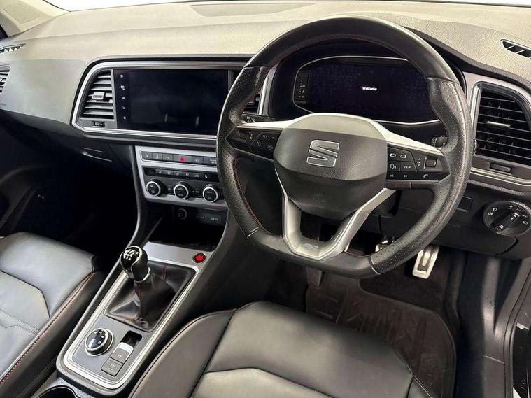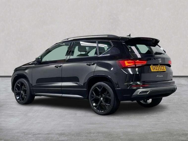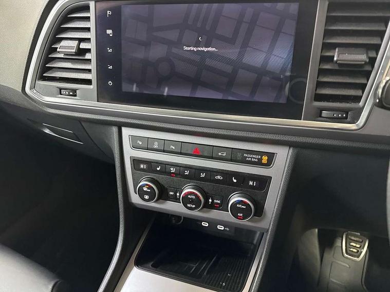 10" Digital cockpit, Cruise control system with speed limiter, E-call, Electric tailgate with virtual pedal, Outside temperature gauge, Progressive power assisted steering, Rear view camera, SEAT drive profile with driving experience button - Normal, Sport, Eco and Individual mode, steering and throttle response, Self parking functionality (includes front and rear parking sensors), Start/stop system, Trip computer, Wireless full link smartphone integration, Wireless phone charger, Beats audio system, Steering wheel mounted audio/phone controls, Black roof rails, Black side window trim, Body colour bumpers, Body coloured wheel arch surrounds, Chrome front grille frame, Dark tinted rear windows, Daytime running lights, Door mirrors with welcome light silhouette, Dynamic headlight range control with self adjusting whilst driving, Electric adjustable/heated/folding door mirrors, Front and rear electric windows, Full LED headlamps with lens and LED front fog lamps with cornering function, Illuminated aluminium front door sill, LED rear tail lights with dynamic indicators, Rear exhaust tailpipe, Rear fog lights, Rear side wing doors, Rear wash/wipe, Roof spoiler, Third brake light, Variable front intermittent wipers, 12V socket in front, 3 seat bench in 2nd row, 60/40 split folding rear seat, Aluminium pedals, Driver seat memory function, Dual zone climate control, Electric adjustable driver seat with lumbar adjustment, Front and rear head restraints, Front centre armrest, Front seat back storage pockets, Heated front seats, Height adjustable passenger seats with lumbar adjustment, ISOFIX points in outer rear seats with top tether anchorage points, Leather sports steering wheel and gear knob, Leather upholstery with front comfort seats, Multicoloured ambient lighting with LED interior illumination, Rear armrest and easy back seat release mechanism from boot, Single front passenger seat, Storage compartment in roof console for sunglass, Convenience pack - Ateca, Interior lighting pack - Ateca, Navigation system pack with DAB - Ateca, 3x3 point rear seatbelts, ABS, Traction control system (TCS), Electronic stability control (ESC) and Electronic differential lock system (XDS), Airbags - Driver and front passenger airbag with deactivation, front side, two curtain and driver's knee airbags, Electric parking brake with auto hold function, Front and rear seatbelt reminder, Front assist with autonomous emergency braking, Hill hold control, Manual rear child locks, Single tone horn, Tiredness recognition system, Tyre pressure monitoring system, Alarm, Keyless entry, Locking wheel bolts, Remote central locking, Chrome interior detailing, 19" Exclusive alloy wheels 36/10 in glossy black, Emergency spare wheel,