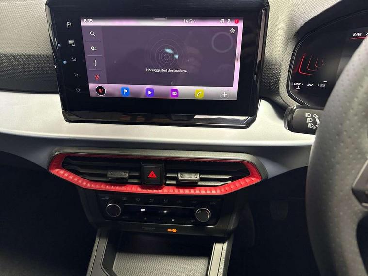 'Lights On' Reminder warning buzzer, 8" Digital cockpit, 9.2" touchscreen navigation system with type C USB socket, Voice control and DAB/AM/FM radio, Auto start and stop system, Bluetooth audio streaming with handsfree system, Digital clock, E-call, Full link smartphone integration with mirror link, wireless apple carplay, Google android auto + USB Type C cable for apple and android devices, Lane assist, Low fuel warning light, Outside temperature gauge, Power Steering, Rear parking sensor, Seat connect plus with safety, service, remote and online, SEAT drive profiles and ECO function, SEAT logo boot release, Speed limiter, Traffic sign recognition, Trip computer, Sports suspension, Auxiliary input socket, Radio/MP3 player, SD card slot, Steering wheel mounted controls, Anti theft roof antenna, Auto dimming rear view mirror, Automatic rain sensing wipers, Black door mirror caps, Body colour bumpers, Body colour door handles, Brilliant black window surrounds, Dark tinted rear windows, Electric adjustable/heated/folding door mirrors, Electric front windows, Electric headlight adjustment, Electric rear windows, Front/rear fog lights, FULL LED automatic headlights with dynamic headlight range control, coming and leaving home, LED daytime running lights, LED 3rd brake light, LED tail lights, Rear roof spoiler with FR twin exhausts, Rear side wing doors, Rear wiper, 3 seat bench in 2nd row, 60/40 split folding rear seat, Ambient interior lighting, Chrome detailing and black headlining, Cloth upholstery, Dual zone climate control with combination filter, Front courtesy lights, Front cupholders x 2, Front reading lights, Gear shift indicator, Glovebox, Height adjustable front and rear headrests (five), Height adjustable front seats, Height/reach adjust steering wheel, Illuminated air vent surrounds, Illuminated boot, Instrument lighting with brightness control, Isofix, Leather multifunction flat bottomed sports steering wheel, Passenger sunvisor, Single front passenger seat, Sports seats, Sunvisors with mirror and driver side card holder, Safety and driving pack (S) - Ibiza, 3 point seatbelts on all 3 rear seats, ABS, Active front headrests, Child locks on rear doors, Electronic stability control, Energy recovery system, Front driver and passenger side airbags with curtain airbag and front passenger airbag deactivation, Hill hold control, Multi-Collision braking, Seat belt reminder for front and rear seats, Tiredness recognition system, Tyre pressure monitoring system, Locking wheel bolts, Perimeter alarm and interior monitoring with backup horn and tow away protection, Remote central locking + deadlocks, 17" Alloy wheels in Brilliant silver,