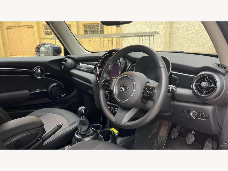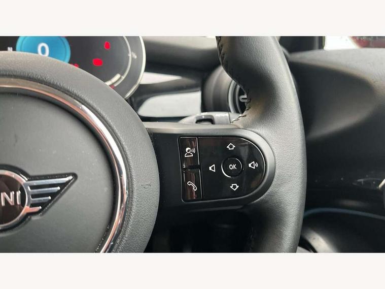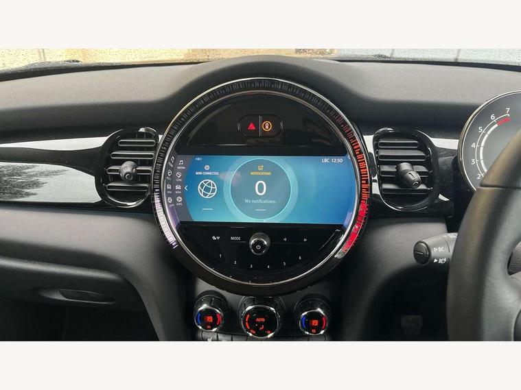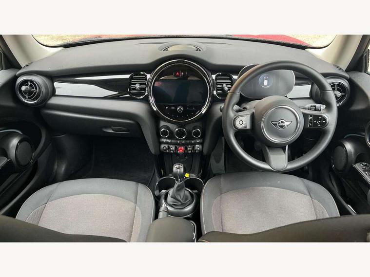 Apple CarPlay, Automatic start/stop function with brake energy recuperation, Compatible mobile phone bluetooth with audio streaming, Digital dashboard display, Electro-mechanical speed dependant steering assistance, Flexible car sharing preparation, Instrument cluster, Mini E-call, MINI TeleServices, On board computer, Service interval indicator, Double Vanos system, Fully variable valve control, High precision injection, Performance Control, 4 speakers in front door trims and underneath front seats, 8.8" touchscreen with LED ring, FM tuner and DAB digital radio, 3rd brake light, Automatic headlight activation switch, Body colour fuel filler cap, Chrome border high gloss black slats radiator grille, Dynamic brake lights, Electric front windows, Exhaust tailpipe on left with chrome finisher, Heated rear window, Heated windscreen washer jets, LED headlight with closed ring and daytime driving lights, Metal door sill strips with MINI imprint, Model logo Cooper on right of tailgate, Rain sensor window wipers, Rear fog lights, Rear LED lights with union jack design, Rear window wiper, Side scuttle panel with integrated indicator, Sun/heat protection glass, White indicator lenses, 12V Accessory socket in centre console, 2 seat bench in 2nd row, 4 lashing eyes in luggage compartment, 60/40 split folding rear seat, Ambient lighting, Chrome interior highlights, Cupholders, Front and rear head restraints, Front and rear isofix with front passenger airbag deactivation, Front floor mats in velour, Glove compartment, Height and length steering column adjustment, Interior lighting with 12 different colours across the dashboard, underneath door bezel with illuminated laser-engraved design on central display, Leatherette gearshift lever and handbrake gaiters, LED reading lights, vanity mirror lights, front foot well light and spotlight on front seats, Mechanical seat adjustment - forward/back & backrest for front seats and driver seat height adjust, Multifunction steering wheel, Passenger seat height adjuster, Satellite grey headlining including grab handles and clothes hooks, Single front passenger seat, Sport leather steering wheel with speed limiter and audio/communication controls, Storage compartments in doors, Sunvisors with vanity mirrors, Driving assistant pack - Mini Hatchback, Premium pack - Hatchback, 3 point seatbelts on all four seats, 6 Airbags - front, side, head and seat belt tensioners, Anti-lock braking system (ABS), DSC - Dynamic Stability Control, Front and rear disc brakes, Single tone fanfare horn, Tyre pressure monitoring system, Alarm system with tilt sensor, monitoring doors, bonnet interior and tailgate, Electronic vehicle immobiliser, Start/stop toggle with keyless go, Piano black interior trim, Tool kit, Tyre repair kit,