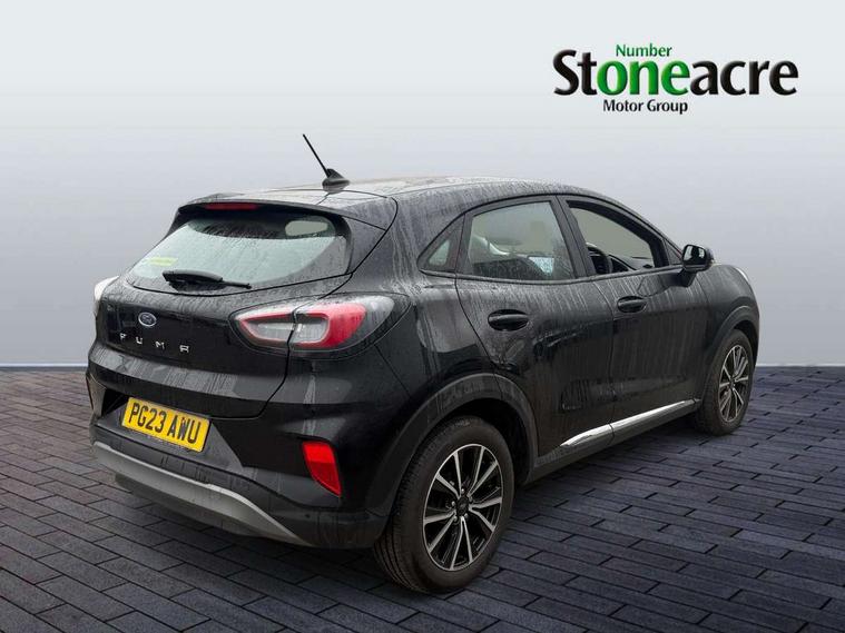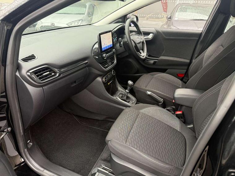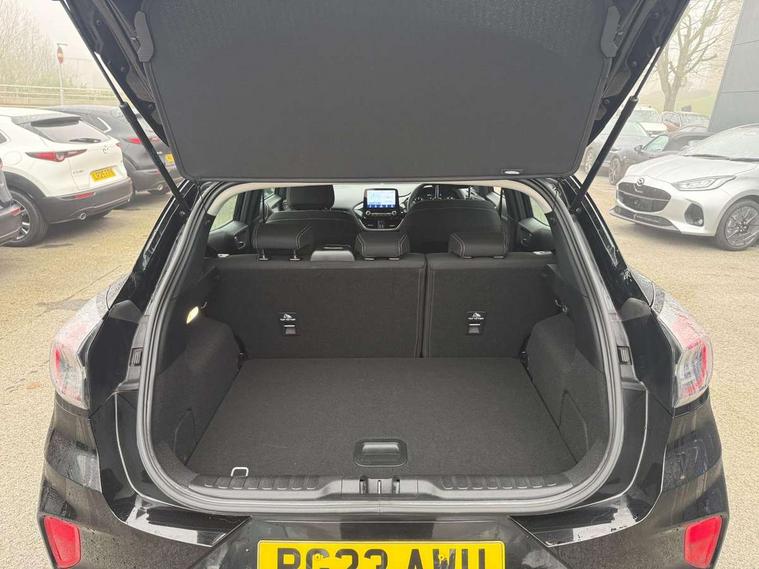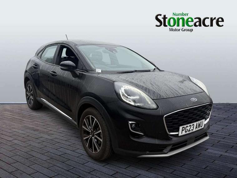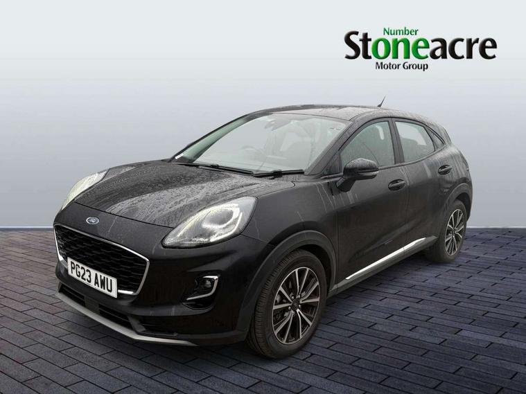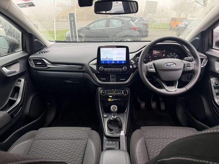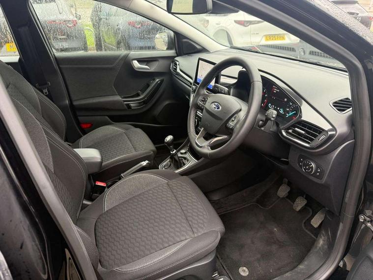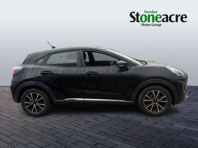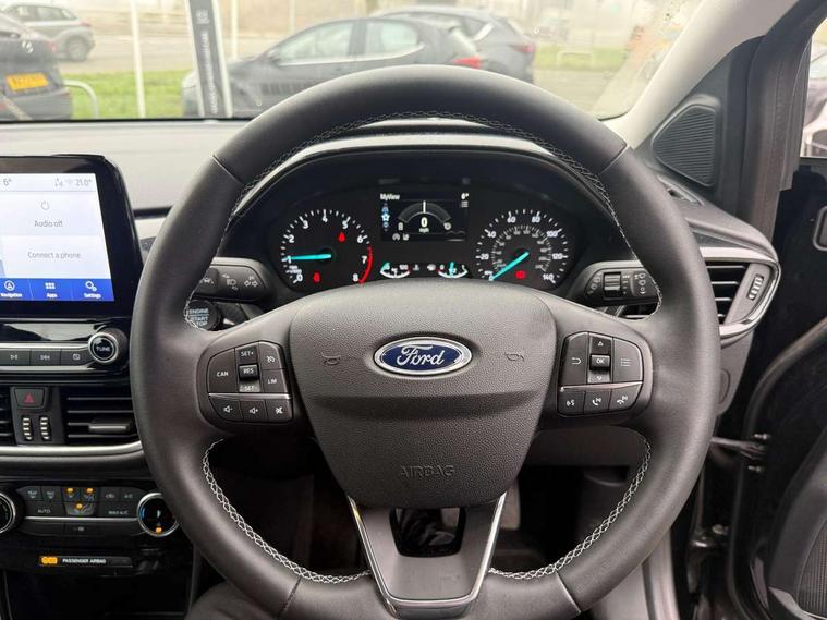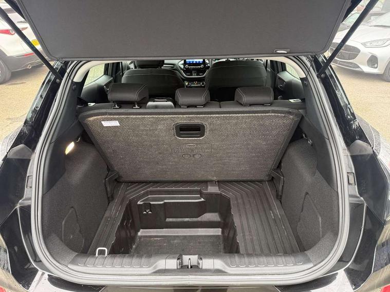 Driver impairment monitor, Emergency call service, Ford easy fuel, Lane keeping aid with lane departure warning, Power assist steering, Power start button, Rear parking sensor, Selectable drive modes(Normal, Eco, Sport, Slippery and Trail), Speed sign recognition, Standard suspension, Automatic headlights with auto high beam, Automatic rain sensing wipers, Body colour rear spoiler, LED rear lamps, Power foldable heated door mirrors with puddle lamps, Projector headlamps with LED day time running lights and front fog lamps, Quickclear heated windscreen, Rear side wing doors, Rear wiper, Third brake light, 3 seat bench in 2nd row, Centre console with armrest and stowage, Electronic automatic temperature control (EATC), Ford megabox extended bootspace, Front and rear head restraints, Front floor mats, Manual 2 way passenger seat adjustment, Manual 4 way driver seat adjust with lumbar adjustment, Sensico leather steering wheel/gear knob/handbrake, Single front passenger seat, Titanium cloth upholstery, Ford SYNC 3 navigation pack - Puma, 3 rear seatbelts, Child safety lock, Electronic stability control (ESC) and hill start assist, Pedestrian/cyclist detection & post-collision braking, Pre collision assist system, Tyre pressure monitoring system (TPMS), Thatcham alarm, 17" 10 spoke absolute black machined finish alloy wheel,
