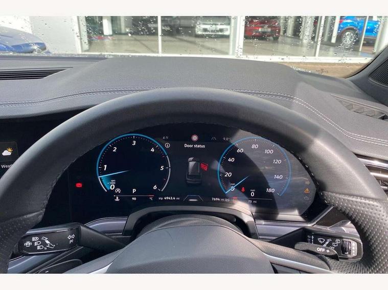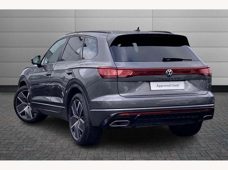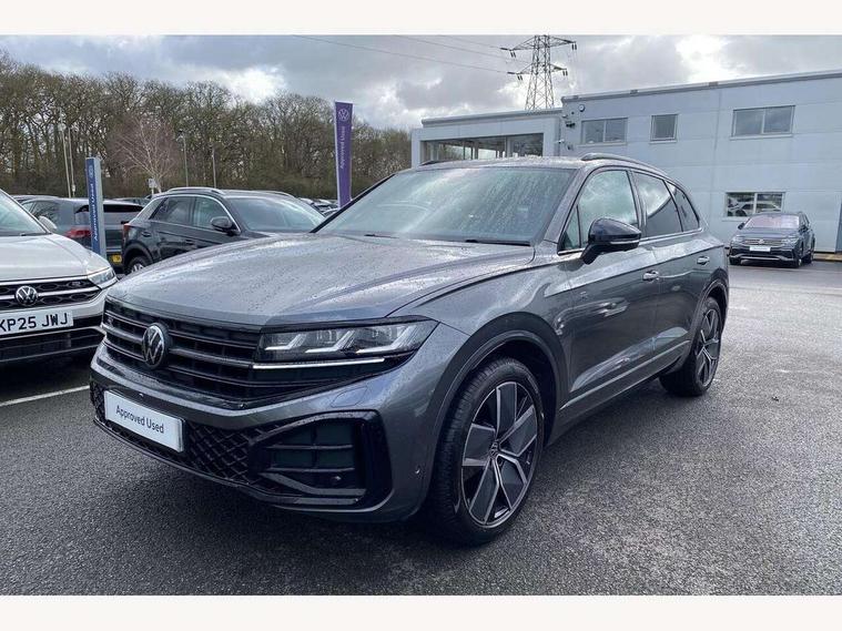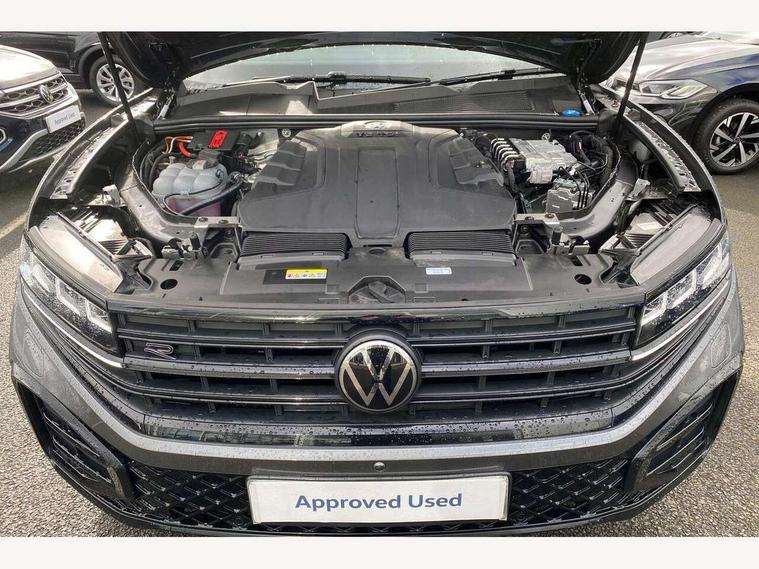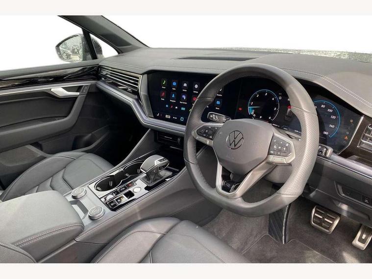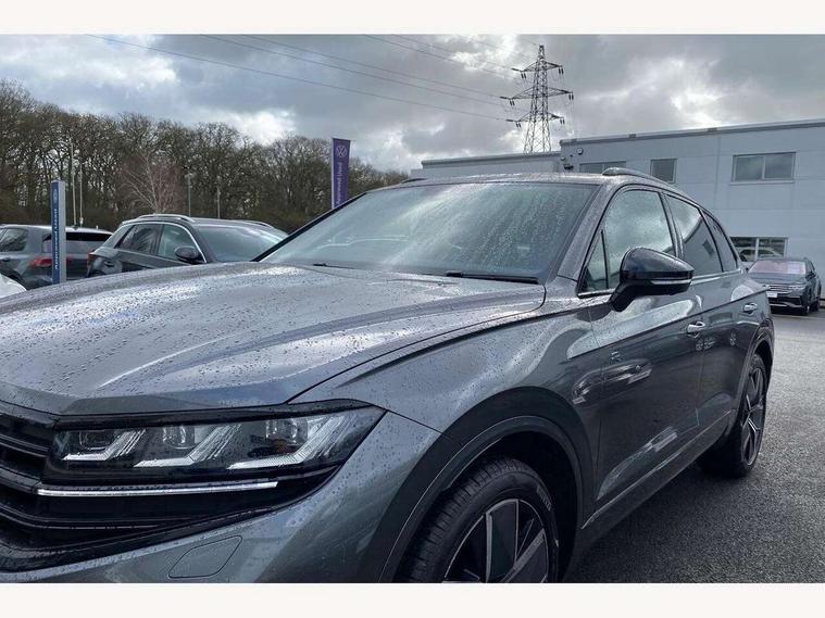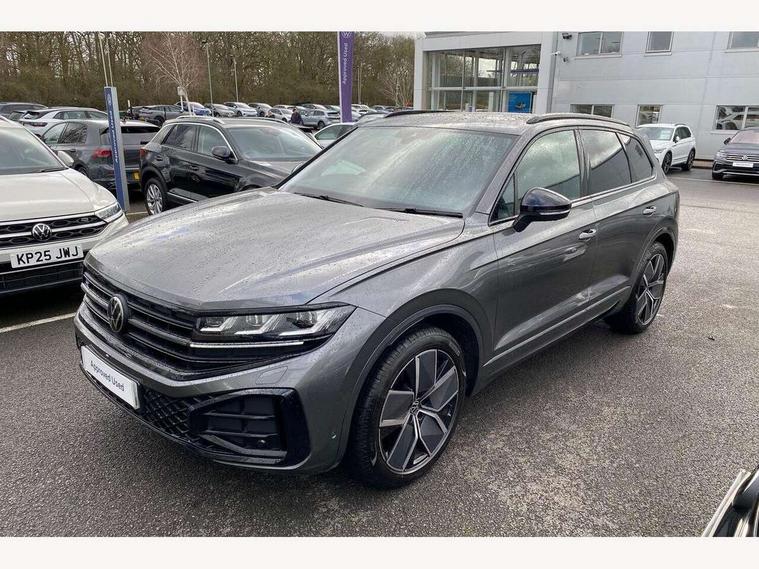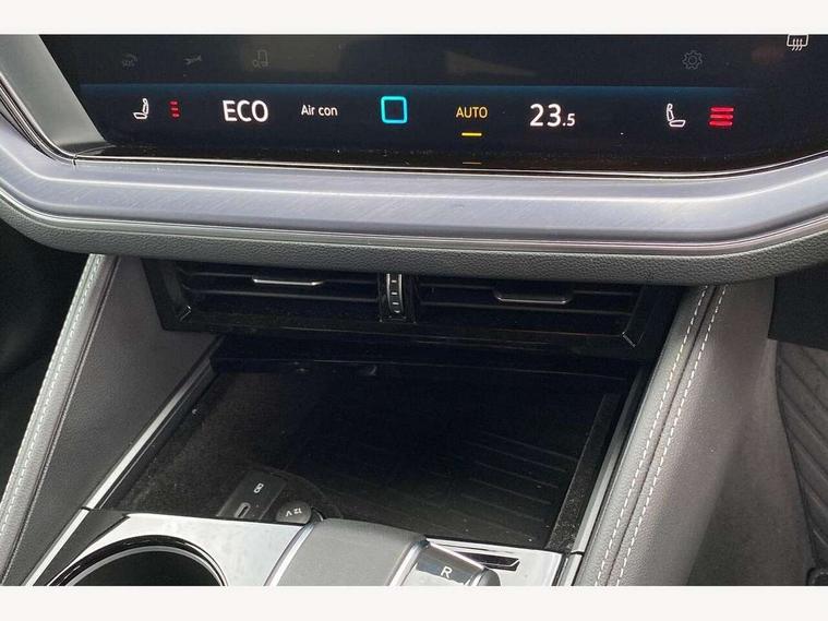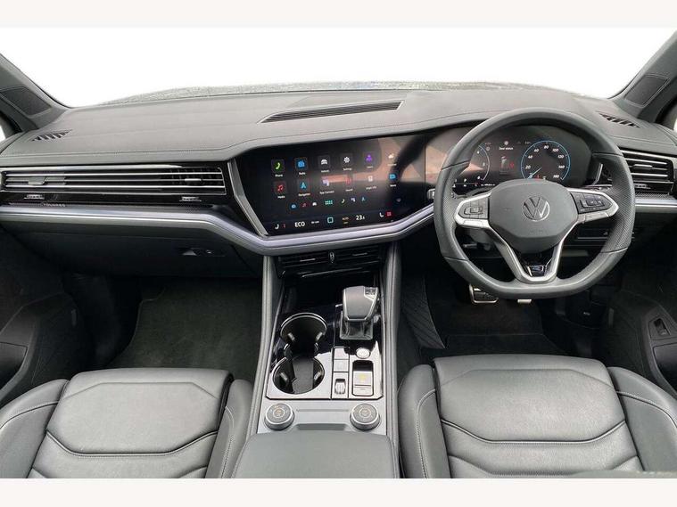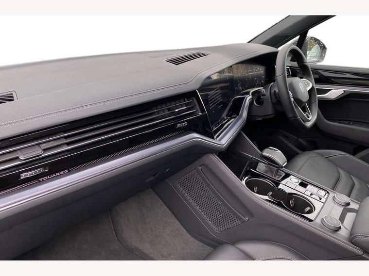 15" Screen Top infotainment system Premium (MIB3), Adaptive cruise control, Advanced driver attention and drowsiness monitor, Driver profile selection, Dynamic road sign display, E-Sim card for online connectivity, eCall emergency system, Innovision cockpit, Intelligent park assist, Mobile phone interface with inductive charging, Multi-colour Active Info display, Park Assist - Sensor controlled steering aid to assist parallel or bay parking, PAS, Warning signal and warning light for front and rear seatbelts not fastened, Wireless app connect, Adaptive chassis control, DAB Digital radio, Diversity antenna for AM/ FM reception, We Connect and We Connect Plus functionality, Automatic coming/leaving home lighting function, Automatic headlights, Black door mirrors, Black style comfort bumpers, Dynamic headlight range control with dynamic cornering light, Electric front tilt/slide panoramic sunroof and fixed rear sunroof, Electrically power adjustable, heated, folding, auto dimming, front passenger exterior door mirror lowering function, External USB type C socket and charging sockets, Gloss black roof rails, HD LED Matrix beam plus digital headlight projection with variable light distribution, Headlight washers, Highway light, LED 3rd brake light, LED daytime running lights, LED rear combination lamp with variable lighting functions and special styling, Poor weather light, Rain sensor, Rear exhaust tailpipe, Rear fog light with back up light on both sides, Rear light bar and illuminated logo, Rear side wing doors, Rear wiper, Stainless steel door sill protection, 12V socket in centre console, 3 rear headrests, 3 seat bench in 2nd row, 4 zone climate control, Airbag label on sun visor and B-pillar, Brushed stainless steel pedals, Double sun visors with illuminated vanity mirrors, Front + rear carpet mats, Front centre armrest, Leather wrapped multifunction sports steering wheel, heated, with touch control and shift paddles, Mechanical rear seat release, Power adjustable lumbar support in front, Power seats in front, right side with memory features and seat cushion depth adjustment, Rear seat backrest and split folding with center armrest, Single front passenger seat, Memory pack plus - Touareg, 3 point seatbelts, outer rear with ECE lable, ABS, Child locks on rear doors, Curtain airbags, Driver and front passenger safety-optimised head restraints, Driver/Front Passenger airbags, Extended pedestrian protection measures, Front assist, Front seat side impact airbags, Generative braking with start and stop system, Height adjustable 3 point front seatbelts with pre tensioners, Passenger airbag deactivate switch, Three 3 point rear seatbelts, Two tone horn, Warning triangle and first aid kit, Alarm system with interior protection, Easy open and close sensor controlled luggage compartment opening and closing with remote unlocking, Keyless Access Keyless locking and starting system with SAFELOCK, Aluminium decorative inserts, Black decorative trims, Gloss black decorative inserts in centre console, Tool kit,