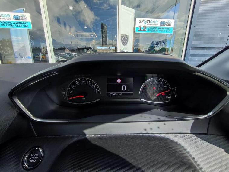 Bluetooth telephone facility, Driver attention warning, Emergency call service, Exterior temperature indicator with ice warning, Lane keep assist, Mirror screen with mirror link, apple carplay and android auto, Multi function trip computer, PEUGEOT i-Cockpit with 3.5" instrument panel display, PEUGEOT i-Cockpit with compact steering wheel, Programmable cruise control and speed limiter, Push button start, Rear parking sensors, Smart phone docking station, Speed limit recognition and recommendation, Start/stop system, 1x USB socket in front, 6 speakers radio with mp3 compatible, DAB Digital radio, Voice recognition for radio, navigation and telephony features, 2 X Rear number plate lights, Automatic hazard light activation upon heavy brake application, Automatic lights, Automatic windscreen wipers, Body coloured exterior door handles, Dark tinted rear side and tailgate windows, Diamond black rear spoiler (roof), Eco LED headlights, Electric front windows + one touch + anti-pinch, Electric rear windows with one touch/anti-pinch, Electrically adjustable, heated and power folding door mirrors, Electrochrome rear view mirror, Follow me home headlights, Gloss black rear cluster connecting strip, Headlights left on audible warning, LED daytime running lights with distinctive tooth design, LED third brake light, Model designation badges front and rear, Nera black door mirror shells, Radiator grille chrome chequered, Rear reversing lights, Rear side wing doors, Rear windscreen wiper triggered automatically in reverse gear, Roof mounted aerial, Roof spoiler, Single exhaust tailpipe, Tailgate with heated rear windscreen and wiper blade, Variable front intermittent wipers, 1/3 to 2/3 split folding rear seats, 12V socket, 3 seat bench in 2nd row, Automatic air conditioning, Driver and front passenger comfort seats, Driver and front passenger seat manual adjustment in longitudinal and back rest angle, Driver seat mechanical height adjustment, Electric power steering with reach and rake adjustable steering column, Front interior light with 2 reading spotlights, Gear shift indicator, Leather steering wheel, Low centre console, Map pockets on the backs of the front seats, Piano keys gloss black plated toggle switches to access main functions of the vehicle, Rear centre headrest, Roof lining - light grey, Seatbelt unfastened on the move audible and visual alert for front and rear seats, Single front passenger seat, Tri material cloth upholstery, 2x Isofix child seat fitting on outer rear seats, 3 rear 3 point seatbelts, ABS (Anti-lock Braking System) with EBD (Electronic Brakeforce Distribution) and EBA (Emergency Braking Assistance), Adaptive driver and front passenger airbags with passenger airbag deactivation function, Child locking functionality on rear doors, Driver/front passenger side airbags, ESP with Hill Assist, Front and rear curtain airbags, Front and rear disc brakes, Front optimised safety headrests and 3 x rear retractable headrests with height adjustable, Front three point retractable seatbelts with force limiters, Manual parking brake, Pedestrians active safety brake, Tyre pressure sensor, Acoustic vehicle alert system (AVAS), Automatic door locking when moving off, Deadlock, Electronic code immobiliser, Remote central locking, Thatcham cat. 1 alarm with anti lift sensor, Carbon effect Dashboard, front and rear door panel finish, 16" Soho diamond cut alloy wheels,