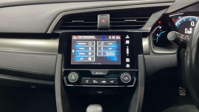7" touch screen, Adaptive cruise control, Adaptive motion for electric power steering, Apple car play/Android Auto, Blue dashboard illumination, Bluetooth hands free telephone connection, Easy fuel capless refuelling system, Economy mode, Electric power steering wheel with variable gear ratio steering, Emergency stop signalling system, Forward collision warning, Front and rear parking sensors, Honda CONNECT with GARMN Navigation + 7" touchscreen, AM/FM, internet radio, aha app integration and internet browsing, Idle stop, Intelligent speed limiter, Lane departure warning system, Lane keep assist, Low speed following, Multi-information display, Rear parking camera, Road departure mitigation, Traffic sign recognition, Vehicle stability assist, 'Shark fin' mobile antenna, 180w Power audio system, 2x USB and HDMI, 8 Speakers, Auxiliary socket for external MP3 player, Digital Audio Broadcast (DAB) Tuner, Steering wheel mounted audio controls, Automatic coming/leaving home lighting function, Automatic headlights with dusk sensor, Automatic rain sensing wipers, Black grille, Body colour door handles, Body coloured bumpers, Chrome window surround, Electric adjustable heated door mirrors, Electric front/rear windows/one touch operation, Electrically folding door mirrors, Fuel filler cap, Halogen front fog lights, Headlight washers, High beam assist, LED daytime running lights, LED Headlights, LED rear lights, Power foldback door mirrors, Privacy glass, Rear spoiler, Rear wiper, Single exhaust tailpipe, 4 Cargo net hook, 60/40 split folding rear seat, Alloy pedals, Ambient light in roof, Blue meter illumination, Centre console storage and sliding armrest, Cloth upholstery, Driver and front passenger seat electric lumbar adjustment, Driver's seat height adjustment, Dual climate control air conditioning system, Front accessory power socket, Front map lights, Front/rear courtesy lights, Gear shift indicator, Glovebox light, Isofix points, Isofix system on outer rear seats, Leather steering wheel, Luggage floor box, Paddle shift controls, Passenger seat back pocket, Rear air vents, Rear armrest with cupholder, Sunvisors with illuminated vanity mirrors, Three height adjustable rear head restraints, Tilt/telescopic adjustable steering wheel, Tonneau cover, Trunk light, 5 three point seatbelts, ABS+EBD+Brake assist, Airbags - driver and front passenger, Anti-whiplash front headrests, Collision mitigation braking system, Deflation detection system, Driver SRS airbag (single stage inflation), Electronic parking brake with auto hold, Front and rear curtain airbags, Front and rear seat belt with emergency locking retractor, Front and rear seat belts with emergency locking retractor (ELR), Front seatbelt pretensioners, Front side airbags, Hill start assist, Low speed safety system, Passenger airbag deactivate switch, Tyre pressure warning, Immobiliser, Mirrors and windows key fob, Remote central locking with 2 jack knife keys, Security alarm, Selectable door unlock, Black instrument panel, 17" Grey alloy wheels, Tyre repair kit,