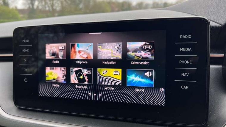 Amundsen satellite navigation with 9.2" glass colour touchscreen with virtual cockpit, web radio, Android Auto, Bluetooth system, Colour multifunction trip computer, eCall emergency system, PAS, Rain and light assist with auto dimming rear view mirror, Rear view camera, Speed limiter, Tailgate, Traffic sign recognition, Virtual cockpit, Voice control system, Wireless SmartLink for Apple Car Play, 2 USB - C ports, 8 loudspeakers, DAB Digital radio, 3rd brake light, Automatic headlamp activation with Coming home and Leaving home feature, Body colour door mirrors and handles, Chrome grille surround, Dimming rear view mirror with black frame, Electric folding door mirrors, Electrically adjustable and heated door mirrors, Front and rear electric windows, Front fog lights with cornering function, LED rear tail lights with dynamic indicators, Privacy glass, Rear side wing doors, Rear wiper, Tinted windows, 12V Accessory socket in centre console, 3 seat bench in 2nd row, Chrome inner door handles, Chrome on gear and handbrake lever, Chrome strip on the dash and door panel, Dual zone climate control, Front head restraints, Glasses storage in roof liner, Instrument cluster with chrome painted decor ring, ISOFIX for rear passenger seat, Leather gearknob and handbrake lever, Manual lumbar support for front seats, Net in centre console, Reading lights for driver and front passenger, Single front passenger seat, Sun visor with make up mirror for front passenger, Textile floor mats, Third rear headrest, Umbrella, 3x3 point rear seatbelts, Curtain airbags, Emergency call and proactive services, Front head and side airbags, Hill hold control, Manual rear child locks, One tone horn, Passenger airbag switch off function, Seat belt reminder for all seats, Alarm, Anti-theft wheel bolts, Keyless entry with start/stop button, Remote central locking with 2 remote folding keys, SAFE function for remote central locking, Latice grey decorative insert with copper hot stamping, Temporary space saver wheel,