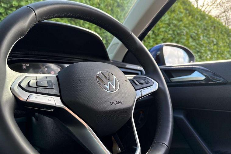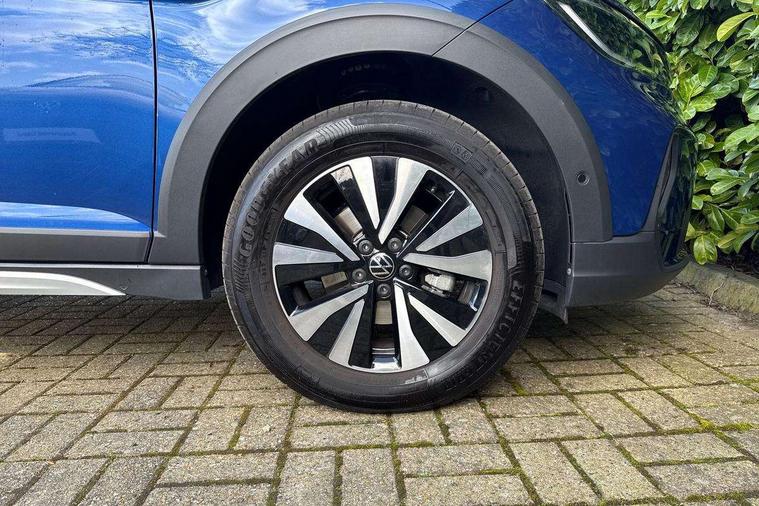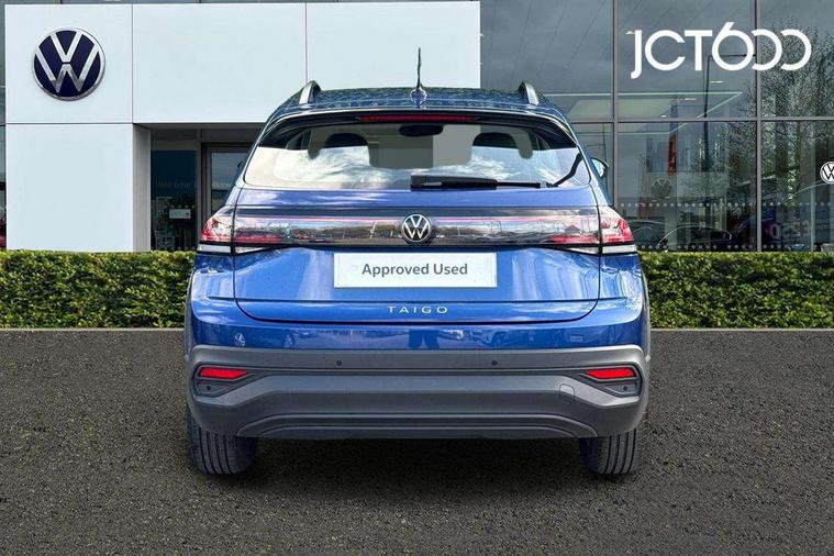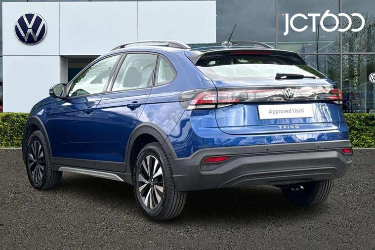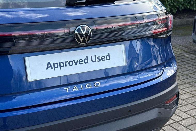 8" Digital cockpit basic display, Advanced driver attention and drowsiness monitor, Dynamic road sign display, e-Call (emergency call), Power Steering, Predictive adaptive cruise control, Travel assist including emergency assist, Washer fluid level indicator, Wireless Charging including Bluetooth, Start-stop system with battery regeneration (recuperation - energy recovery during braking), Digital radio reception (DAB+), WeConnect plus, Ambient lighting with logo projection, Aspherical driver's exterior mirror, Auto headlights, Body coloured bumpers, Body coloured exterior mirror housings and door handles, Electric windows, External USB type C socket and charging sockets, Heat insulating glass windscreen, LED rear combination lamp, LED third brake light, Left convex exterior mirror, Power folding adjustable/heated exterior mirrors and front passenger exterior mirror lowering function, Rear fog light on one side, reversing light on both sides, Rear side wing doors, Rear wash/wipe with intermittent wipe setting, 'Slash/ Austin' Cloth upholstery, 12V socket in centre console, 2 front reading lights, 3 rear head restraints, 3 seat bench in 2nd row, Black carpets, Child seat anchor for child seat system i-Size, 2x top tether and child seat anchor in front on front passenger side, Door and side trim panels in titan black, Driver and front passenger seat height adjustment, Front centre armrest, Handbrake lever handle in leather, Height and reach adjustable steering wheel, Leather trimmed gear knob, Leather wrapped multifunction steering wheel, Luggage compartment floor, Luggage compartment light, Lumbar support for driver's and front passengers seat, Seat covers in titanium black, Single front passenger seat, Split folding backrest with centre armrest and unsplit rear seat bench, Storage compartment under front seats, Sun visors with illuminated vanity mirrors, Chrome Package - Taigo, Drivers assistance pack - Taigo, Light and Sight pack including High beam assist - Taigo, 2 x 3-point seatbelts/outer rear seats with ECE label, 3-point seat belts in front with pretensioner and height adjustment, 3-point seatbelt for centre rear seat, Adaptive driver and front passenger airbags with passenger airbag deactivation function, Driver and front passenger airbags with front passenger airbag de-activation, front side and curtain airbags, Driver and front passenger safety-optimised head restraints, Electronic stability control, Extended and predictive pedestrian/ cyclist protection, Front and rear disc brakes, Front curtain and side airbags with center airbag, Hill start assist, Manual rear child locks, Single tone horn, Tyre pressure loss indicator, Anti-theft alarm system with interior monitoring, backup horn, and towing protection, Lava stone black gloss/matt decorative inserts in dash and front door panels, Low rolling resistance tyres,