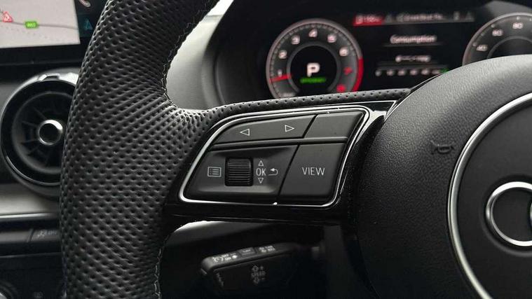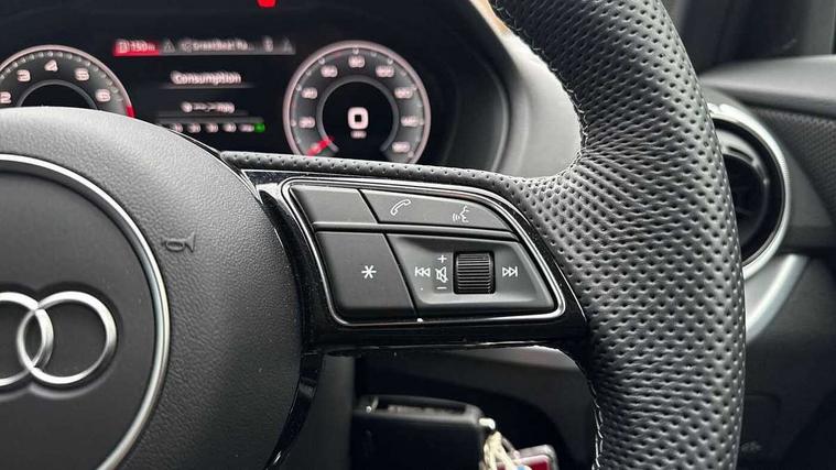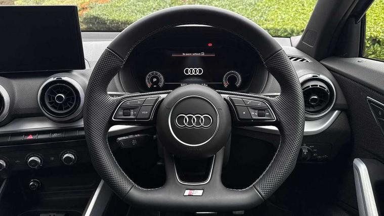 3D map display, Audi connect navigation and infotainment includes innovative services, Audi connect remote and control connects your vehicle to your smartphone, Audi drive select: S tronic - power steering assistance + engine + gearshift (modes: comfort, auto, dynamic, efficiency, individual), Audi smartphone interface - Apple carplay/Android Auto, USB connect, 2xSDXC card readers, voice control for navi, telephone, music and 3rd party apps, Audi virtual cockpit, Automatic start/stop system with recuperation, Bluetooth interface includes bluetooth audio streaming, Camera based traffic sign recognition, Cruise control, Distraction and Fatigue warning, E-call, Jukebox hard drive memory for music (10GB), Lane departure warning, MMI navigation plus with 8.8" touchscreen, Natural voice recognition, Power operated tailgate, Progressive steering, Rear parking sensors, Sport suspension, 6 passive loudspeakers, DAB Digital radio, USB type C port, Audi beam, Auto dimming rear view mirror, Black window trims, Bumper in full body colour paint finish, Electrically adjustable, folding, auto dimming and heated door mirrors with integrated LED side indicators, Front windscreen with grey tinted sunband, LED daytime running lights, LED headlights with dipped beam, high beam, position lights, indicators, LED rear lights, LED third brake light, Privacy glass - dark tinted rear and rear side windows from B-pillar backwards, Rear side wing doors, Rear wiper, Variable front intermittent wipers, Wheel arch trims in manhattan grey, 12V socket in front, 3 seat bench in 2nd row, 3 spoke flat bottomed multi-function leather sport steering wheel with gear shift paddles, 4-way electric lumbar support for front seats including manual seat height adjustment for both front seats, 60/40 split folding rear seat bench, Black carpets, Black cloth headlining, Front and rear head restraints, Front centre armrest, Front sport seats, Front/rear floor mats, Height/reach adjust steering wheel, Illuminated door sill trims with S logo, ISOFIX child seat mounting in front passenger and rear outer seats, Manual air conditioning, Single front passenger seat, Stainless steel pedals, Black styling pack - Q2, 3x3 point rear seatbelts, 6 airbags - Front, curtain and front side airbags, Electromechanical parking brake, Electronic stabilisation control including ABS, ASR and EDL, Front passenger airbag deactivation, Hill hold assist, Pre-sense front with pedestrian recognition, Seatbelt monitoring, Tyre pressure warning light with visual and acoustic warning, Warning triangle and first aid kit, Anti theft wheel bolts, Electronically operated child locks, Remote central door locking, Thatcham category 1 alarm, Aluminium interior element, Black dashboard, Gloss black centre console, Matt brushed aluminium trim inlays, Tool kit,