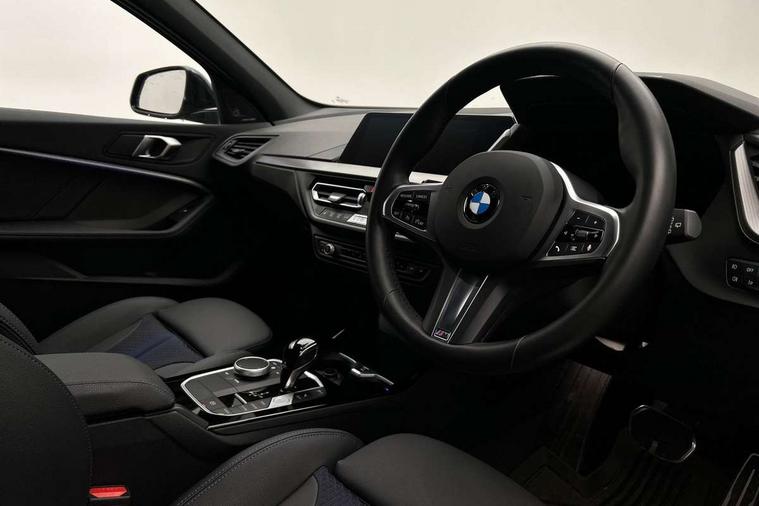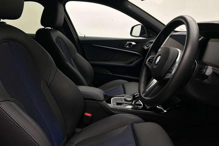 Active guard plus, Attentiveness assist, BMW ConnectedDrive online services, BMW Teleservices, Check Control warning system for monitoring of lights and door/luggage compartment open warning, Cruise control with speed limiter, Eco pro mode, Front axle single joint with specific axle kinematics to minimise drive influences on steering + provide increased rigidity agile driving behaviour, Integrated owners handbook, Lane departure warning system, Oil sensor for level and grade, On board computer, Optimum shift indicator, Personal Profile, Pull away assistant, Rigidly mounted rear subframe - Multi link construction with separate spring / damper configuration and excellent driving characteristics, Speed limit Info including no-overtaking indicator, Aluminium lightweight construction, Anti roll bar front and rear, Balancer shaft, Double VANOS twin scroll turbocharging system, Drive Performance Control, Electronic differential lock, High precision injection, M sport suspension, Petrol Particulate Filter, Twin tube gas filled shock absorbers with degressive characteristic curve, VALVETRONIC engine management, DAB Digital radio, Auto dimming rear view mirror, Automatic headlight beam throw control, Automatic windscreen wipers and automatic headlight, Body colour door handles, Body colour mirror caps, Body colour roof trims, Chrome 'M' logo side designation, Chrome exhaust twin tailpipes round 90mm in left, Chrome kidney grille frame with Satin Aluminium struts, Direction indicator side lights in exterior mirrors, Electrically adjustable exterior mirror with mirror adjustment switch on drivers armrest and aspheric on driver side, convex on passenger side, Fading support, Folding side mirrors with auto dimming/folding wing mirrors with auto dimming, Follow me home headlights, Front and rear bumper system with replaceable deformation elements, Front and rear electric windows with open and close fingertip control, anti trap facility and comfort closing, Front door sill finishers in black plastic with M designation in metallic look, Green tinted heat protection glazing, High gloss shadowline window frame, Recess cover mirror frames and B/C pillar embelisher trim, High level third brake light, Integrated front windscreen with washer jets, LED daytime running lights, LED eyebrow turn indicators, LED front fog lights, Lightweight engineering, Matt black air guide grilles, Matt black wheel arch trim, Model designation on electric bootlid, Nearside reverse light in rear light cluster, Preparation for high beam assistant, Rear fog lights, Rear side wing doors, Rear window wiper, Shark fin antenna, Trailer stabilisation logic, Visible VIN plate, Welcome lighting, 12V power socket in front centre console with blanking plug, 3 rear seat head restraints, 3 seat bench in 2nd row, 3 spoke sports leather steering wheel with black leather and stitching, pearl chrome decorative finish, specific M Badge, Anthracite headlining, Black boot net with lashing eyes, Cargo function on 2nd seat row, Child seat ISOFIX attachment for two outer rear seats and front passenger seat with anchorage points, Conditioned based service, Driver and front passenger backrest net on rear, Driver and front passenger seat heating, Driver side folding compartment in instrument panel, Folding rear clothes hook, Four grab handles integrated in roof lining, Front and rear door pockets with bottle holders, Front and rear side armrest integrated into door trim, Front armrest, Front sports seats, Glove compartment, Height adjustable front head restraints, Luggage compartment for bag hooks on left and right, foldable luggage compartment liner and four lashing eyelets, Manual adjust steering wheel, Multi-function controls for steering wheel, Single front passenger seat, Storage compartment in centre console, Storage compartment in luggage compartment, Stowage of the parcel shelf in luggage compartment trim, Sun visors with vanity mirrors and insert tab, Two front centre console cupholders, Two zone automatic air conditioning, Type C two USB ports in rear centre console, Velour floor mats, Additional interior lighting pack - 1 Series, BMW live cockpit professional pack- 1 Series, Connected pack professional - 1 Series, Interior lights pack - 1 Series, M Sport exterior styling aerodynamics pack - 1 Series, 2 tone horn, 3 point seatbelts on all seats, front pyrotechnic belt tensioners, stopper and belt force limiters, rear coded belt buckles, Airbags - Front driver/passenger, front and rear curtain head protection, front side, manual deactivation of front passenger airbag, Anti lock braking system (ABS) with brake assist, BMW emergency call, Brake drying, Braking readiness, Child proof locking system in rear door, City braking function, Comfort modes, Cornering brake control, Crash sensor activating of airbags, Unlocking doors, hazard warning lights, fuel cut off, interior lighting+activation of safety battery terminal clamp, Driver and front passenger seat belt security check, Dynamic stability control + (DSC+), Dynamic Traction Control - DTC, Electrically operated hand brake including automatic hold function, Front and rear disc brakes, Seatbelt warning, Side impact protection, Tyre pressure monitoring system, Warning triangle and first aid kit, Central locking switch for all doors, fuel filler cap and luggage compartment, Deadlocking function system to all doors, Drive away locking system on all doors and luggage compartment with de-activated in iDrive settings, Locking wheel bolts, Remote control with integrated key with High-gloss Black inlay and M designation and 1 button for open/ close lock, window, open luggage compartment, Start/stop button illuminated in centre console with keyless engine start and auto start stop deactivation button, Thatcham Cat.1 alarm and immobiliser, Wheel slip limitation close to the actuator (ARB), Contrast stitching on instrument panel, 18" Burnished M double spoke bi-colour alloy wheels finished in orbit grey - styl