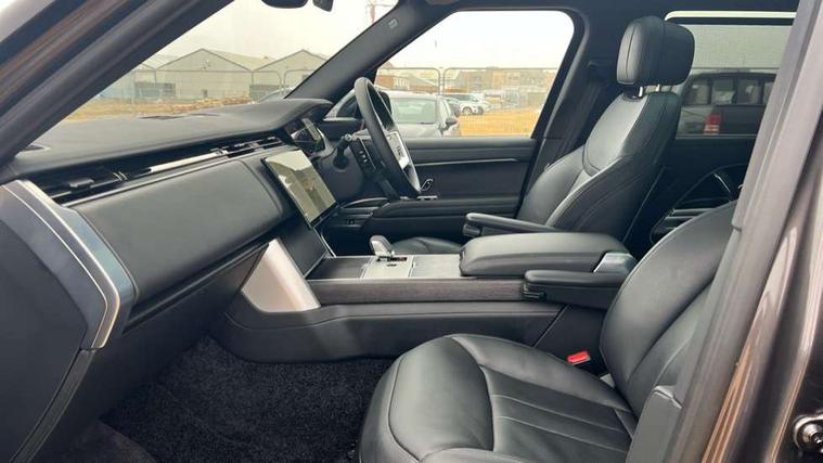 13.1" Touchscreen, 3D surround camera inc frwd traffic detection, vehicle clearance guidance, 3D view, clearsight ground view, manoevure light, 360 parking aid, wade sensing, Adaptive cruise control with steering assist, All Terrain Info Centre, All wheel steering, Blind spot assist, Bluetooth connectivity streaming, Driver monitoring and response with driver facing camera & driver distraction monitor, Eco mode, Electric power assisted steering (EPAS), Emergency call service, Front and rear parking aid, Head up Display, Interactive driver display, Lane keep assist, Park assist, Powered gesture tailgate/boot lid, Rear collision monitor, Rear traffic monitor, Remote, Traffic sign recognition with adaptive speed limiter, Wi-Fi Enabled with data plan, Wireless Apple CarPlay/Android Auto, Wireless device charging, 8 speed automatic transmission, Active damper technology system, Adaptive dynamics, Adaptive off-road cruise control, All Wheel Drive (AWD), Automatic access height, Electronic air suspension, Open differential with torque vectoring by braking, Terrain Response 2 Auto, Twin speed transfer box, Digital Audio Broadcast radio-DAB, Pivi pro including smart settings, Connected navigation pro, nuance speech, USB socket, Acoustic laminated windscreen, Animated directional indicators, Automatic headlights, Automatic levelling headlights, Centre high mounted stop light, Electric windows with one touch open/close and anti trap, Engine cover, Flush deployable exterior door handles, Front and rear recovery eyes, Front fog lights including cornering lamp, Headlamp power wash, Heated rear window, Heated washer jets, Illuminated aluminum treadplates with Range Rover script, Laminated front and rear side glass, LED tail lights, No badges, Power fold, auto-dimming, heated door mirrors with approach lights, Rain sensing windscreen wipers, Rear boot, Rear fog lights, Rear side wing doors, Side repeater indicators in mirror, Standard bonnet, Winter wiper park position, 2 seat bench in 3rd row, 3 seat bench in 2nd row, 30 Colours configurable cabin lighting with 4 lighting zones, Air quality sensor, Bright metal pedals, Cabin air purification pro, Customer configurable single point entry, Driver and passenger front seat armrests, Easy boot loading, Ebony Carpet, Electric rear side window sunblinds, Four zone climate control, Front and rear cupholders, Front and rear grab handles, Front head restraints, Heated steering wheel, Hook in load space, Loadspace light, Luggage tie down in loadspace, Multifunction steering wheel, Perforated Semi-Aniline leather upholstery, Rear centre armrest, Rear head restraints, Rear ISOFIX, Roller loadspace cover, Satin chrome gearshift paddles, Single front passenger seat, Soft close doors, Upper and lower glovebox, Online pack with data plan - Range Rover, 3x3 point rear seat belts, Anti-lock braking system (ABS), Brake hold function, Cornering brake control (CBC), Customer configurable autolock, DSC - Dynamic Stability Control, Electronic brake force distribution, Electronic parking brake, Electronic traction control, Emergency braking, Front airbags with passenger seat occupant detector, Front side airbags, Hill descent control, Hill launch assist, Low traction launch, Occupant protection assist, Power operated child locks, Roll stability control, Tyre pressure monitoring system (TPMS), Immobiliser, Intrusion sensor and alarm, Keyless entry, Locking wheel nuts, Remote central locking, Noble chrome controls,