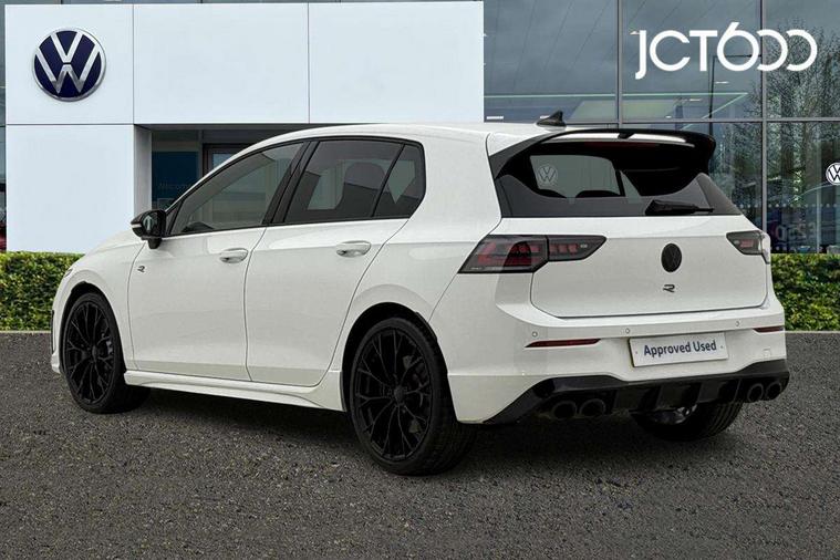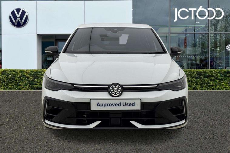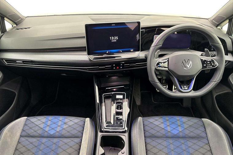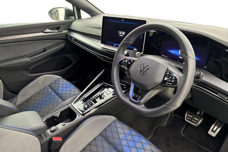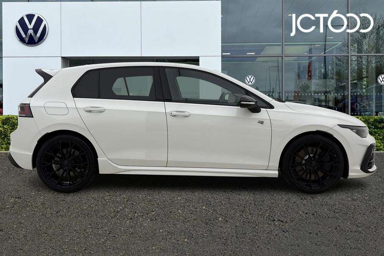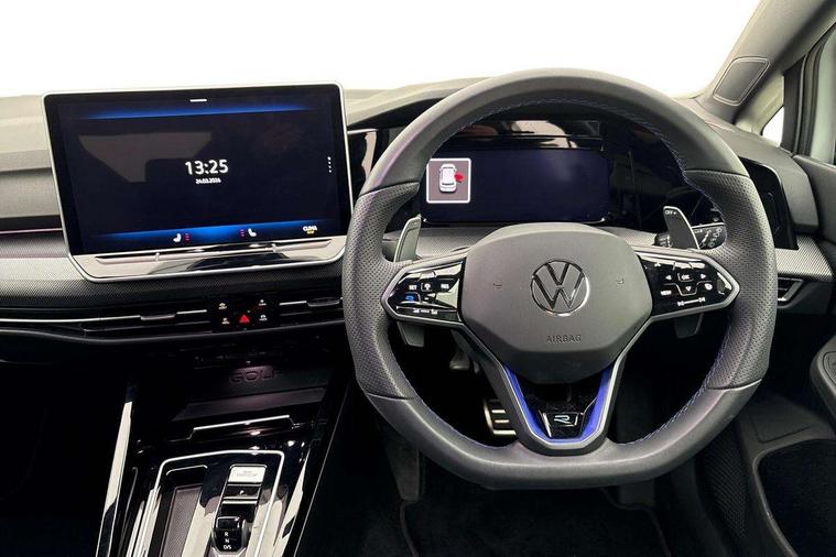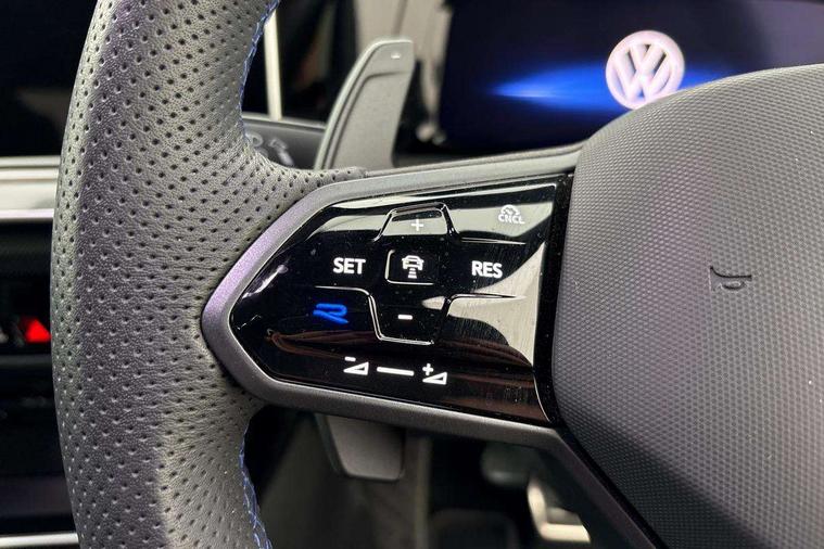 Activated carbon canister, Adaptive cruise control (ACC), Advanced driver attention and drowsiness monitor, Dynamic road sign display, E-Sim card for online connectivity, eCall emergency call system, Electronic maximum speed limit increased to 270 km/h, includes driving Modes 'drift' and 'special', larger roof spolier and GPS laptimer + G-Meter, Multi-color Digital cockpit pro, selection of different info profile possible, Multifunction front facing camera for distance control, Navigation system, Oncoming vehicle braking when turning including swerve support, Preparation for light assist system, Progressive steering, Side assist blind spot lane change system, rear traffic alert and exit warning system, Speed limiter, Speedo, rev counter, electronic odometer, trip, service interval display, exterior temperature and fuel gauge, Traffic jam assist, Voice enhancer and voice control, Warning signal and warning light for front and rear seatbelts not fastened, We connect plus preparation, We connect preparation, Wireless app connect, All wheel drive - 4Motion, Petrol Particulate Filter, Sports suspension, Start-stop system with battery regeneration (recuperation - energy recovery during braking), XDS electronic differential lock for improved traction and handling, 2 USB C ports in front, 2 USB charging sockets on the centre console in the rear charging capacity upto 45W, Comfort telephony + wireless charging, without wireless aerial connection, Digital radio reception (DAB), Diversity antenna for FM reception, Gaming platform via car app, Infotainment system with 12.9" display, Mobile phone interface with inductive charging feature, 3rd brake light, Auto dimming rear view mirror, Auto headlights, Automatic headlamp activation with Coming home and Leaving home feature, Black badge on B-pillar, Black mirror caps, Black strips on radiator grille and headlights, Body colour door handles, Darkened headlights, Darkened R Logos and VW logos in front, rear and on fender, Exhaust system with black tailpipe, Exterior ambient lighting with illuminated lighting animation and wake up/goodbye scenario, Exterior mirrors convex on the left and aspherical on the right, Front and rear electric windows, Front fog lamps and cornering light, Heat insulating windshield made of laminated glass, LED daytime running lights, LED matrix headlights with ambient light V2, advanced high beam, dynamic range contol with cornering, LED rear lamp with indicator, poor weather, R name plate, Rain sensor, Rear fog light on one side and reversing lights on both sides, Rear side wing doors, Rear tinted glass 65% light absorbing from B pillar backwards, Rear windscreen washer and wiper with interval delay, Remote electrically foldable door mirrors, puddle lights and reverse activated passenger's door mirror, Welcome light with surround lighting, 12V socket in front centre console, 12V socket in luggage compartment, 3 rear head restraints, 3 seat bench in 2nd row, 30 colour ambient lighting, illuminated center console storage compartment in front, Air care climatronic 3 Zone automatic climate control with rear air conditioning control panel, Aluminium gearshift handle, Brushed stainless steel pedals, Carpet mats, front and rear, Front centre armrest, Integrated front head restraints, ISOFIX anchors for child seats on outer rear bench seats and on front passanger seat compatible for i-Size, Luggage compartment lighting, Rear cupholder and loadthough, Single front passenger seat, Soul black instrument panel, Split folding backrest with centre armrest and unsplit rear seat bench, Storm grey roof lining, Sun visors with illuminated vanity mirrors, Driver assistance pack - Golf DSG Estate/Hatchback, R styling pack - Golf, Technology park and comfort pro package - Golf Hatchback, 3 point height adj front seatbelts + pretensioners, 3 rear three point seatbelts, ABS, Autonomous emergency braking front assist with pedestrian and cyclist monitoring, Child locks on rear doors, Disc brakes in rear incl. brake calipers in black with darkened R-logo, Driver and front passenger airbag with front passenger airbag deactivation, Electronic parking brake with auto hold, ESC (Electronic Stability Control), Extended pedestrian protection measures, Hill start assist, Two tone horn, Tyre pressure loss indicator, Volkswagen roadside assistance, Anti theft wheel bolts, Preparation for alcohol interlock, Wheel hub cover with darkened R-logo,