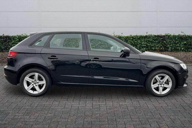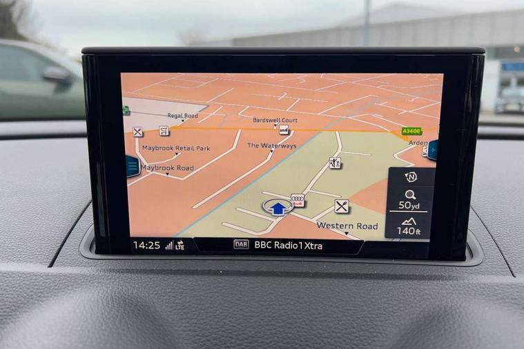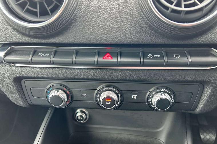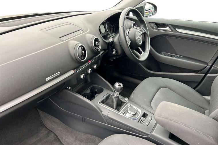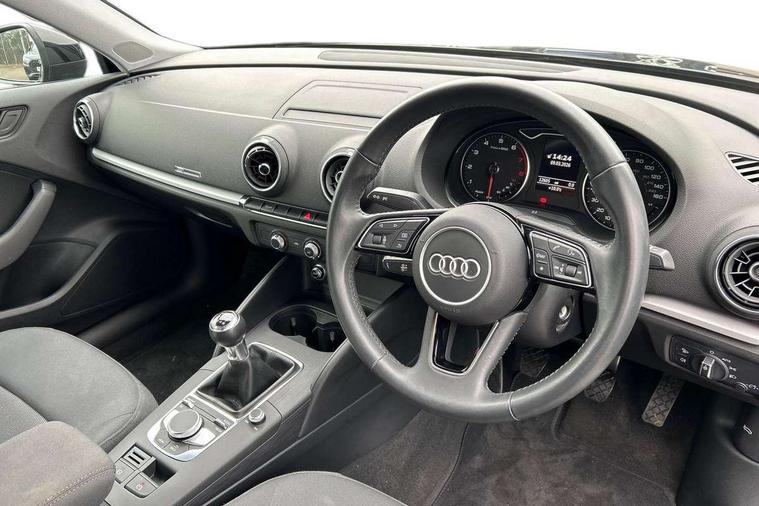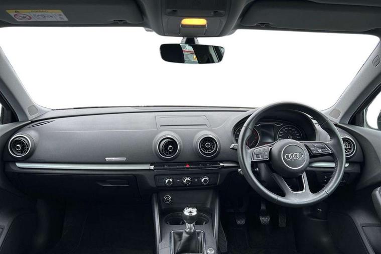 Audi connect, Audi smartphone interface, Automatic start/stop system, Colour driver's information system display, Electro - mechanical power assisted steering, Mobile telephone preparation - bluetooth interface, SD card based MMI navigation, Service interval indicator, Speed limit display, Voice control system, Voice recognition for navigation system, Dynamic suspension, 2 USB interfaces and Aux-In jack, Audi music interface, CD player, DAB Digital radio, MMI radio plus with 7" colour MMI screen and MMI controller, Auto dimming rear view mirror with light and rain sensors, Body colour bumpers, Body colour door mirrors, Body colour roof spoiler with aerodynamic inserts in high gloss black, Electric front windows, Electric rear windows, Electrically adjustable and heated door mirrors with integrated LED side indicators, Heated windscreen washer jets, Matt black radiator grille, Rear wiper, Xenon headlights with LED Daytime running light, 3 adjustable rear headrests, 3 spoke leather multifunction sports steering wheel, 4 lashing points to secure luggage, Adjustable front centre armrest, Front and rear interior lights with delay, Front/rear floor mats, Glovebox light, Height and reach adjustable steering wheel, Isofix child seat preparation for front passenger/outer rear seats inc passenger airbag deactivation, Rock grey headlining, Storage compartments in doors side trims, centre console and under front drivers seat, Non smoking pack - A3, 3 point seatbelts on all seats, ABS/EBD, Active bonnet, Active front headrests, Airbags - front driver/passenger, front & rear side, curtain, drivers knee, ASR, EDL, Electromechanical parking brake, ESC - Electronic Stability Control + traction control, Front passenger airbag deactivation, Hill hold assist, Manual rear child locks, Multi-Collision braking, Seatbelt warning, Tyre pressure warning, Warning triangle and first aid kit, Anti theft alarm, Anti-theft wheel bolts, Remote control central locking, Thatcham category 1 alarm + immobiliser, Aluminium air vent surrounds, Micrometallic silver inlay, Tool kit, Tyre repair kit,