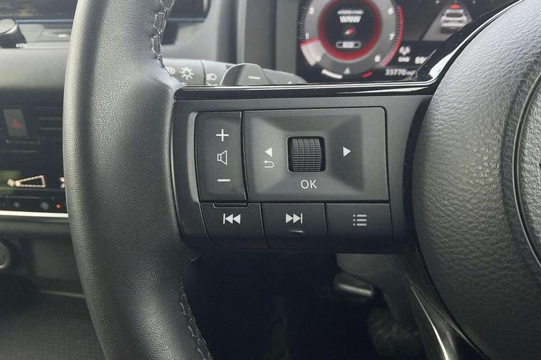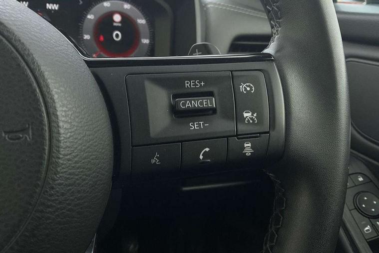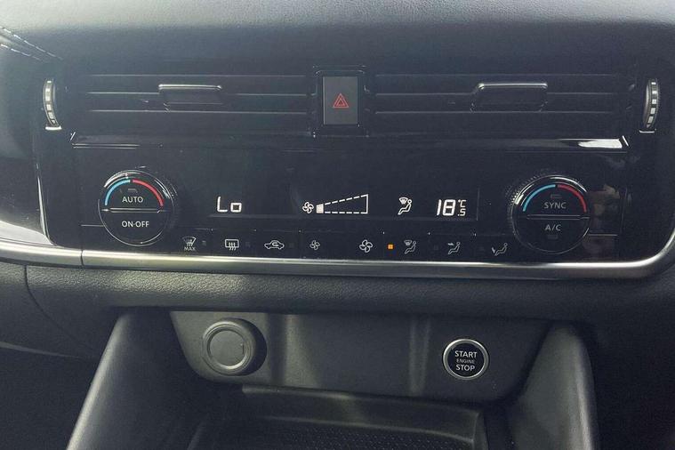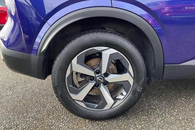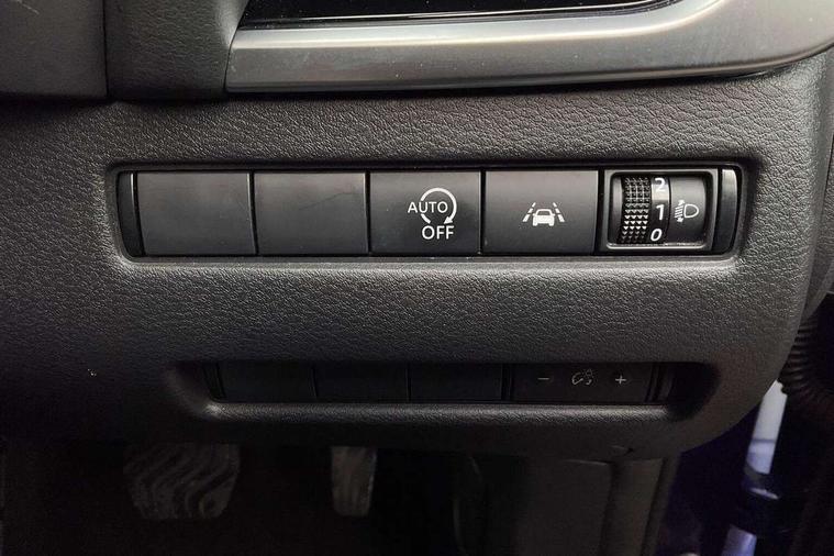 Android auto/Apple CarPlay (Wired), Blind spot warning, Drive modes (sport, normal, eco), Electric speed sensitive power steering, Emergency and breakdown call, Full Digital 12.3" TFT Digital Combimeter, Google maps services - search, weather, 3D maps and Google street view, Idle stop/start system, Intelligent around view monitor, Intelligent Cruise control (ICC), Intelligent driver alert system, Intelligent forward collision warning, Intelligent lane intervention, Lane departure prevention, Lane departure warning system, Maximum speed limiter, Moving object detection, Nissan connect 12.3 inch touchscreen infotainment system, Nissan connect navigation, Push button starter, Rear cross traffic alert, Rear parking sensors, Rear view camera, Remote control services - door locks, lights, horn and car locator, Telematics - notifications and connectivity services, TomTom live traffic services, Traffic sign recognition with legal speed adjustment, Trip computer, Virtual personal assistant and firmware over the air capability, Wireless apple carplay, 6 speakers, AM/FM audio system with DAB, Bluetooth audio streaming, Front USB connections (Type-A and Type-C), Rear USB charging only ports (Type-A and Type-C), Auto dimming rear view mirror, Auto rear wiper when reversing, Automatic hazard signal with emergency stop signal, Body colour mirror caps, Body coloured door handles, Bodyside mouldings, Chrome side window finisher, Door handle with button, Electric auto folding door mirrors, Electrically adjustable and heated door mirrors with LED turn indicator, Follow me home headlights, High beam assist, Intelligent auto headlights, LED 3rd brake light, LED daytime running lights, LED Headlights, LED rear lights, One touch front and rear electric windows with remote opening and closing, Partially body coloured bumpers, Privacy glass, Rear bumper with graphite insert, Rear reversing light (bulb lighting), Rear roof spoiler, Rear side wing doors, Rear styling plate, Shark fin antenna, Splash free rain sensing wipers, Super UV and infrared cut glass, Three blink turn signal, 12v power socket in dashboard and luggage, 2x Rear coat hooks, 3 bench rear seats in 2nd row, 3 rear headrests, 4 folding assist grip, 6 Luggage hooks - 4 on floor, 2 on side, 6-way manually adjustable driver's seat, 60/40 split folding rear seat bench, Ambient lighting around centre console, Centre console storage tray, Chrome interior door handles, Cloth monoform upholstery, Driver and front passenger sunvisors with illuminated vanity mirrors, Driver seat back pocket, Dual zone automatic climate control with pollen filter, Electrically adjustable lumbar support for driver, Front and rear door storage, Front centre console and armrest, Front cupholders x 2, Front door with bottle holders, Glovebox with light, Hard trunk cover, Height adjustable driver's seat, Height adjustable front headrests, Height adjustable passenger seat, Luggage board system, Luggage space lighting, Manually adjustable passenger (slide recline + lifter), Multifunction steering wheel, Passenger seat back pocket, Rear armrest with 2 cupholders, Rear door bottle holders, Single front passenger seat, Soft PVC kneepad, Steering wheel gearshift paddles, Steering wheel switches, Sunglasses holder, Tilt/telescopic adjustable steering wheel, Two rear isofix child seat anchorage points with top tether, Welcome light and console tray ambient lighting, 3x3 point rear seatbelt pretensioners + load limiters, ABS with EBD and brake assist, Active brake limited slip, Auto hold function, Child locks on rear doors, Curtain and front side, far side airbags, Driver and passenger airbags, Driver, passenger and 2nd row rear seat belt reminder, Electronic parking brake, Front seatbelt pretensioners + load limiters, Height adjustable front seatbelts, Hill start assist, Intelligent blind spot intervention, Intelligent front emergency braking with pedestrian, cyclist recognition and junction assist, Intelligent rear automatic braking, Tyre pressure monitoring system, Vehicle dynamic control, Capless fuel filler, Engine immobiliser, Intelligent Key, Remote central door locking with deadlocking, Thatcham Cat.1 alarm, Interior instrumental panel B finisher, 18" Diamond cut alloy wheels, Tyre puncture repair kit,