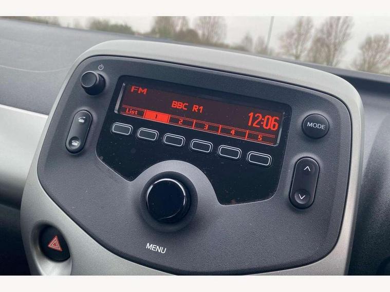 Bluetooth system, Digital clock, Electric power steering, Fuel indicator with low level warning, Lights on warning, Speed limiter, Tachometer, Vehicle Stability Control (VSC), 4 speakers, Auxiliary input socket, DAB Digital radio, Stereo radio, USB connection, 2 speed wipers/variable intermittent/mist function, Black front X, Body colour bumpers, Body colour door handles, Body colour door mirrors, Carbon rear diffuser, Electric adjustable door mirrors, Electric front windows, Green tinted glass, Headlamp levelling, Heated door mirrors, Heated rear windscreen, LED daytime running lights, Rear spoiler, Rear window demister, Rear wiper, Roof mounted aerial, 12V Accessory socket, 3 spoke leather steering wheel, 50/50 split folding rear seat, Air conditioning, Air recirculation system, Centre console storage, Chrome insert to gearknob, Chrome interior door handles, Driver and passenger sunvisors, Driver's seat height adjuster, Driver/passenger seat recline/slide adjust, Driver/passenger vanity mirrors with covers, Front and rear door pockets, Front cupholder, Front map reading lights, Gleam cloth upholstery, Glovebox, Height adjustable front head restraints, Isofix system on outer rear seats, Leather gear knob, Pollen filter, Rear cupholders, Rear headrests, Steering wheel mounted radio/phone controls, Stepless tilt adjustable steering column, Storage bins on all doors, Tonneau cover, ABS, Driver and passenger airbags, ESP, Fasten seatbelt reminder, Front side airbags, Height adjustable front seatbelts with pre-tensioners and load limiters, Hill start assist, Passenger airbag deactivate switch, Rear child proof door locks, Side curtain airbags, Tyre pressure warning, Engine immobiliser, Lockable fuel cap, Remote central locking, Grey dashboard trim, Tyre repair kit,