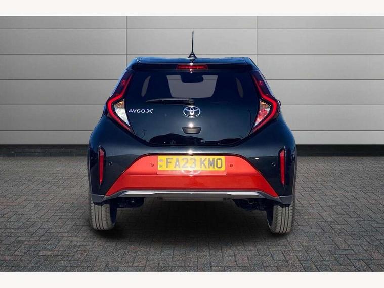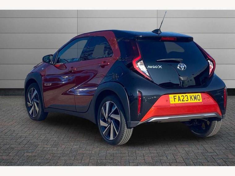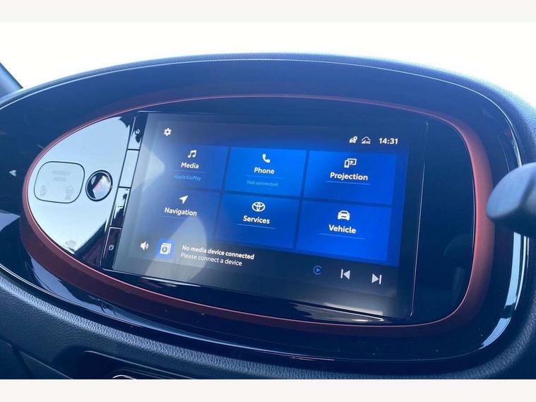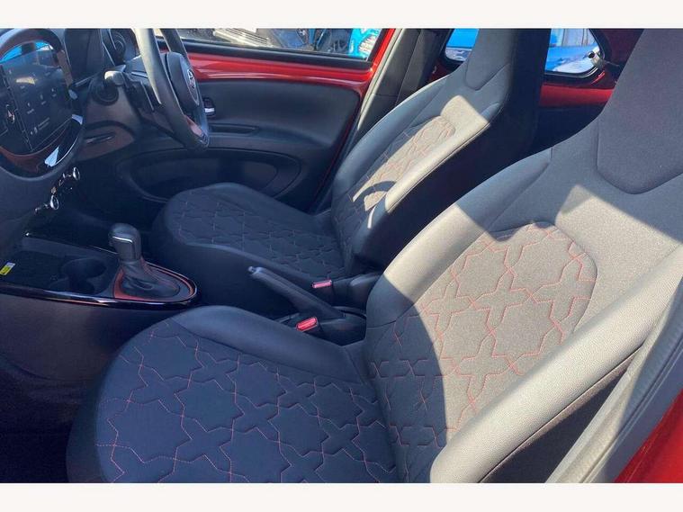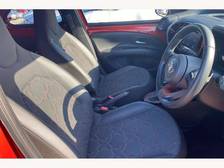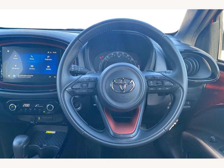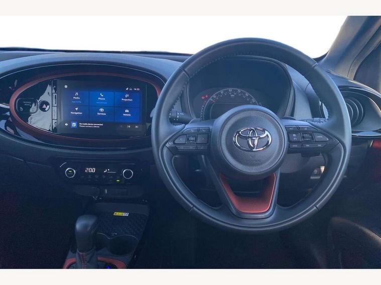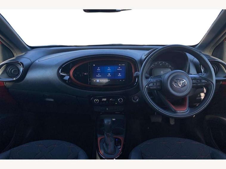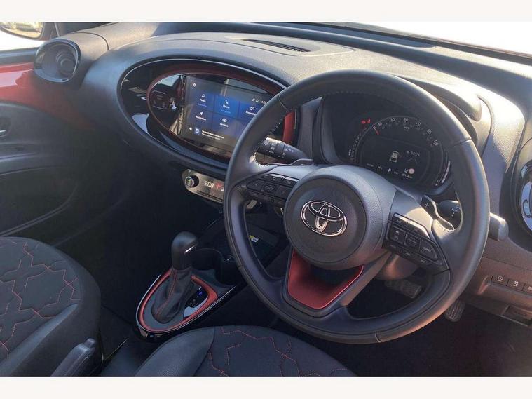 4.2" TFT colour screen, Adjustable speed limiter, Analogue speedometer, Bluetooth connectivity, Digital tachograph, Driver attention alert system, eCall emergency call system, ECO-driving indicator, Electric power steering, Front and rear parking sensors with auto brake, Intersection turn assist, Key reminder warning, Noise reduction kit, Pre collision system with emergency steering assist, Remote boot door release on key, Reversing camera with static guide lines, Smart entry and push button start, Speed limit display, Start and stop, Wireless charger, Wireless Smartphone Integration includes Apple CarPlay and Android auto, Vehicle Stability Control (VSC), 4 speakers, 9" HD multimedia display touch screen with Toyota smart connect, DAB digital audio broadcast, USB connector, Auto headlights, Auto wipers, Automatic headlights cut-off, Automatic high beam On/Off switch, Bicycle towing hook, Black fog light surrounds, Black side protection mouldings, Black wheel arch mouldings, Body colour door handles, Body coloured front bumper, Boot door scuff plate, Eclipse black rear bumper, Electric heated door mirrors, Follow me home headlights, Front and rear underruns in silver, Front fog lights, Front power windows, Gloss black door mirrors, Gloss black upper front grille, Headlight cut-off reminder, LED daytime running lights guide, LED front light guide, LED High mounted stop lamp, LED projector headlights, Manual day/night rear view mirror, Manual headlight levelling, Pagoda roof, Power adjustable door mirrors, Power back door, Privacy glass, Rain sensor, Rear combination lights LED bulb type, Rear side wing doors, Rear windscreen defogger, Rear windscreen wiper, Remote hazard lights system, Short antenna, Variable intermittent windscreen wipers, 12v power outlet - front, 2 seat bench in 2nd row, 3 spoke leather steering wheel, 50/50 split folding rear seat, Adhesive roof headlining, Adjustable speed limiter switch on steering wheel, Audio and telephone switches on steering wheel, Auto air conditioning, Black roof lining, Body colour satin anodised insert on steering wheel, Boot light, Centre room light, Chrome interior door handles, Chrome surround on air conditioning buttons, Clean air filter, Console box storage, Floor mats, Front and rear cup holders, Front head rest deco art, Front head restraints, Gear shift indicator, Height adjustable driver seat, Intelligent adaptive cruise control switch on steering wheel, ISOFIX child restraint system on rear seats, Lane departure alert switch on steering wheel, Leather gearshift knob, Light blue ambient lighting in centre console, Manual tilt steering wheel, Manually reclining and sliding driver seat, Manually reclining and sliding front passenger seat, Multimedia switches on steering wheel, Paddle shift levers on steering wheel, Partial synthetic leather upholstery, Pollen filter, Rear door pockets, Rear head restraints, Remote air-conditioning system, Satin silver insert on gear shift knob, Single compartment glovebox with lights, Single front passenger seat, Soft tonneau cover, Sun visors with mirror on driver and passenger side, Voice recognition switch on steering wheel, Toyota safety sense pack - Aygo X, Anti lock braking system + Electronic brake force distribution, Child safety door lock, Emergency brake light signal (EBS), Hill start assist control (HAC), Passenger airbag on/off switch, Seat belt reminder for front and rear seats, Supplement restraints system (SRS) - 6 airbags, Traction control, Tyre pressure warning system, Immobiliser, Remote power door locks, Black wheel centre caps, Tyre repair kit,
