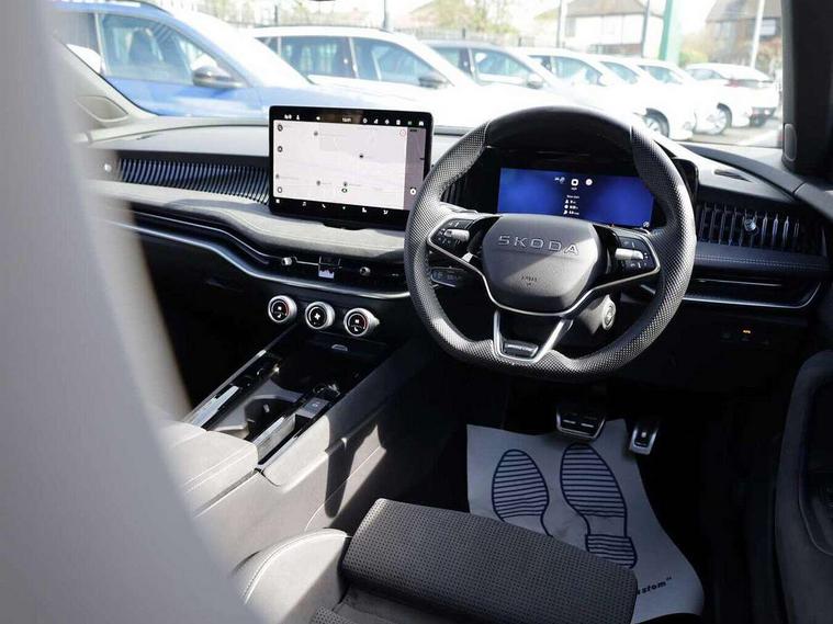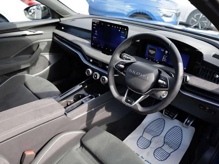 13" touchscreen display with satellite navigation, 4x USB-C ports (2x in front centre console and 2x in rear) (45W), Adaptive cruise control with speed assist, lane assist plus and traffic tram assist, Blind spot detection with door exit warning, Bluetooth system, CareConnect and Emergency Call, ChatGPT functionality, Driver fatigue sensor, Easy boot close funtion, Front assist with extended predictive pedestrian protection, Front cross traffic assist, PAS, Quick start all heating software functionality, Stop/start engine system, Traffic sign recognition, Turn assist with evasive assistance, Virtual Cockpit - 10.25" digital display, Voice control system, Washer for rear camera, Wireless charging for one smartphone (15W) with cooling function, Wireless smartlink apple carplay, SmartLink+ android auto, Dynamic chassis control plus with progressive dynamic steering, DAB Digital radio, Display cleaner, FM radio connection, Web radio connection, Acoustic side windows and interior noise suppression, Backdrop lighting, Black exterior styling window and grille surrounds, Body colour door handles, Dynamic range control with poor weather light and integrated fog light, Electrically adjustable, heated, folding and driver side auto-dimming door mirrors with memory function, integrated indicators and logo projection, Frameless auto-dimming rear view mirror with USB-C, Gloss black door mirrors, Ice scraper in fuel tank cap, LED 3rd brake light, Light assist with High beam control, Light assistant (coming/leaving home/tunnel light), Privacy glass, Rear fog lights (x2), Rear side wing doors, Skoda lettering in black, Sportline badging, Sports bumpers, Windscreen wipers with rain sensor, 12V socket 1x centre console 1x boot, 14-way electrically adjustable, memory, front seats with 4-way pneumatic lumbar support, and extendable thigh support with smart comfort entry aid, 2x cargo elements in boot, 2x light in boot, 3 seat bench in 2nd row, 60:40 Split folding rear seats, Aluminium pedals, Bottle holders in the front doors 1.5 litre bottle and rear 1.5 litre bottle, Cup holder in front with easy open mat, Front armrest with storage box, Front sports seats, Heated and ventilated front seats, Height adjustable front and rear head restraints, Illuminated glovebox, Interior lights with control switches, Isofix child seat fittings in outer rear and front passenger seats, LED front and rear reading lights, Single front passenger seat, Skoda lettering on steering wheel, Storage compartment with cover, Storage pockets on back of front seats, Sun visors with illuminated vanity mirrors, Ticket holder on A Pillar, Tri zone climate control, Umbrella in driver's door, Light and view package - Superb, Transport package - Superb Hatchback, 3 rear seatbelts, 8 Airbags - Front driver and passenger, front side driver and passenger, centre, curtain front and rear, drivers knee, Crew protect assist, Driver and passenger seatbelts with warning light, Electronic parking brake, ESC including ABS, EBV, MSR, ASR, EDS, HBA, DSR, RBS, CBC, multi-collision brake (MKB) and Auto hold, Hill hold assist, Power operated child lock in rear doors, Alarm with interior monitoring tilt sensor and back up horn, Backrest remote release from trunk, Electronic engine immobiliser, Keyless start/stop, Remote central locking with SAFE system, Third key, Walk away locking, Decorative front door sills, 19" Torcular polished black alloy wheels with anti theft wheel bolts,