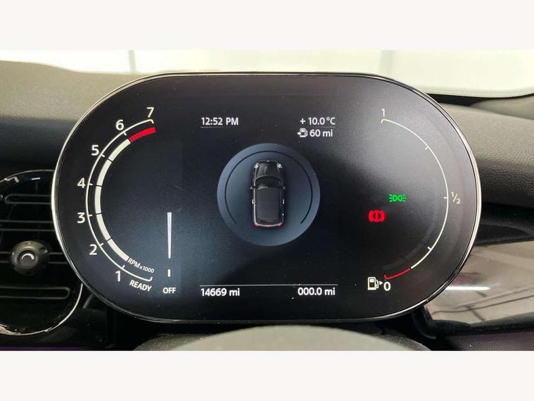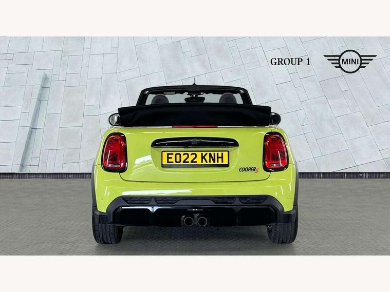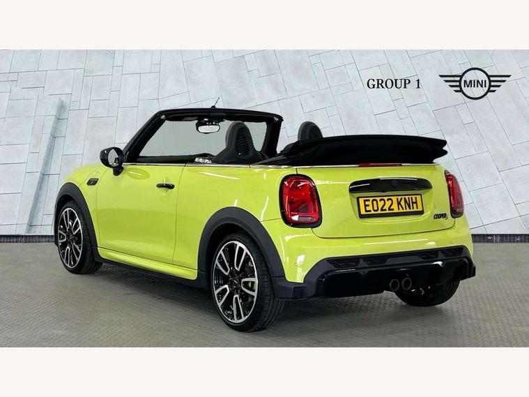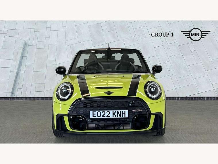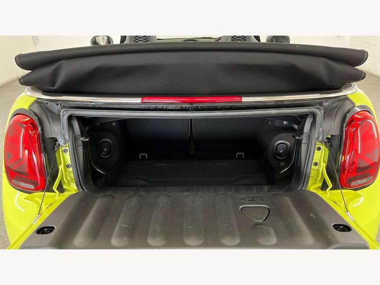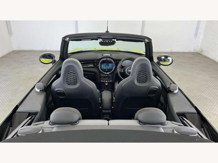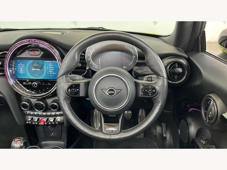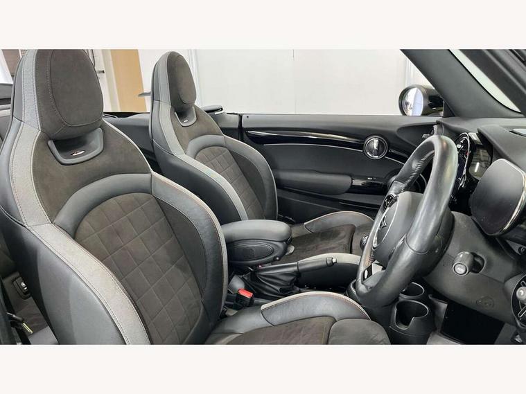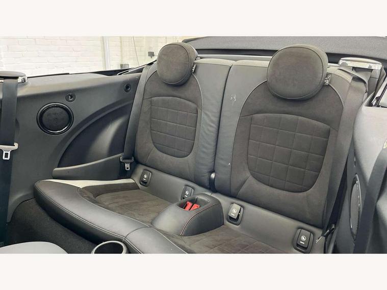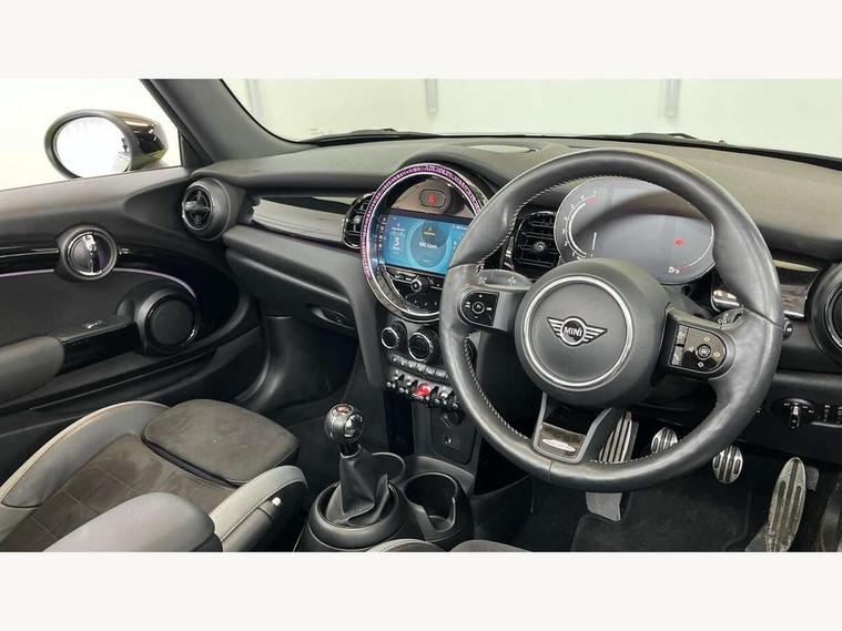 Apple CarPlay, Automatic start/stop function with brake energy recuperation, Compatible mobile phone bluetooth with audio streaming, Cruise control with brake assist, Electro-mechanical speed dependant steering assistance, Instrument cluster, MINI Driving Modes - centre toggle switch to control driving setting (sport, mid and green), Mini E-call, MINI TeleServices, On board computer, Rear park distance control, Service interval indicator, 6 Speed manual transmission including gear change indicator display, Adaptive suspension, Double Vanos system, Fully variable valve control, High precision injection, Performance Control, 8.8" touchscreen with LED ring, FM tuner and DAB digital radio, Automatic headlight activation switch, Bonnet scoop, Chrome border honeycomb structure radiator grille with S badge, Dynamic brake lights, Electric windows, Fully electric black softtop with integrated sunroof functionality, Heated rear window, Heated windscreen washer jets, John Cooper Works - aerodynamic kit (front and rear apron, spoiler), front and rear sport bumpers and part-painted side sills with door sill finishers, LED headlight with closed ring and daytime driving lights, Metal door sill strips with Cooper S imprint, Model logo Cooper S on right of tailgate, Rain sensor window wipers, Rear boot, Rear fog lights, Rear LED lights with union jack design, Side scuttle panel with integrated indicator, Sun/heat protection glass, Third brake light, Two central exhaust tailpipes with chrome finisher, White indicator lenses, 12V Accessory socket in centre console, 2 seat bench in 2nd row, 4 lashing eyes in luggage compartment, 50/50 split folding rear seats, Chrome interior highlights, Colour line - Carbon black, Cupholders, Easy Load boot handles, Front and rear isofix with front passenger airbag deactivation, Front seatback storage pockets, Glove compartment, Height and length steering column adjustment, Interior lighting with 12 different colours running across the dashboard, underneath door bezel illuminated laser engraved design on central display, John Cooper Works walk nappa leather steering wheel with grey seam and John Cooper Works badge on piano black lower steering wheel spoke, Leather gearshift lever and handbrake gaiters, Leatherette integrated headrest, adjustable thigh support with john cooper works logo, LED reading lights, vanity mirror lights, front foot well light and spotlight on front seats, Manual air conditioning, Mechanical seat adjustment, driver seat height adjust, forward/back and front seats backrest, Multifunction steering wheel, Rear head restraints, Single front passenger seat, Sports steering wheel, Storage compartments in doors, Sunvisors with vanity mirrors, Velour floor mats, Convertible pack with comfort access - Mini Convertible, Piano black exterior pack - Mini Convertible Cooper S, 3 point seatbelts on all four seats, 6 Airbags - front, side and seat belt tensioners, Active rollover protection, Anti-lock braking system (ABS), DSC - Dynamic Stability Control, Front and rear disc brakes, Hill start assist, Two tone horn, Tyre pressure monitoring system, Alarm system with tilt sensor, monitoring doors, bonnet interior and tailgate, Electronic vehicle immobiliser, Keyless Go, Piano black interior trim, Tool kit,