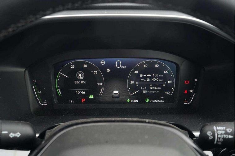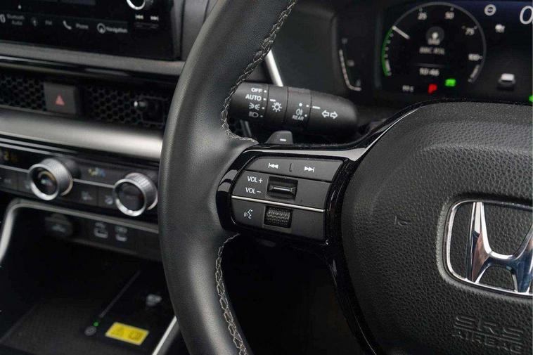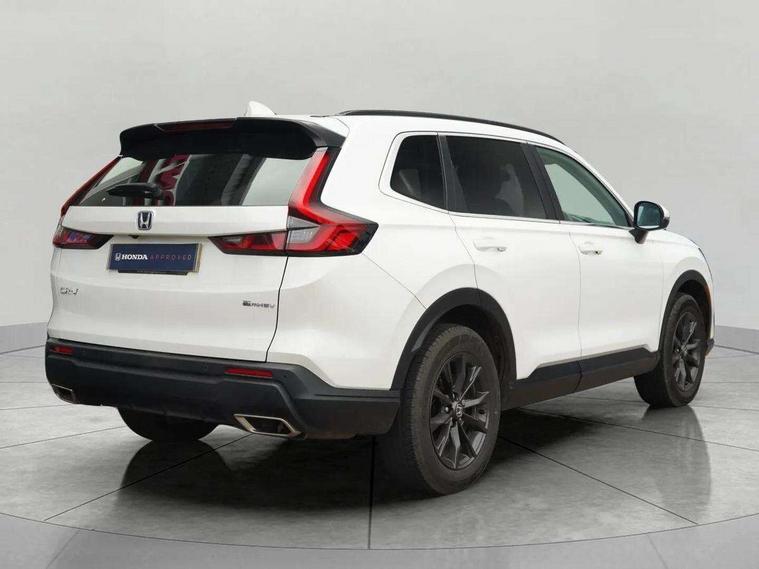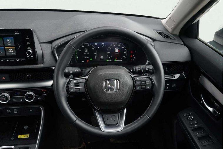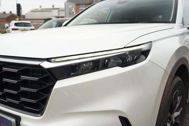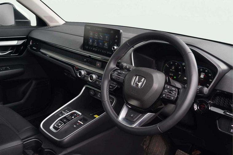 10.2" Multi information display, 4 x front and 4 x rear parking sensors, Active lane change assist, Adaptive cruise control with Cornering speed assist, Adjustable speed limiter, Agile handling assist, BLIS (Blind Spot Information System) with Cross Traffic Monitor, Bluetooth hands free telephone connection, Crossing traffic warning front, Drive mode (Econ, Normal, Snow, Sport), Driver attention monitoring system, E-call, eCall emergency call system, Electric power steering, Emergency stop signalling system, Forward collision warning, Handfree power tailgate with kick sensor and walk away close, HEV mode, Honda 360 sensing, Honda CONNECT with Navigation 9" touchscreen, AM/FM/DAB, Apple Carplay and Android Auto, live traffic info, Intelligent speed limiter, Lane change collision mitigation, Lane departure warning system, Lane keep assist system, Lane watch, Lead car departure notification system, Low speed following, Power meter, Rear view camera, Road departure mitigation, Traffic jam assist, Traffic sign recognition, Wireless apple carplay, Wireless charging, Amplitude reactive damper, Vehicle stability assist, 1X USB (A/2.5A) and 1x Charger (C/3A) on Front, 8 Speakers, DAB+ radio, Dashboard centre speaker, Front tweeters, Premium audio speakers, Rear USB 2x Charger (C/3A), Steering wheel mounted controls, Auto dimming rear view mirror, Auto headlights, Auto wipers, Body colour bumpers, Body colour door handles, Body colour plus material colour roof spoiler, Body coloured shark fin antenna, Chrome + black paint grille, Electrically adjustable and heated door mirrors, Electrically folding door mirrors, Exhaust pipe finisher, Exterior mirror tilt for reverse, Front and rear electric windows, Front LED Indicator lights, Front turn type led with sequential, Headlight auto on/off timer, High beam assist, LED 3rd brake light, LED daytime running lights, LED front fog lights, LED Headlights, LED rear lights, Low gloss black window garnish, Panoramic opening glass sunroof, Privacy glass, Rain sensor, Rear side wing doors, Rear wiper, Roof rails, Trailer stability assist, Welcome home function, 3 seat bench in 2nd row, 4 way driver lumbar support, 4 way electrically adjustable passenger seat without height adjust, 60/40 split folding rear seat, 8 way electrically adjustable drivers seat, Accessory sockets in Front & Trunk, Air conditioning - Rear vent, Ambient light in roof, Cargo net hooks, Courtesy lights, Driver and front passenger seat armrests, Driver/passenger front seatback pockets, Driver/passenger sunvisors and vanity mirrors, Driver/passenger sunvisors with illuminated vanity mirrors, Dual zone automatic climate control, Film hairline interior panels, Footwell ambient interior light front and rear, Front and rear ambient light (door handle&door line) and front cup holder, Front centre armrest, Front map lights, Genuine leather steering wheel, Heated front seats, Heated steering wheel, Hybrid emblem, I-Size ISO Fix Points, Instrument panel with garnish wood film, Leather upholstery, Light roof lining, Luggage floor box, Meter illumination, Normal pedals, Platinum chrome interior door handles, Rear centre armrest, Rear headrests, Rear reading lights, Reclining rear seats, Single front passenger seat, Sunglasses holder, Synthetic headrest, Tilt/telescopic adjustable steering wheel, Tonneau cover, Trunk light, Exclusive styling pack - CR-V, 5 x 3 point seatbelts, ABS/EBD, Anti-whiplash front headrests, Brake assist function, Collision mitigation braking system, Deflation detection system, Driver airbag, Driver SRS airbag (single stage inflation), Electronic parking brake with auto hold, Front and rear collision mitigation throttle control, Front and rear curtain airbags, Front and rear seat belts with emergency locking retractor (ELR), Front centre airbag, Front passenger airbag, Front side airbags, Hill descent control, Hill start assist, Knee airbags (DR) and (AS), Low speed brake system, Manual child lock in rear doors, Paddle deceleration control, Passenger SRS airbag with cut off switch, Rear side airbags, Honda super locks, Immobiliser, Mirrors and windows key fob operation, Remote central locking with 2 key fobs, Security alarm, Selectable door unlock, Smart entry + Smart start, Tilt sensors, Ultrasonic security sensor, Flat tyre solution temper tyre/repair kit,