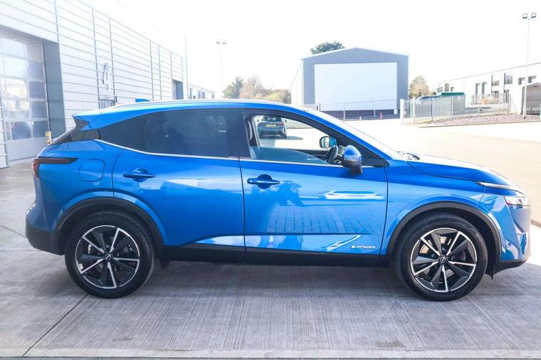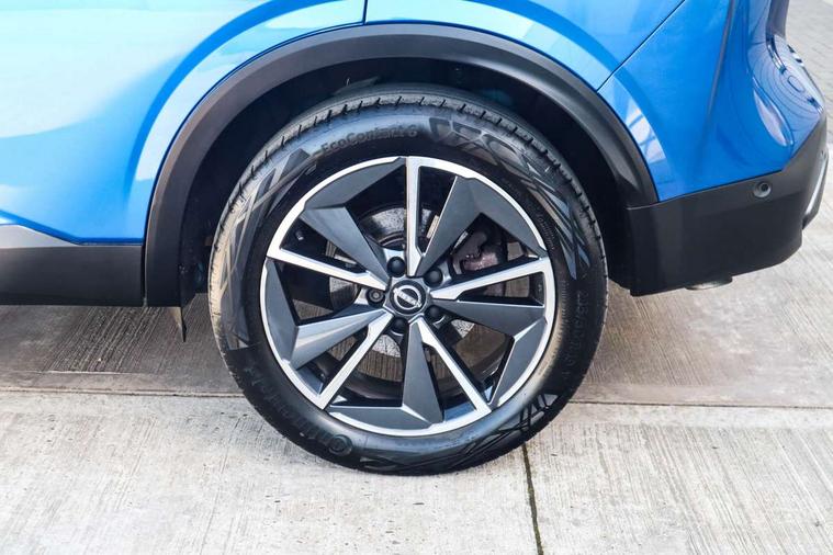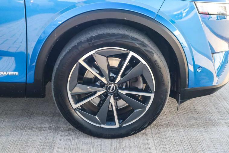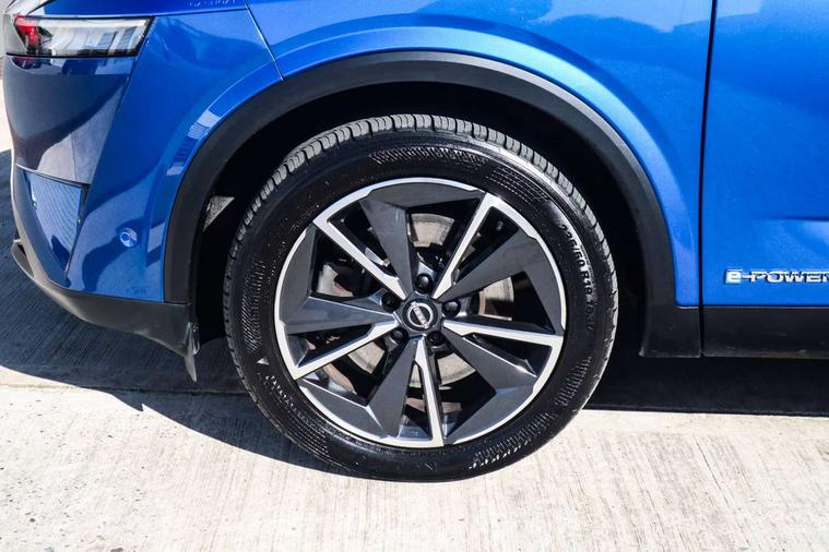 Advanced windscreen head up display, Blind spot warning, Drive modes (sport, normal, eco), e-Pedal step, Electric speed sensitive power steering, Emergency and breakdown call, Front and rear parking sensors, Full Digital 12.3" TFT Digital Combimeter, Google maps services - search, weather, 3D maps and Google street view, Hands free power tailgate, Idle stop/start system, Intelligent around view monitor, Intelligent Cruise control (ICC), Intelligent driver alert system, Intelligent forward collision warning, Intelligent lane intervention, Lane departure prevention, Lane departure warning system, Lane keep assist, Moving object detection, Nissan connect 12.3 inch touchscreen infotainment system, Nissan connect navigation, ProPILOT with Navi-Link, Push button starter, Rear cross traffic alert, Rear view camera, Remote control services - door locks, lights, horn and car locator, Telematics - notifications and connectivity services, TomTom live traffic services, Traffic sign recognition with legal speed adjustment, Trip computer, Virtual personal assistant and firmware over the air capability, Wireless Apple CarPlay and wired Android Auto, Wireless charging pad, 6 speakers, AM/FM audio system with DAB, Bluetooth audio streaming, Front USB connections (Type-A and Type-C), Rear USB charging only ports (Type-A and Type-C), Auto dimming rear view mirror, Auto rear wiper when reversing, Automatic hazard signal with emergency stop signal, Body colour mirror caps, Body coloured door handles, Bodyside mouldings, Chrome side window finisher, Door handle with button, e-POWER badging, Electric auto folding door mirrors, Electrically adjustable and heated door mirrors with LED turn indicator, Follow me home headlights, Front and rear LED turning signals, Headlights auto levelling system, Intelligent auto headlights, LED 3rd brake light, LED daytime running lights, LED headlights with adaptive driving beam, LED rear lights, One touch front and rear electric windows with remote opening and closing, Partially body coloured bumpers, Privacy glass, Rear bumper with graphite insert, Rear reversing light (bulb lighting), Rear roof spoiler, Rear side wing doors, Rear styling plate, Shark fin antenna, Splash free rain sensing wipers, Super UV and infrared cut glass, Thermaclear heated windscreen, Three blink turn signal, 12v power socket in dashboard and luggage, 2x Rear coat hooks, 3 bench rear seats in 2nd row, 3 rear headrests, 4 folding assist grip, 6 Luggage hooks - 4 on floor, 2 on side, 60/40 split folding rear seat bench, Ambient lighting around centre console, Ambient lighting in front doors, Centre console storage tray, Chrome interior door handles, Cloth/syntech leather monoform upholstery, Dark black/blueish PVC wrapping, Dark headlining, Driver and front passenger sunvisors with illuminated vanity mirrors, Driver seat back pocket, Dual zone automatic climate control with pollen filter, e-POWER shifter, Electrically adjustable driver seat, Electrically adjustable lumbar support for driver, Front and rear door storage, Front centre console and armrest, Front cupholders x 2, Front door with bottle holders, Glovebox with light, Hard trunk cover, Heated front seats, Heated steering wheel, Height adjustable driver's seat, Height adjustable front headrests, Height adjustable passenger seat, Leather steering wheel, Luggage board system, Luggage space lighting, Manual lumbar support on passenger seat, Manually adjustable passenger (slide recline + lifter), Multifunction steering wheel, Passenger seat back pocket, Rear armrest with 2 cupholders, Rear door bottle holders, Single front passenger seat, Soft PVC kneepad, Steering wheel switches, Tilt/telescopic adjustable steering wheel, Two rear isofix child seat anchorage points with top tether, Welcome light and doors with console tray ambient lighting, Glass roof pack with roof rails - Qashqai, 3x3 point rear seatbelt pretensioners + load limiters, ABS with EBD and brake assist, Active brake limited slip, Auto hold function, Child locks on rear doors, Curtain and front side, far side airbags, Driver and passenger airbags, Driver, passenger and 2nd row rear seat belt reminder, Electronic parking brake, Front seatbelt pretensioners + load limiters, Height adjustable front seatbelts, Hill start assist, Intelligent blind spot intervention, Intelligent front emergency braking with pedestrian, cyclist recognition and junction assist, Intelligent rear automatic braking, Tyre pressure monitoring system, Vehicle dynamic control, Capless fuel filler, Engine immobiliser, Intelligent Key, Remote central door locking with deadlocking, Thatcham Cat.1 alarm, Interior instrumental panel C finisher, 19" Diamond cut alloy wheels, Tyre puncture repair kit,