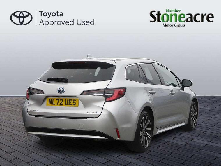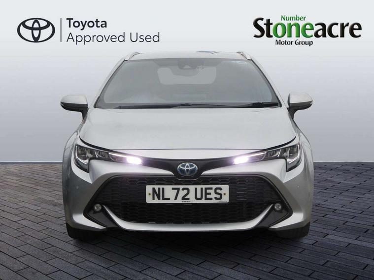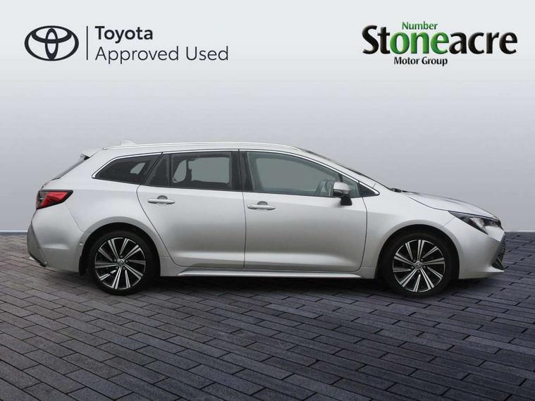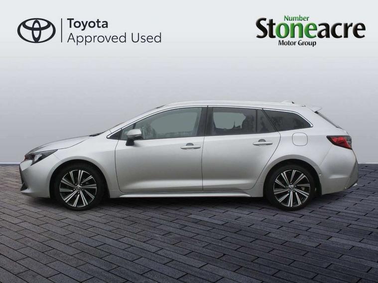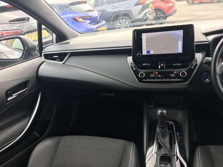 7" Multi information display screen, Bluetooth telephone connectivity, Connected car functionality upgrade, tracker, remote status and e-care, Door trim and centre console material, Dynamic radar cruise control (with RSA) including switch on steering wheel, E-call, Electrically assisted power steering, EV drive indicator, Intelligent park assist, Lane Departure Alert (LDA) switch on steering wheel, Memory on adjustable speed limiter, Push button start, Reversing camera, Smartphone integration with Apple CarPlay and Android auto, Gasoline particulate filter, Vehicle Stability Control (VSC), 6 speakers, 8" Touchscreen with MM19 Multimedia system and voice recognition, AM/FM radio, DAB Digital radio, Toyota touch 2 with go navigation system, USB and Aux in connectors + 12V front outlet, USB charging port in centre storage box, Aluminium roof rails, Anti-jam protection on power windows, Auto dimming inside rear view mirror, Auto up and down function on all power windows, Automatic folding mirrors, Automatic headlights with high beam assist, Black metallic surround on lower front grille, Black toyota logo in front, Body colour rear spoiler, Body coloured bumpers, Body coloured door mirrors, Body coloured outside door handles, Follow me home headlights, LED daytime running lights, LED front fog lights, LED Headlights, LED High mounted stop light, LED rear combi lights with LED lightguide, Noise reduction layer on front windows, Power adjustable heated door mirrors, Power front windows, Power rear windows, Privacy glass, Rain sensing wipers, Rear side wing doors, Rear window defogger, Rear window wiper, Reverse tilting door mirrors, Shark fin antenna, Time adjustment on intermittent wiper, Turning signal integrated indicators in door mirrors, Unique lower skirt, Unique side rocker with black insert, UV-filter on driver and passenger windows, 12v power outlet - luggage side, 3 rear headrests, 3 seat bench in 2nd row, 3 spoke leather steering wheel + gear knob, 60/40 split folding rear seat, Adjustable speed limiter switch on steering wheel, Audio, multimedia and telephone switches on steering wheel, Blue ambient interior illumination to centre tray, front cup holders and front door trim, Boot light, Boot underfloor storage, Clean air filter, Driver and front passenger personal light, Driver and passenger assist grip, Driver and passenger sun visor with mirror and light, Dual sided deck board in boot, Dual zone automatic air conditioning with ECO mode switch, Fabric/synthetic leather upholstery, Front and rear cup and bottle holders, Front and rear door pockets, Front head restraints, Front passenger seat, Heated driver and front passenger seats, Illuminated entry system in room lamp, ISOFIX seat fixing (2 fixings on rear outer seats), Leather gear shift with satin chrome on gear shift console, Leather style armrests, Manual height adjustable for driver and front passenger seat, Passenger seat back pocket, Pollen filter, Power adjustable lumbar support on driver seat, Power window switches with satin chrome inserts, Rear armrest with 2 cupholders, Rear passenger air vents, Rear passenger coat hooks (2), Rear passenger personal lights, Retractable tonneau cover with luggage partition net, Satin chrome inside door handles, Shopping bag hooks in luggage compartment, Side storage in boot, Sliding armrest on centre console box, Slow opening glovebox with lights, Tilt/telescopic steering column, Tonneau cover with under floor storage, Voice recognition switch on steering wheel, Whiplash Injury Lessening (WIL) feature (active headrest) for seats, Parking pack - Corolla, Toyota safety sense 2 pack - Corolla, 3x3 point rear seatbelts, Adjustable driver and front passenger seat belt extender to top anchor point, Anti lock braking system + Electronic brake force distribution, Brake assist function, Child locks on rear doors, Downhill Assist Control (DAC), Electronic parking brake, Emergency brake light signal (EBS), Front passenger airbag on/off switch, Front seatbelt reminder, HAC - Hill start assist control, Rear seat belt reminder, Seatbelt pretensioners and force limiters, Supplemental restraint system (SRS) 7 airbags - dual driver, dual side curtain, side impact and driver knee airbags, Traction control, Tyre pressure warning system, Acoustic vehicle alert system (AVAS), Alarm with motion sensor and immobilizer, Remote central locking + deadlocks, Smart entry, Satin chrome dash trim, Soft touch texture on upper dashboard, Stitching on lower dashboard, Tyre repair kit, Unique wheel finish with red wheel cap,