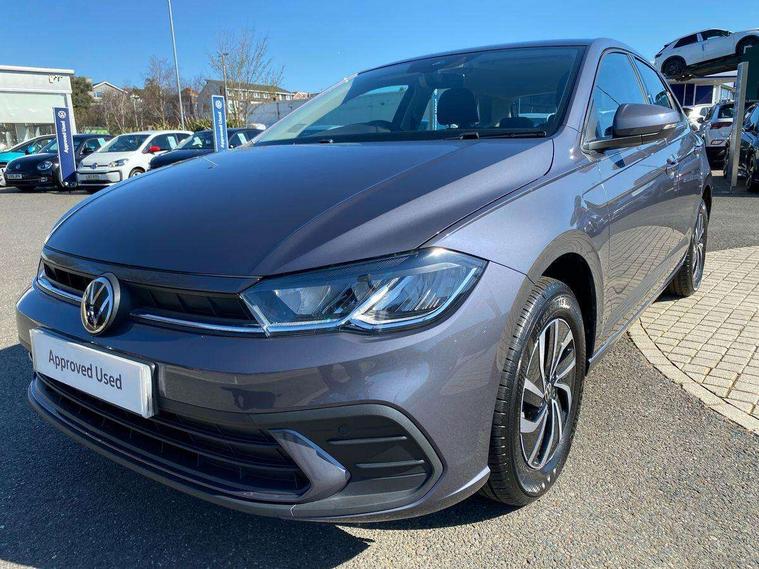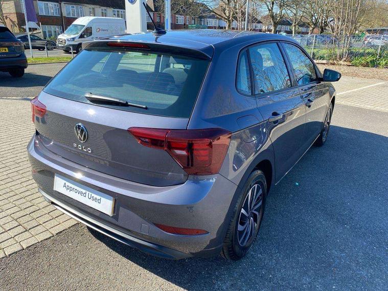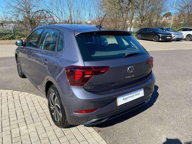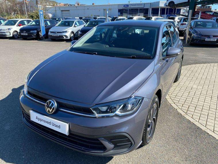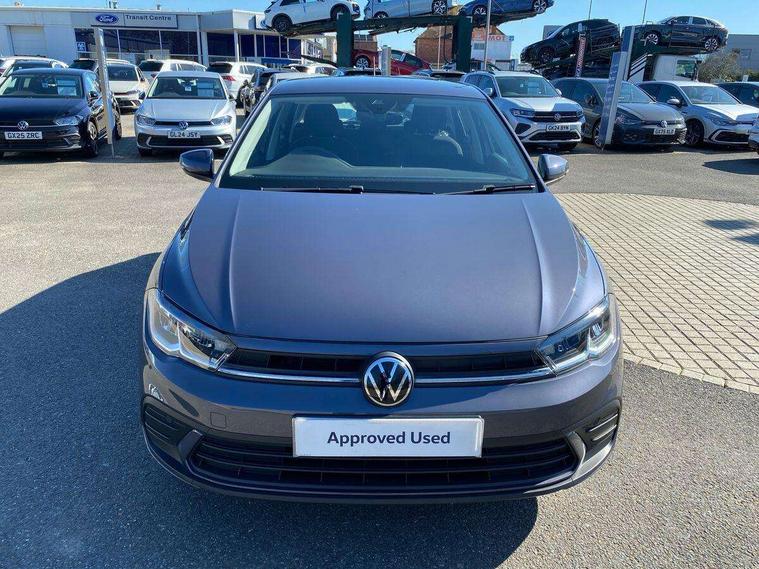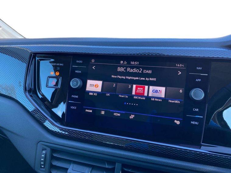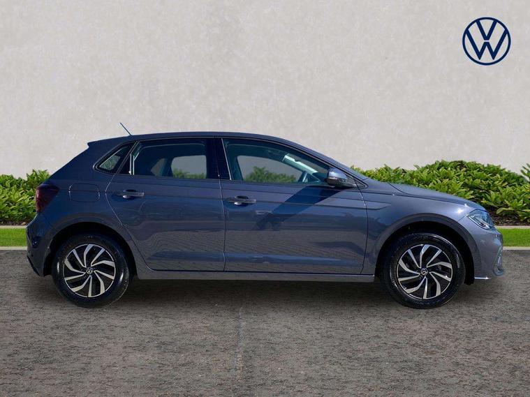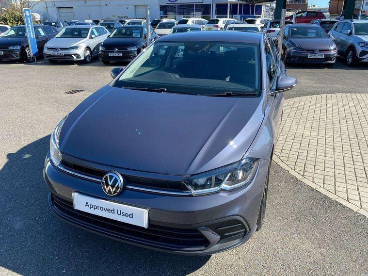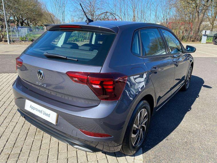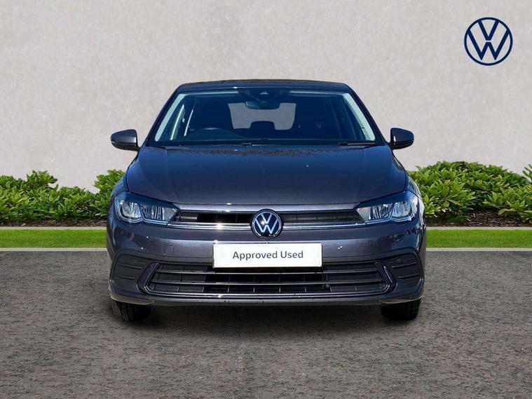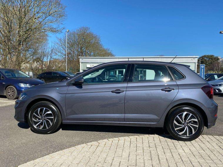 Advanced driver attention and drowsiness monitor, Bluetooth mobile phone interface, Cruise control + speed limiter, Dynamic road sign display, Emergency call service, Lane keeping system Lane Assist, Multifunction camera, Power assisted speed sensitive steering, Preparation for navigation system with media and internet package, Preparation for We connect and We connect plus, Speedo and rev counter, electronic odometer, trip, service interval display and exterior temperature gauge, Standard rear axle, Trip computer, Warning signal and warning light for front and rear seatbelts not fastened, Washer fluid level indicator, Wireless app connect, Front wheel drive, Rear shock absorpion, Start-stop system with battery regeneration (recuperation - energy recovery during braking), DAB Digital radio, Diversity antenna for FM reception, Front and rear 6 speakers, Automatic dimming interior rear view mirror, Automatic headlight control with LED separate daytime running lights with coming/leaving home function, Body colour bumpers with chrome inserts, Body colour door handles, Body colour door mirrors, Electric front windows, Engine badge deletion, Headlight range adjustment, Heat insulating and laminated safety glass windshield, Heat insulating darkened glass in side and rear windows, LED Headlights, LED rear combination lamps, Power folding adjustable/heated exterior mirrors and front passenger exterior mirror lowering function, Rain sensor, Rear electric windows, Rear fog light, Rear side wing doors, Rear windscreen washer and wiper with interval delay, Third brake light, 12V power socket in centre console, 2 front and 2 rear reading lights with switch off delay and dimmer, 2 USB-C ports in the front, 2 USB-C charging sockets on the center console in the rear, 3 rear head restraints, 60/40 split folding rear seat and rear seat bench not split, Ceramique roof lining, Chrome plated radiator grille inserts, air vent surrounds and light switch surrounds, Door and side trim panel, Driver and front passenger seat height adjustment, Driver/passenger sunvisors with illuminated vanity mirrors, Front centre armrest, Front seat backrest storage pockets, Front standard seats, Handbrake lever handle in leather, Hartley/Thomas cloth upholstery, Headliner in recycled material, Isofix child seat preparation easy-fit (for two outer rear seats, and front passenger seat) compatible with I-size, Leather trimmed gear knob, Luggage compartment cover, Luggage compartment lighting, Removable luggage compartment floor, Single front passenger seat, Standard climatic zones, Standard pedal cluster, Three spoke leather wrapped multifunction steering wheel, Light and vision pack - Polo, 3 point height adj front seatbelts + pretensioners, 3x3 point rear seatbelts, ABS, Driver and front passenger airbag with front passenger airbag deactivation, Drivers and front passengers safety optimised head restraints, ESC (Electronic stability control) + EDL (Electronic Differntial lock) and ASR (Traction control), Extended and predictive pedestrian/ cyclist protection, Front assist with autonomous emergency braking (for Adaptive Cruise Control ACC up to 130 mph), Front curtain and side airbags with center airbag, Front disc brakes, Hill hold control, Manual child lock in rear doors, Rear drum brakes, Single tone horn, Tyre pressure loss indicator, Alarm with interior protection, Anti-theft alarm system with interior monitoring, backup horn, and towing protection, Anti-theft wheel bolts, Electronic engine immobiliser, Lava stone black gloss/matt decorative inserts in dash and front door panels, Low rolling resistance tyres,