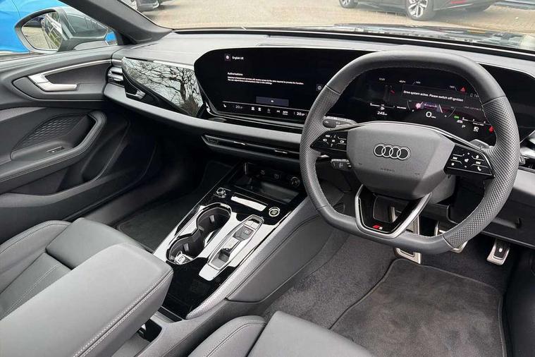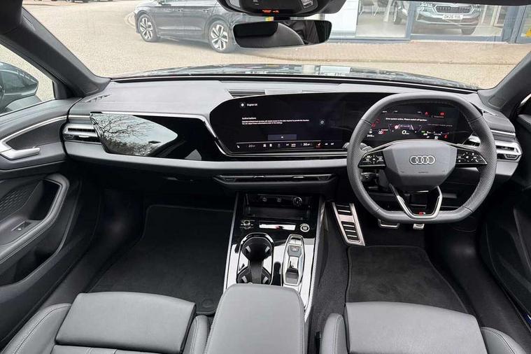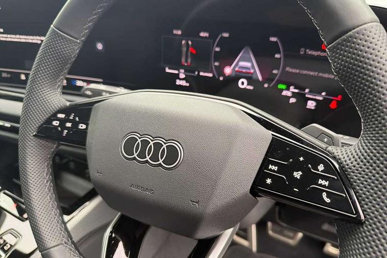 Adaptive cruise control, Advanced driver attention and fatigue montior, Audi application store, Audi assistant, Audi connect emergency call and service, Audi drive select, Audi virtual cockpit plus with 11.9" OLED colour display, Automatic start/stop system with coasting functionality, Camera based traffic sign recognition, Intersection assist, Lane departure warning, MMI navigation plus with high resolution 14.5" OLED touchscreen colour display, Park assist plus, Parking system plus with 360 display, Progressive steering with servotronic, Rear view camera, Smartphone interface, Swerve assist and turn assist, Traffic sign based speed limiter, Sports suspension lowered by 20mm, 2 USB-C ports in both the front and rear, Audi sound system impressive sound with 8 loudspeakers including centre speaker and subwoofer, 6-channel amplifier with a total output of 180 watts, DAB digital radio reception, Smartphone compartment with wireless charging, Aluminium roof rails, Aluminium window trims, Auto dimming rear view mirror, Body colour door mirrors, Door mirrors - electrically adjustable, heated, folding and auto dimming on both sides, Front and rear electric windows, Front door sill trims with aluminium inlays, illuminated with 'S' logo, High beam assist, LED headlights Plus incl. digital daytime running lights, turning light, all-weather light, motorway light, manouevring light and intersection light, LED rear lights pro incl. dynamic rear indicators and illuminated light strip with animated coming and leaving home function, LED third brake light, Privacy glass, Rear and side windows with heat insulating glass, Rear side wing doors, Rear wash/wipe, S Line badges on the front wings, S line bumpers, radiator grille and diffuser in phantom black and diffuser insert in matt anthracite, White rhombus logo projection light in exterior mirrors, Windscreen with acoustic glazing, 3 rear headrests, 3 seat rear bench, 3 spoke leather steering wheel with multi-function buttons with touch control, flattened on top and bottom, with S badging and contrast stitching, 3-zone automatic climate control, 40:20:40 split folding rear seat bench with centre armrest and cup holders, Comfort front centre armrest, Front and rear floor mats, Front seats with manual adjustment for position and 4-way electric lumbar support, Front sport seats with integrated headrest and S embossed logo, Headlining in black cloth, Heated front seats, i-Size child seat mounting on the front passenger side and outer rear seats, i-Size and top tether on the outer rear seats, Luggage compartment lid, electrically opening and closing, Manual steering column height and depth adjustment, Single front passenger seat, Stainless steel pedals and footrest, Steering wheel grips in perforated leather and shift paddles, Ambient lighting package plus - A5, 3x3 point rear seat belts, Driver airbag, Electric child safety locks, First aid kit with warning triangle and vests, Front emergency brake assist, Front passenger airbag, Front passenger airbag deactivation, Front side airbags with head airbag system and front interaction airbag, Hill hold assist, Seat belt monitoring with rear seat occupant reminder, Tyre pressure loss indicator, Anti theft alarm, Anti-theft wheel bolts, Keyless Go, Accent surfaces and control buttons in gloss black, Black dashboard with contrast stitching, Inlays in matt brushed aluminium with linear embossing, anthracite, Softwrap in leatherette with contrast stitching, Upper and lower interior elements in leatherette, Tyre repair kit,