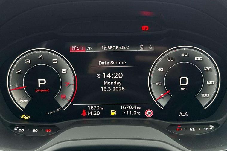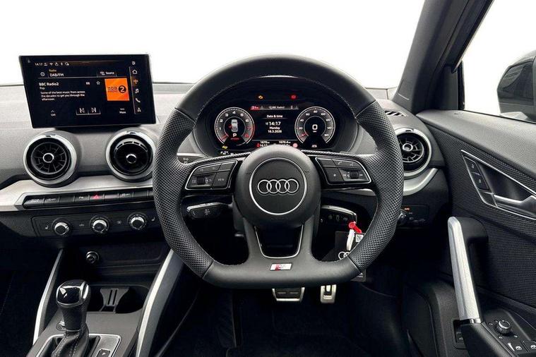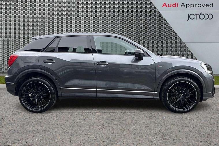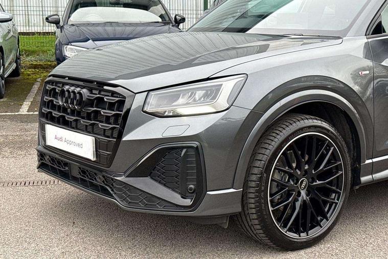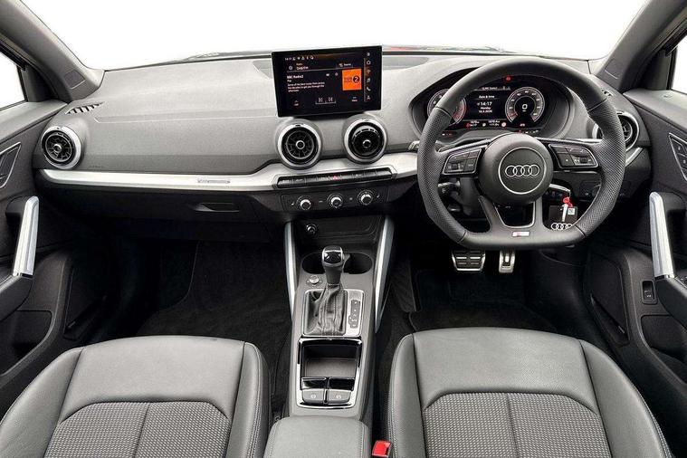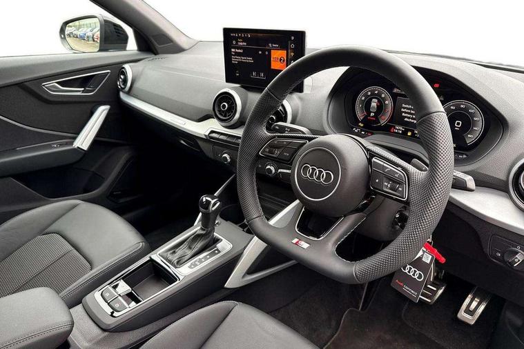 3D map display, Audi connect navigation and infotainment includes innovative services, Audi connect remote and control connects your vehicle to your smartphone, Audi drive select: S tronic - power steering assistance + engine + gearshift (modes: comfort, auto, dynamic, efficiency, individual), Audi smartphone interface - Apple carplay/Android Auto, USB connect, 2xSDXC card readers, voice control for navi, telephone, music and 3rd party apps, Audi virtual cockpit, Automatic start/stop system with recuperation, Bluetooth interface includes bluetooth audio streaming, Camera based traffic sign recognition, Cruise control, Distraction and Fatigue warning, E-call, Jukebox hard drive memory for music (10GB), Lane departure warning, MMI navigation plus with 8.8" touchscreen, Natural voice recognition, Power operated tailgate, Progressive steering, Rear parking sensors, Sport suspension, 6 passive loudspeakers, DAB Digital radio, USB type C port, Audi beam, Auto dimming rear view mirror, Black window trims, Bumper in full body colour paint finish, Electrically adjustable, folding, auto dimming and heated door mirrors with integrated LED side indicators, Front windscreen with grey tinted sunband, LED daytime running lights, LED headlights with dipped beam, high beam, position lights, indicators, LED rear lights, LED third brake light, Privacy glass - dark tinted rear and rear side windows from B-pillar backwards, Rear side wing doors, Rear wiper, Variable front intermittent wipers, Wheel arch trims in manhattan grey, 12V socket in front, 3 seat bench in 2nd row, 3 spoke flat bottomed multi-function leather sport steering wheel with gear shift paddles, 4-way electric lumbar support for front seats including manual seat height adjustment for both front seats, 60/40 split folding rear seat bench, Black carpets, Black cloth headlining, Front and rear head restraints, Front centre armrest, Front sport seats, Front/rear floor mats, Height/reach adjust steering wheel, Illuminated door sill trims with S logo, ISOFIX child seat mounting in front passenger and rear outer seats, Manual air conditioning, Single front passenger seat, Stainless steel pedals, Black styling pack - Q2, 3x3 point rear seatbelts, 6 airbags - Front, curtain and front side airbags, Electromechanical parking brake, Electronic stabilisation control including ABS, ASR and EDL, Front passenger airbag deactivation, Hill hold assist, Pre-sense front with pedestrian recognition, Seatbelt monitoring, Tyre pressure warning light with visual and acoustic warning, Warning triangle and first aid kit, Anti theft wheel bolts, Electronically operated child locks, Remote central door locking, Thatcham category 1 alarm, Aluminium interior element, Black dashboard, Gloss black centre console, Matt brushed aluminium trim inlays, Tool kit,