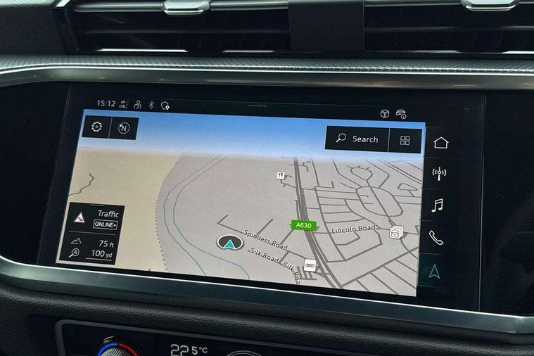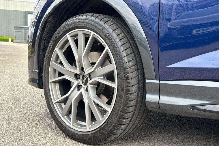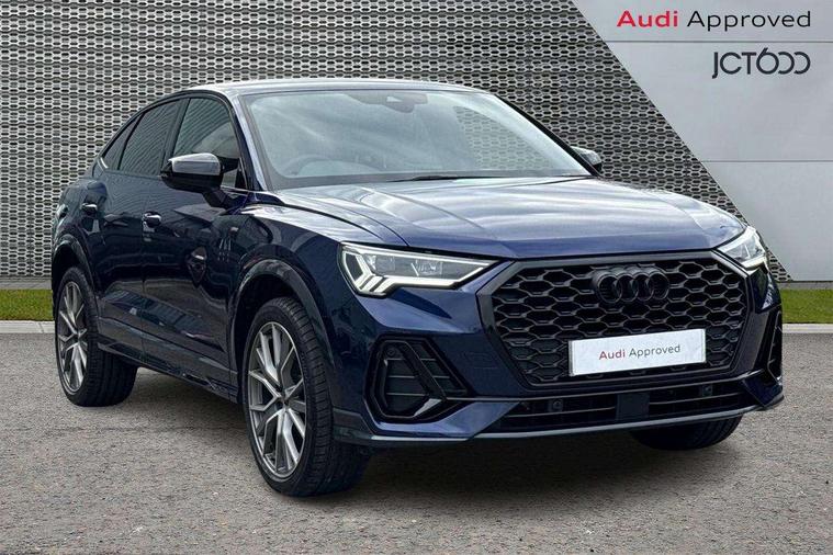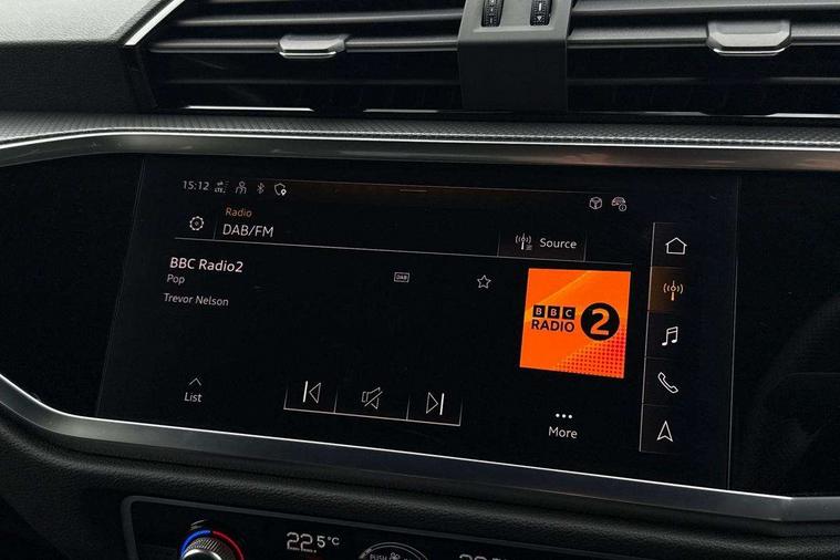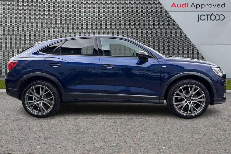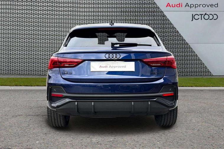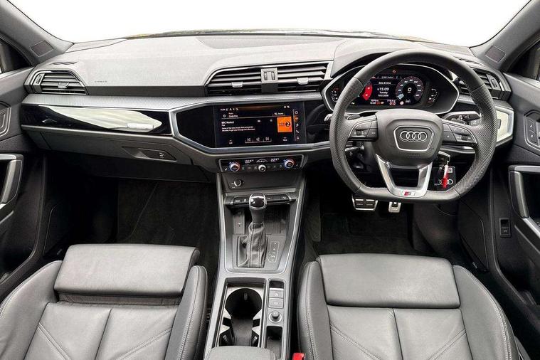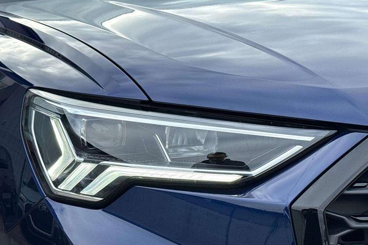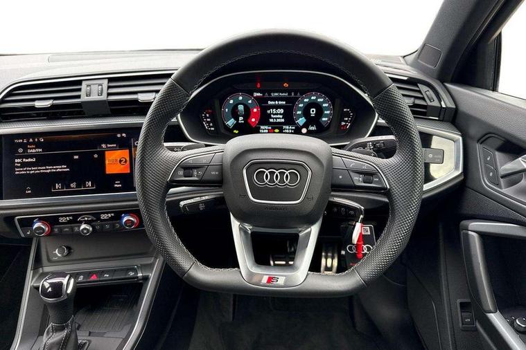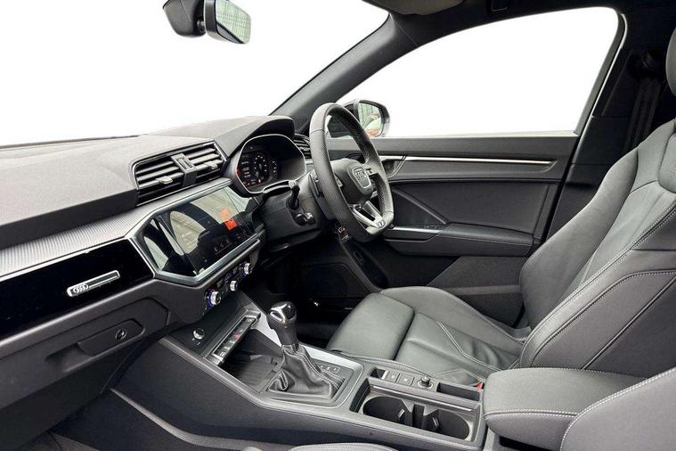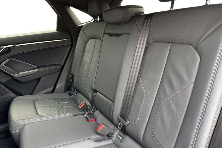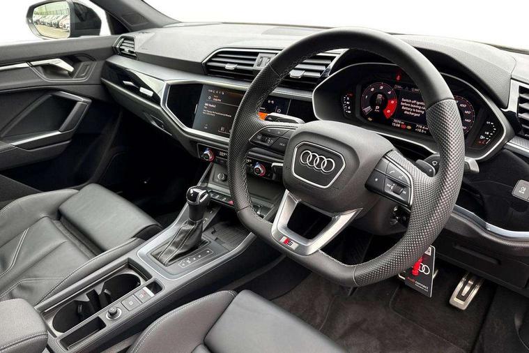 Audi connect safety and service, Audi drive select, Audi lane departure warning, Audi Virtual Cockpit - 10.25" display, Bluetooth interface, Camera based traffic sign recognition, Distraction and Fatigue warning, Legal emergency call, MMI Navigation Plus with high resolution 10.1 inch touchscreen colour display, Power operated tailgate, Progressive steering, Service interval indicator, Smartphone interface includes wireless Apple carplay/Android Auto, Start stop system with recuperation, Voice control system with natural language interaction, Diesel particulate filter, Sports suspension, 2 USB-C ports with charge and data functions, 6 passive loudspeakers, DAB digital radio module, Acoustic windscreen, Audi Beam uses LEDs to project the Audi logo onto the ground as you exit your Q3, Auto dimming door mirrors, Auto dimming frameless rear view mirror, Electrically folding, adjustable and heated door mirrors with integrated LED side indicators and kerb view function for passenger side, Front and rear electric windows, Front fog lights, Front underbody protection in manhattan grey paint finish, High gloss black finish B and C pillars, Honeycomb design radiator grille in matt anthracite black, LED Dynamic rear indicators, LED headlights with LED daytime running lights, LED rear lights, LED third brake light, Privacy glass dark tinted rear and rear-side windows (from B-pillar backwards), Rain and light sensors, Rear diffuser grille in grained matt black, Rear diffuser strip in matt anthracite black, Rear side wing doors, Rear underbody protection in matt black, Rear wiper, S line front and rear bumpers and side skirts in contrasting Manhattan grey paint finish, Variable front intermittent wipers, 12V socket in rear centre console, 3 seat bench in 2nd row, 40:20:40 folding with manual adjustment for 60:40 forwards/backwards position and backrest angle, Adjustable rear seat bench/backrest with centre armrest and cupholder, Black carpet mats, Black cloth headlining, Dual zone electronic climate control, Electric lumbar support, Front and rear black floor mats with contrast stitching in rock grey, Front and rear headrests, Front centre armrest, Height and reach adjustable steering wheel, Illuminated door sill trims with S logo, ISOFIX child seat mounting for front passenger with airbag deactivation and outer rear seat including top tether attachment point for outer rear seats, Luggage compartment sill protection in stainless steel, Manual front seats with height adjustment, Perforated leather gearknob, Single front passenger seat, Stainless steel pedals, Twin leather upholstery with front sport seats + S embossing, Black styling pack - Q3, Non smoking pack - Q3, 3x3 point rear seatbelts, 6 airbags - Driver, front passenger, curtain and side windows, Audi pre-sense front with pedestrain and cyclist recognition, Electrically operated child locks on rear doors, Electromechanical parking brake, Electronic stabilisation control including ABS, ASR and EDL, Front seatbelt reminder, Hill descent control, Hill hold assist, Pre sense basic, Seatbelt monitoring, Tyre pressure warning, Warning triangle and first aid kit, Anti theft wheel bolts, Immobiliser, Remote central locking, Thatcham approved category 1 anti theft alarm, Aluminium look interior elements, Detail dashboard around MMI touch colour display in glass look, black with surround in aluminium look, Leatherette door armrest, Piano black inlay,