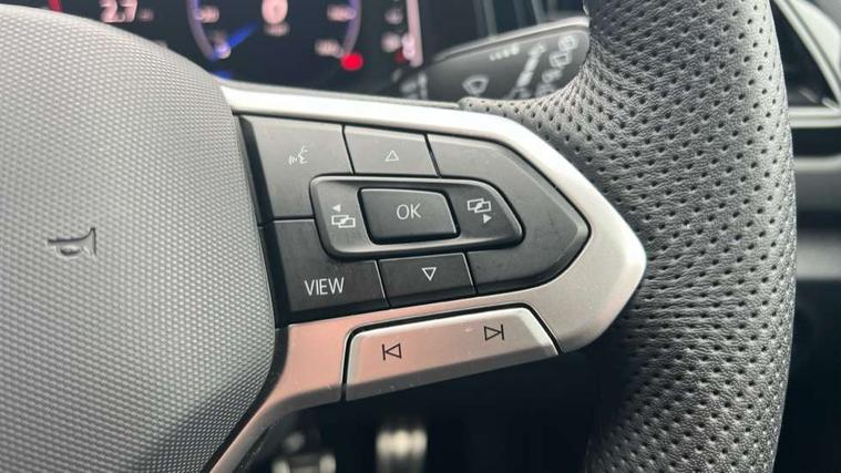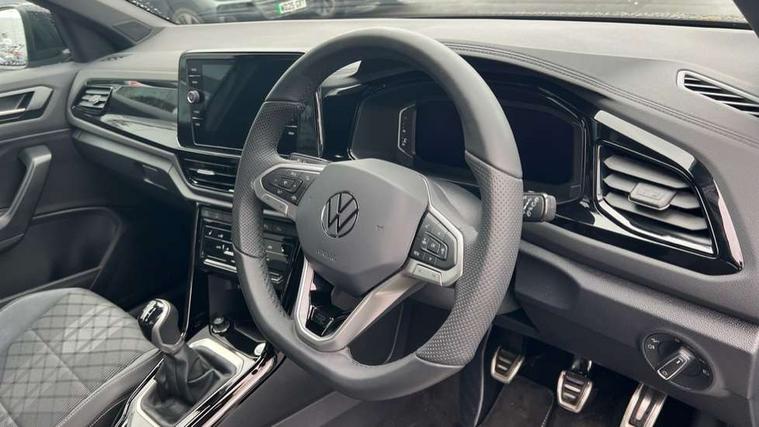10.25" Digital cockpit pro, Advanced driver attention and drowsiness monitor, Emergency call service, Lane keeping system Lane Assist, Mobile phone interface, Modified key software - reduce switch off time for key status change to Long no motion, Online services, Park assist including front and rear parking sensors, Power assisted speed sensitive steering, Rear view camera, Service interval indicator, Tailgate/trunk lid release from outside, Think blue trainer driver tips and journey analysis, Warning sound and light for front seatbelts unfastened, Wireless app connect, Battery regeneration during braking, Start/stop function with battery regeneration, DAB Digital radio, Diversity antenna for FM reception, Music playback - MP3, WMA and AAC files, Premium USB cable in choice of either Apple or Android smartphone compatibility, SD card slot, Simultaneous pairing of 2 compatible mobile devices, Title and cover art display, We Connect and We Connect Plus functionality, Advanced dynamic light assist for LED matrix headlights, Auto dimming interior rear view mirror, Automatic hazard lights activation under emergency braking, Black roof rails, Dynamic cornering light, Dynamic headlight range control with self adjusting whilst driving, Electrically adjustable and heated door mirrors, Extended roof spoiler, Exterior ambient lighting, Exterior mirrors aspherical on driver side, convex on front passenger side, External USB type C socket and charging sockets, Front windscreen wiper with intermittent wipe and 4 position delay, Heated rear window, Illuminated front grille, IQ LED matrix headlights, LED 3rd brake light, LED rear number plate lights, LED rear tail lights with dynamic turn signal, LED separate daytime running light, Light mode for poor weather, rain, fog or snow, Power windows with comfort operation and circuit breaker, Privacy glass for rear side windows and rear window, R-Line design body coloured bumpers, Rain sensor, Rear exhaust tailpipe, Rear fog light on one side and reversing lights on both sides, Rear side wing doors, Rear wash/wipe with intermittent wipe setting, Remote electrically foldable door mirrors, puddle lights and reverse activated passenger's door mirror, Tilting and sliding panoramic sunroof with rear panoramic sunroof, 12V power socket in centre console, 3 rear head restraints, 3 seat bench in 2nd row, 4 load lashing points in luggage compartment, Air care climatronic air conditoning system with active combination filter and 2-zone temperature control, Chrome plated radiator grille inserts, air vent surrounds and light switch surrounds, Door and side trim panel with leatherette insert, Front + rear carpet mats, Front centre armrest, Front cupholders x 2, Front footwell illumination, Front reading light, Front scuff plates with R Line logo, Front seat back storage pockets, Glove compartment door with light, Instrument lighting, white adjustable panel illumination, Interior ambient lighting and surround lighting, Interior light delay, Isofix child seat preparation, Leather gearshift handle, Load-through provision with cup holder when folded down ('Unsplit rear seat bench, split folding backrest, with centre armrest), Luggage compartment lighting, Single front passenger seat, Stainless steel pedals, Storage compartment in left and right luggage area, Storage compartment in rear doors, Storage compartments in driver and front passenger doors, Sunvisors with illuminated vanity mirrors, Variable boot floor, height adjustable and removable, Black design pack - T-Roc black edition plus, Easy open package with safelock - T-Roc, 3 point height adj front seatbelts + pretensioners, 3 point seatbelts in outer rear with ECE label, ABS, Child locks on rear doors, City emergency braking and pedestrian monitoring, Driver and front passenger airbag with front passenger airbag deactivation, Driver and front passenger safety-optimised head restraints, Drivers seatbelt reminder, Electronic parking brake, Electronic Stability Control (ESC) inc EDL (Electronic Differential Lock) and ASR (Traction Control), Front and rear passengers curtain airbag system including front side airbags, Hill start assist, Predictive pedestrian protection, Rear disc brakes, Two tone horn, Tyre pressure loss indicator, Volkswagen roadside assistance, Keyless locking and starting system keyless access with safelock, Gloss deep iron dash trim, 19" Misano alloy wheels with low rolling resistance and anti theft wheel bolts, Tool kit, Trims for alloy wheels, Tyre mobility kit including compressor and sealing foam,