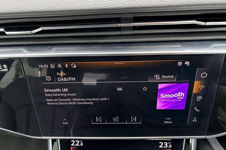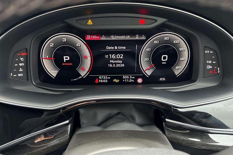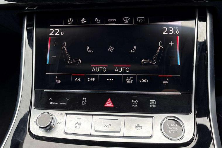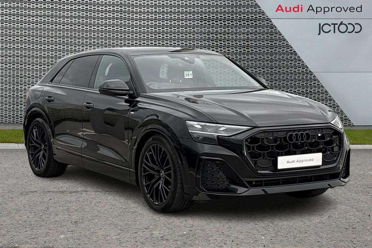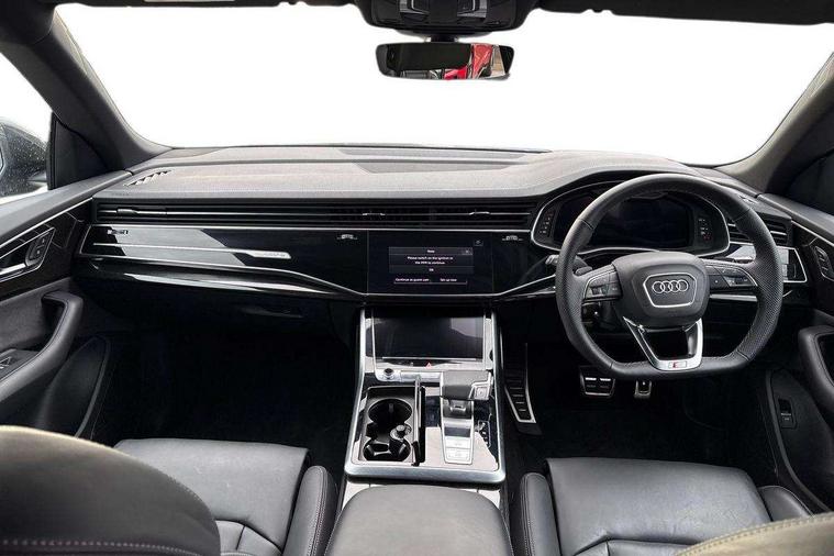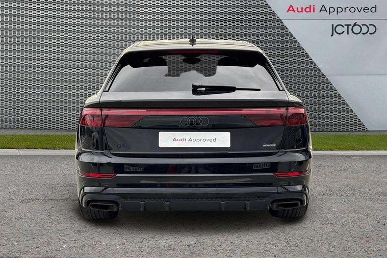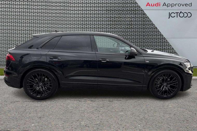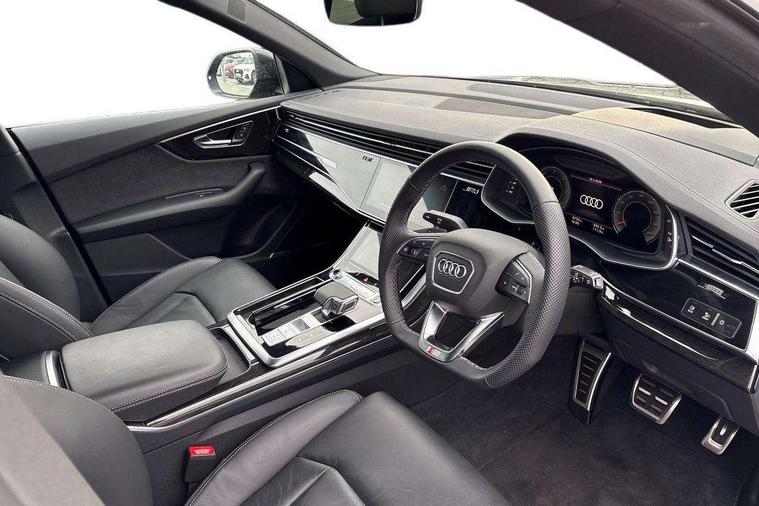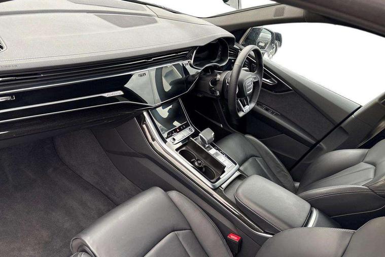 10.1" and 8.6" Dual colour touchscreens, Audi application store, Audi connect safety and service (e-call), Audi connect with Amazon Alexa Integration, Audi drive select, Audi parking system plus includes 360 degree display with front and rear sensors, Audi phone box light with wireless charging, Audi virtual cockpit - 12.3" high resolution LCD display with fully customisable instrument cluster, Automatic start/stop system, Bluetooth, Electro-mechanical PAS, Low washer fluid indicator, MMI navigation plus with MMI touch, Natural voice recognition, On board computer, Operating buttons in black, glass look with haptic feedback, Power operated tailgate, Rear view camera, Service interval indicator, Smartphone interface includes wireless Apple carplay/Android Auto, 48V Mild hybrid technology, Adaptive sport air suspension, Diesel particulate filter, Quattro all wheel drive with self locking centre differential, Audi music interface with 2 USB ports with charge and data functions, Audi sound system with 6 channel amplifier, 180 watt amplifying capacity and 10 loudspeakers including subwoofer, Aux-in socket, DAB Digital radio, 3rd brake light, Audi beam, Auto dimming frameless rear view mirror, Black exhaust tailpipes, Black single frame mask, Coming/leaving home lighting function, Electric front+rear windows, Electrically folding auto dimming/adjustable/heated door mirrors with memory function, LED side indicators and kerb view function for passenger side, Headlight washers, Heat insulating glass in windshield, LED rear light plus, LED signature daytime running lights, Loading edge protection in stainless steel, Matrix LED headlights with dynamic front and rear indicators, Platinum grey front spoiler lip and diffuser insert with honeycomb grille in black, Privacy glass - dark tinted rear and rear side windows from B-pillar backwards, Rain and light sensors, Rear side wing doors, Rear wiper, Singleframe grille surround in matte platinum grey, 2 zone automatic climate control, 3 bench rear seats in 2nd row, 4-way lumbar support for front seats, 40:20:40 split folding rear bench seat, Black cloth headlining, Comfort front centre armrest, Driver seat memory function, Electrically adjustable front seats, Front head restraints, Front/rear floor mats, Heated front seats, ISOFIX child seat mounting for front passenger seat and 2 outer rear seats with top tether child seat mounting for all 3 rear seats, LED interior ambient lighting, Luggage compartment sill protection in stainless steel, Rear centre armrest with 2 cupholders, Rear headrests, Seat cushion displaceable by 100mm in the ratio 60:40, Single front passenger seat, Stainless steel pedals, Sunvisors with illuminated vanity mirrors, Black styling pack plus - Q8, 3 point seatbelts on all seats, Audi pre sense front, Convenience key with safelock, Driver and front passenger, front side and curtain airbags, Electromechanical parking brake, Electronic Stability Control (ESC) including ABS, ASR and EDL, Front passenger airbag deactivation, Hill descent control, Hill hold assist, Predictive pedestrian protection, Seatbelt monitoring, Traction control, Tyre pressure loss indicator, Warning triangle and first aid kit, Anti theft alarm with tow away protection, Anti-theft wheel bolts and wheel loosening detection, Electronically operated child lock, Immobiliser, Keyless go with remote central locking, Polished oak trim with grey finish inlay, Tool kit, Tyre repair kit,