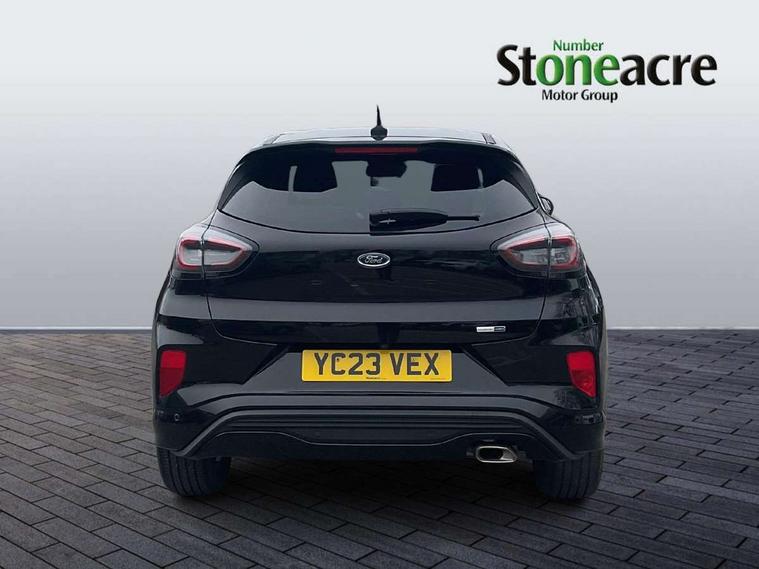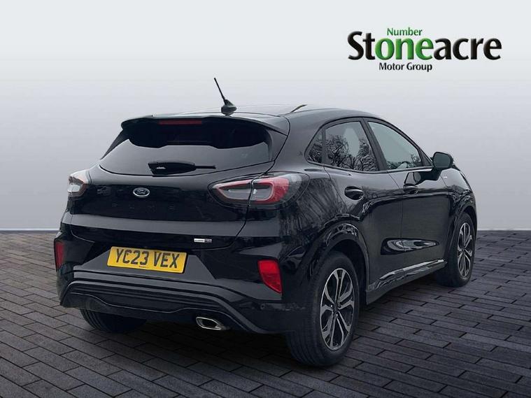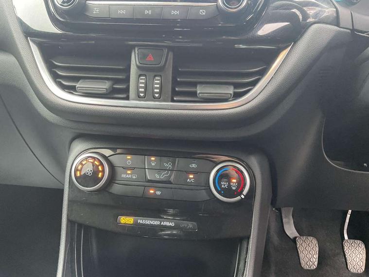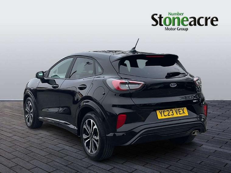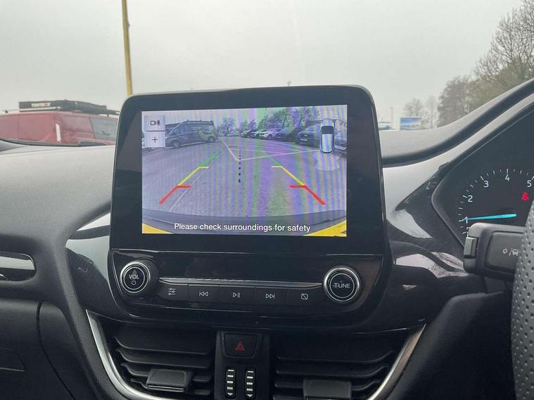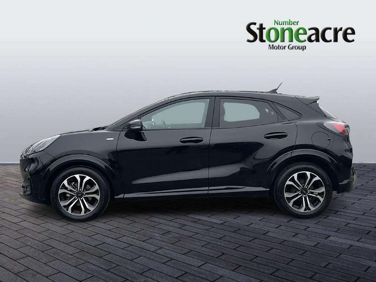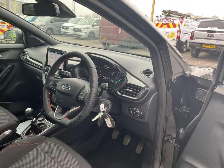 Driver impairment monitor, Emergency call service, Ford easy fuel, Full digital 12.3" instrument cluster, Lane keeping aid with lane departure warning, Power assist steering, Power start button, Rear parking sensor, Selectable drive modes(Normal, Eco, Sport, Slippery and Trail), Speed sign recognition, Sport suspension, Automatic headlights with auto high beam, Automatic rain sensing wipers, LED rear lamps, Power foldable heated door mirrors with puddle lamps, Projector headlamps with LED day time running lights and front fog lamps, Quickclear heated windscreen, Rear side wing doors, Rear wiper, ST-Line body styling kit with unique grille and large body colour rear spoiler, Third brake light, 3 seat bench in 2nd row, Centre console with armrest and stowage, Ford megabox extended bootspace, Front and rear head restraints, Front floor mats, Manual 2 way passenger seat adjustment, Manual 4 way driver seat adjust with lumbar adjustment, Single front passenger seat, ST- Line cloth trim with red stitching, ST-Line flat bottomed sensico leather steering wheel with leather handbrake and aluminium gear knob, Ford SYNC 3 navigation pack - Puma, 3 rear seatbelts, Child safety lock, Electronic stability control (ESC) and hill start assist, Pedestrian/cyclist detection & post-collision braking, Pre collision assist system, Tyre pressure monitoring system (TPMS), Thatcham alarm,
