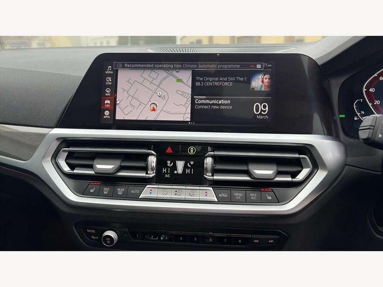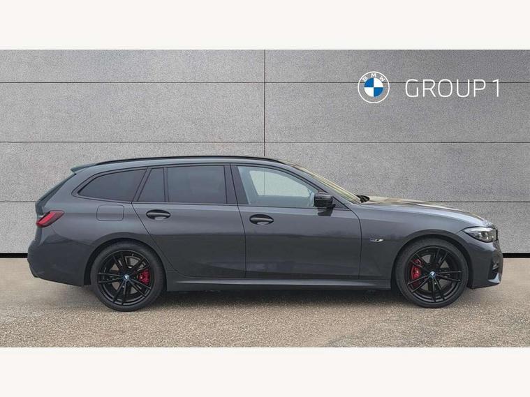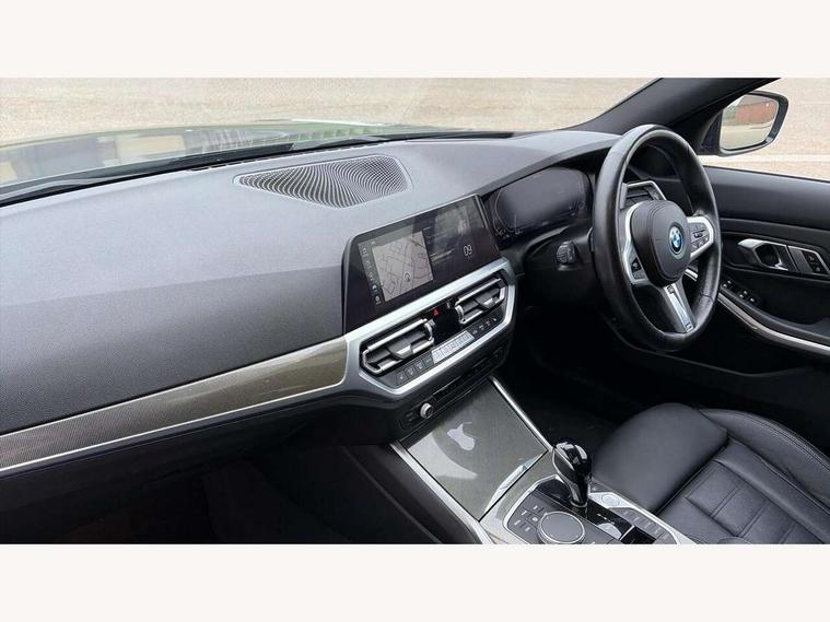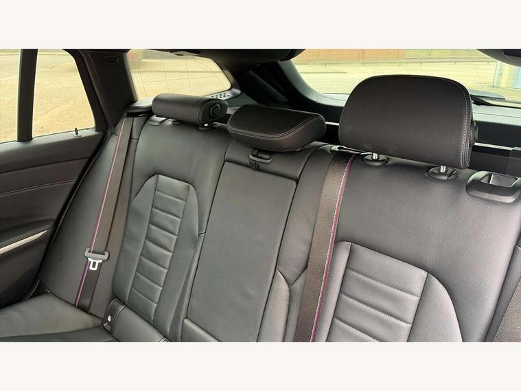 Active guard plus, Attentiveness assist, Auto start-stop, BMW ConnectedDrive oline services with BMW apps, BMW iDrive controller on centre console, BMW Live Cockpit Professional Nav with 12.3" instrument display + 10.25" display, Intelligent Voice Assist, BMW OS 7, HDD, 2USB, 4G LTE connect, BMW service history, BMW Teleservices, Brake pad wear indicator in front and rear, Check Control warning system for monitoring of lights and door/luggage compartment open warning, Condition based service, Cruise control with brake function + speed limiter, Electric power steering with Servotronic steering optimised at all speed ranges, Gearshift time display in manual mode, Instrument cluster with speedometer with mph readout, tachometer, fuel gauge and oil temperature gauge, Integrated owners handbook, Oil sensor for level and grade, warning by check control system, On board computer - average speed+fuel consumption, service interval, clock/date, odometer/trip meter, outside temperature display and ice warning, Optimum shift indicator, Personal Profile - automatic lock when driving away selectable, Variable sport steering, Adaptive M suspension, Balanced 50/50 weight distribution, Battery cut-out switch, Charging cable - Mode 2, Drive performance control - ECO PRO, comfort and sport modes, Electronic differential lock control (EDLC), EU6 emissions management, Stroke dependent dampers, DAB tuner, Electronic service booklet, Acoustic glazing, Active airstream chrome frame kidney grille with 8 high gloss black vertical slats, Automatic headlight activation/adjustment, Automatic headlight beam throw control with load dependent regulating reaction, dynamic compensation of braking dive and acceleration squat, Black mirror caps, Black roof mouldings, BMW Individual high gloss shadow line with extended contents, BMW individual lights shadow line, BMW Unique paint, Body colour door handles, Body colour fuel filler flap, Dynamic brake lights, Electric windows - front and rear, with open/close fingertip control, anti-trap facility and comfort closing, Exhaust tailpipe - split left and right, Exterior mirrors - electrically folding with anti-dazzle, Fading support, Front and rear bumper system with replaceable deformation elements, Front black door sill finishers with BMW designation, Green tinted heat protection glazing, High gloss black exterior B pillar, High gloss shadow line exterior trim, High gloss shadow line roof rails, Interior rear view electrochromatic mirror with automatic anti dazzle function, LED daytime running lights, LED front fog lights, LED third brake light, Lightweight engineering, M designation on front side panels, left and right, Model designation on right side of tailgate, Rain sensor, Rear side wing doors, Rear wiper, Shark fin antenna, Sun protection glass, Two part LED tailights in L-shape with components in smoked glass, brake light, LED turn indicator and rear fog light, Visible VIN plate, Welcome lights in interior and door handle area, Windscreen wipers with integrated washing jets, 12V power socket in front storage compartment, 2 front cupholder in centre console with clamping elements and matt black inlay, 3 seat bench in 2nd row, 3 zone automatic air conditioning, 4 pieces lashing eyelets in luggage compartment, 40:20:40 split folding rear seat with loading system, Ambient lighting with welcome carpet light, Anthracite headlining, Armrest integrated in front and rear door trim + front centre console armrest, Backrest width adjustment, Centred top Luggage compartment lights, Four grab handles integrated in roof lining, Front and rear door exit lighting (left / right), Front and rear door pockets, Front and rear reading lights, Front and rear velour floor mats, Front head restraints, Front sport seats, Heated front seats, Height adjustable mechanically and infinitely variable steering column, Illuminated armrest storage compartment, Illuminated glove compartment with separate small compartment, Interior lighting - front centre over interior mirror with soft light, rear centre and front and rear footwell lighting, Make-up mirror lights, Rear centre armrest with 2 cupholders, Rear centre console with storage compartment and ventilation grille, Single front passenger seat, Sunvisors with vanity mirrors and ticket pocket, Three spoke multifunction M sport leather steering wheel, Toolkit located in luggage compartment, Connected pack professional - 3 Series Saloon/Touring, M sport exterior styling pack - 3 Series Saloon/Touring, 2 tone horn, 3 rear seats with non folding headrests, Airbags activation controlled with intensity and scope, BMW emergency call, Brake energy regeneration, Braking pre-tensioning, Child proof locking system in rear door, Child seat ISOFIX attachment rear outer seats, Coasting in idle in ECO PRO mode, Crash sensor activating of airbags, Unlocking doors, hazard warning lights, interior light, safety battery terminal, Deactivation of fuel pump in the event of a crash, Driver and front passenger side airbags, integrated in the door side seat backrest bolsters for all seat variants, Driver/Front Passenger airbags, Dry braking, Dynamic brake control, Dynamic stability control + (DSC+) - Anti-lock Braking System (ABS) with brake assist and cornering brake control + Automatic Stability Control (ASC), Dynamic Traction Control - DTC, Electric parking brake including automatic hold function and automatic release of the parking brake when driving off, Front passenger manual airbag deactivation, Head airbags for all 4 outer seats, Hill start assist, M sport seatbelt, Seat belt security check for driver and front passenger, Side impact protection, Three 3 point seat belts on all seats including front belt stopper, pyrotechnic belt tensioners and belt force limiters, Tyre pressure monitoring with three level warning strategy, Ventilated front and rear disc brakes, Warning triangle and first aid kit, Alarm system (Thatcham 1) with remote control and electronic engine immob